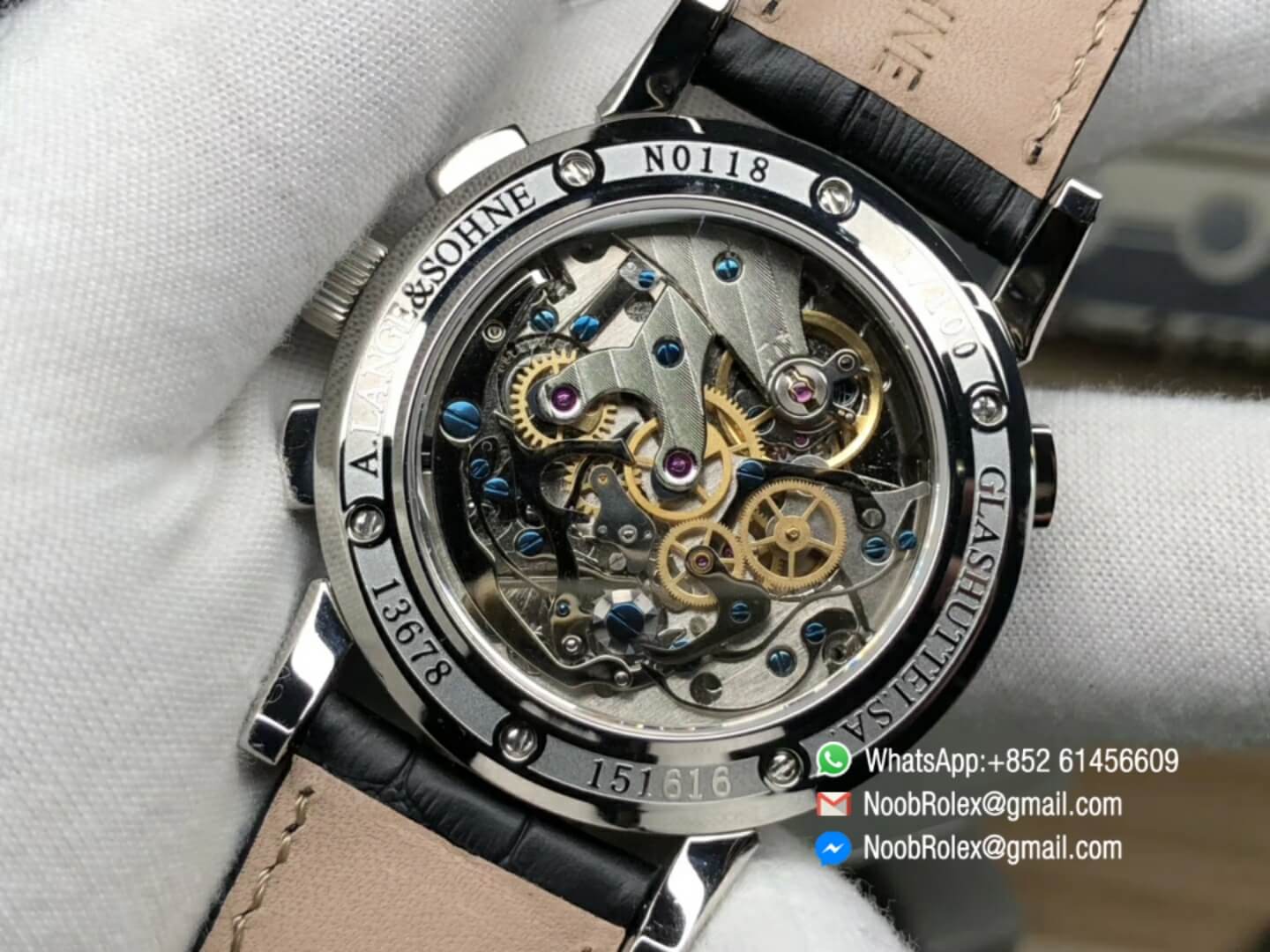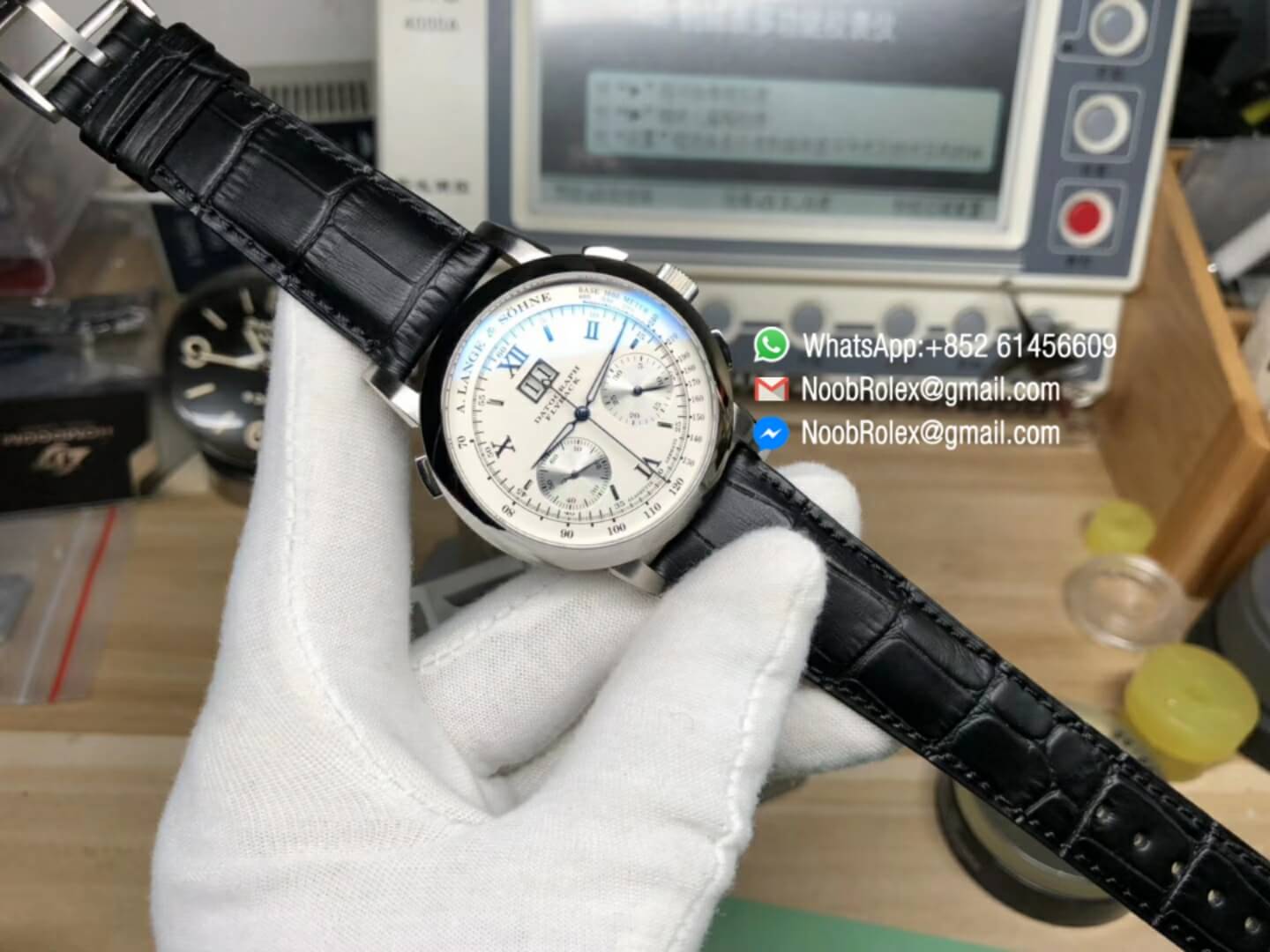 Order Now A. Lange & Söhne Datograph 403.032 Flyback Chronograph Watch Steel Case White Dial On Black Leather Strap with Hand Wind Movement MKS Top Quality