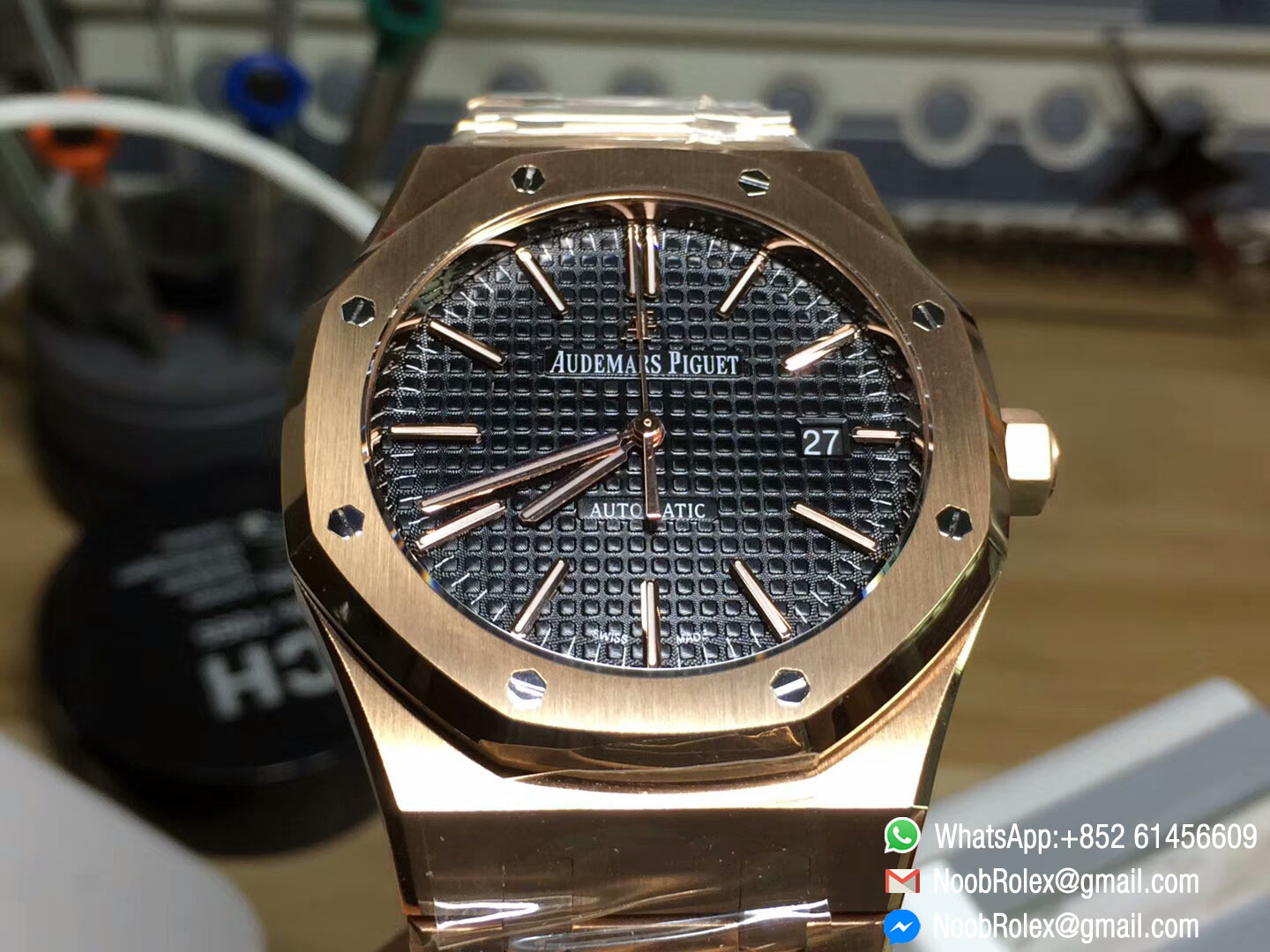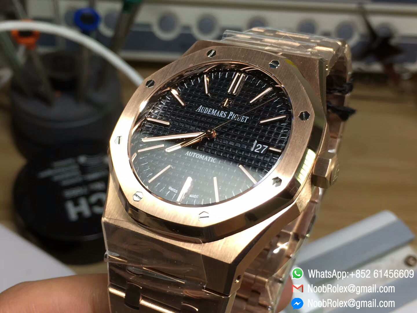 Order Now AP Royal Oak 41mm 15400 Rose Gold Black Textured Dial on Rose Gold Bracelet A3120 V2J JF 1:1 Best Edition.