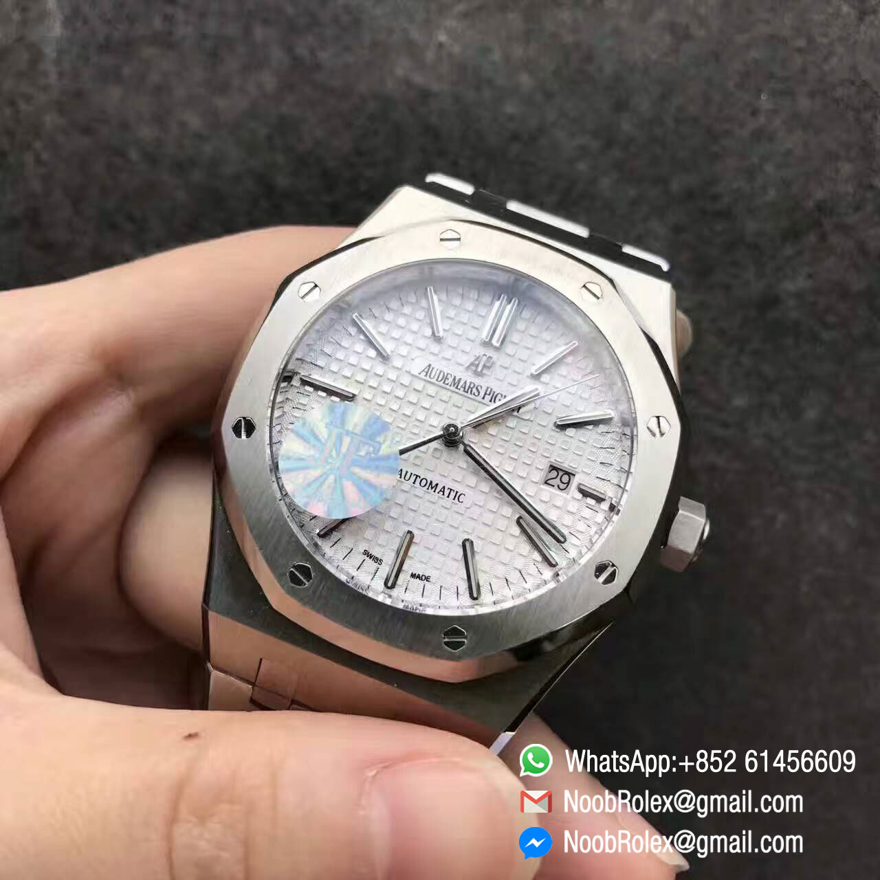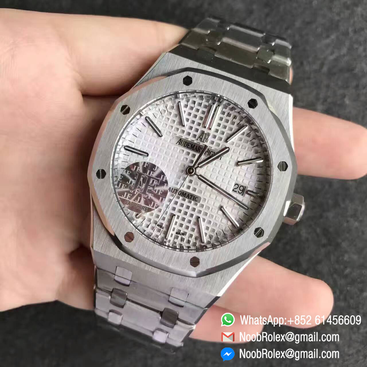 Order Now AP Royal Oak Watch 15400, Size 41mm, Stainless Steel Case, JF 1:1 Best Edition, Silver Dial, on Stainless Steel Bracelet, Asian Clone 3120 Movement.