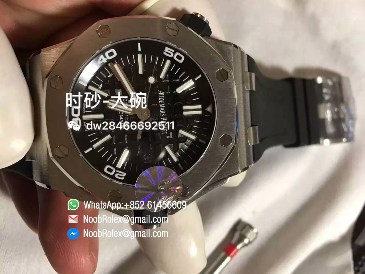 Order Now AP Royal Oak Offshore Diver Watch 15703ST.OO.A002CA.01 JF 1:1 Best Version Selfwinding watch with dive-time measurement and date. Stainless steel case, black dial with inner rotating ring with diving scale, luminescent hour- markers and hands. Stainless Steel strap.