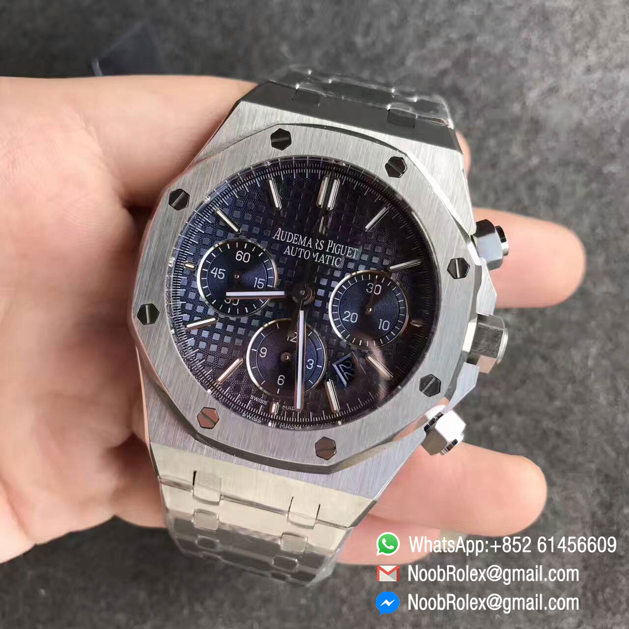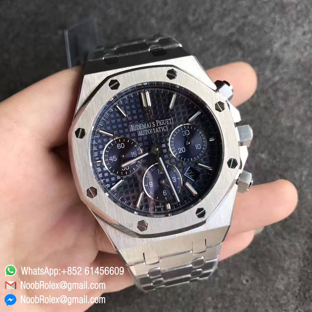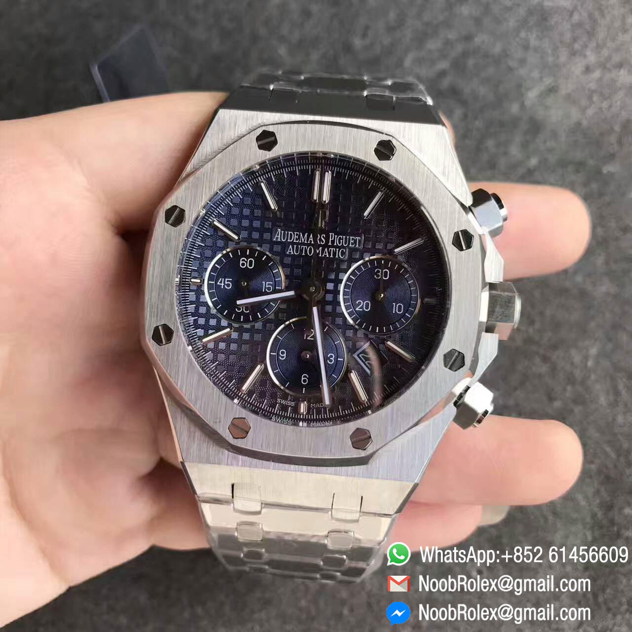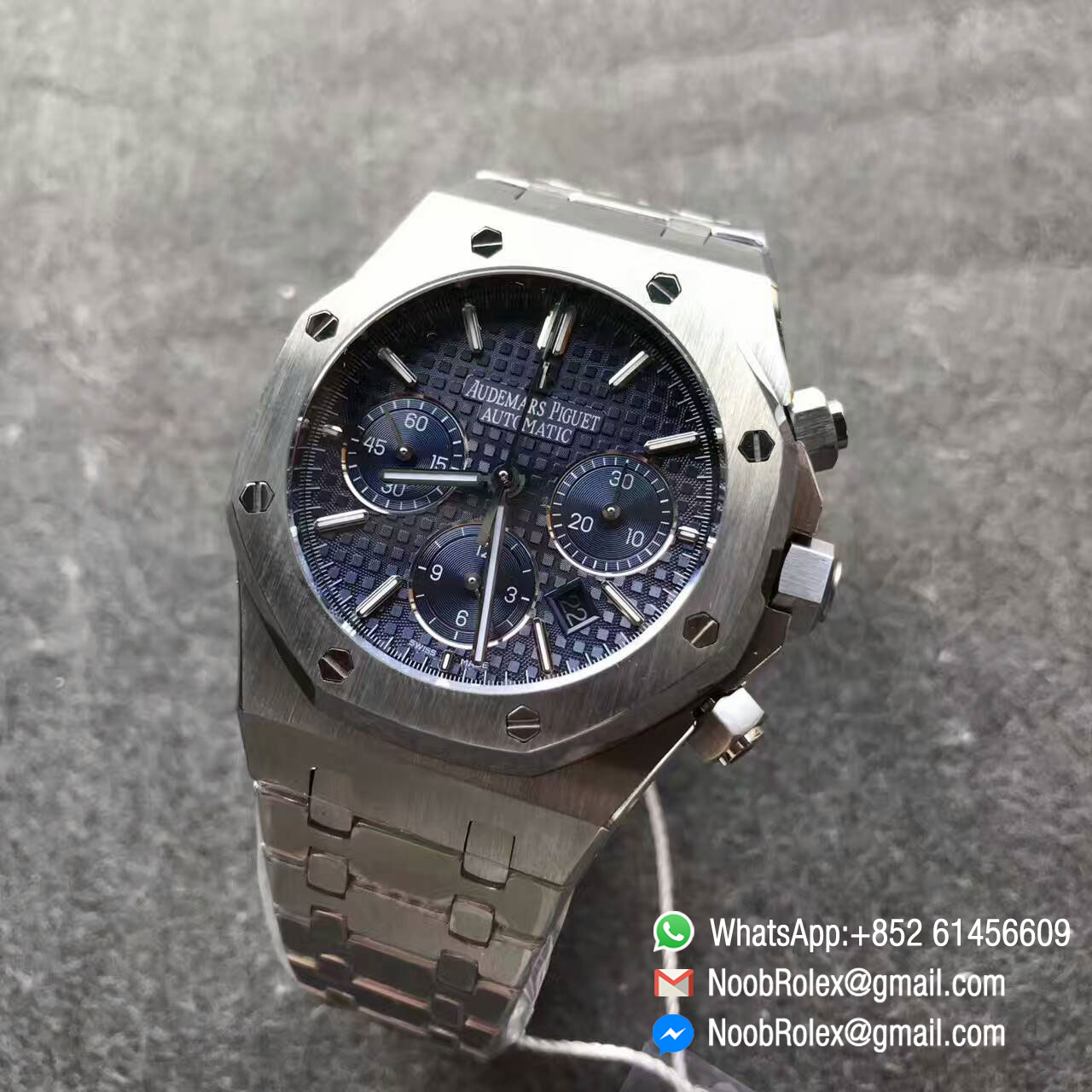 Order Now Selfwinding chronograph with date display and small seconds at 9 o’clock. Stainless steel case and bracelet,blue textured dial.