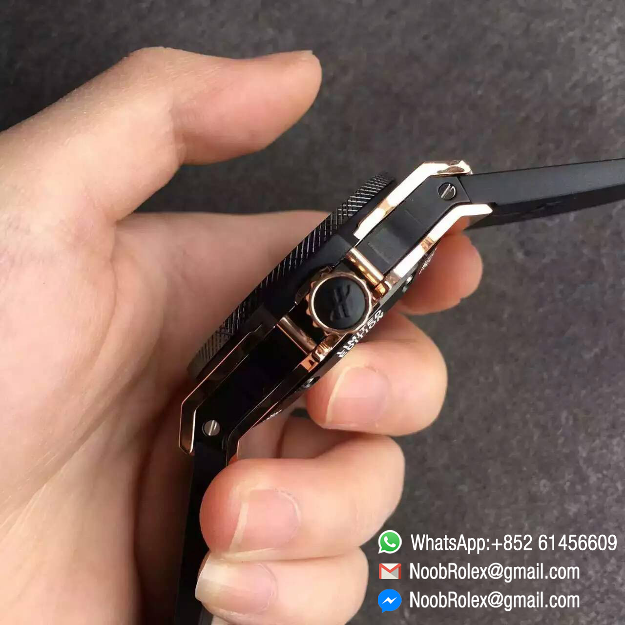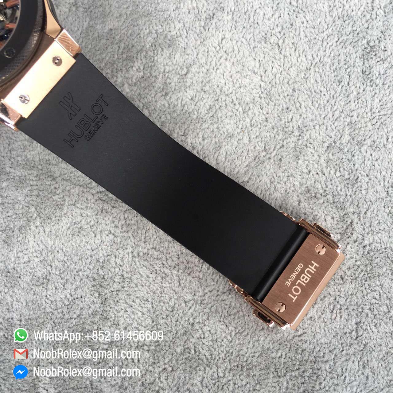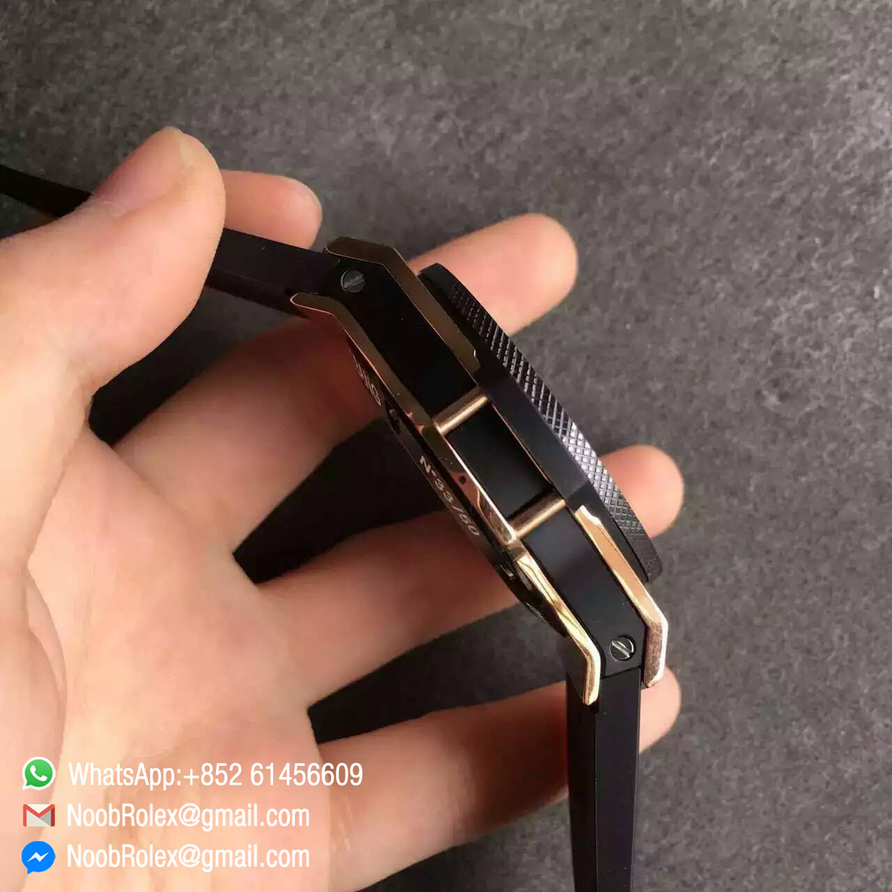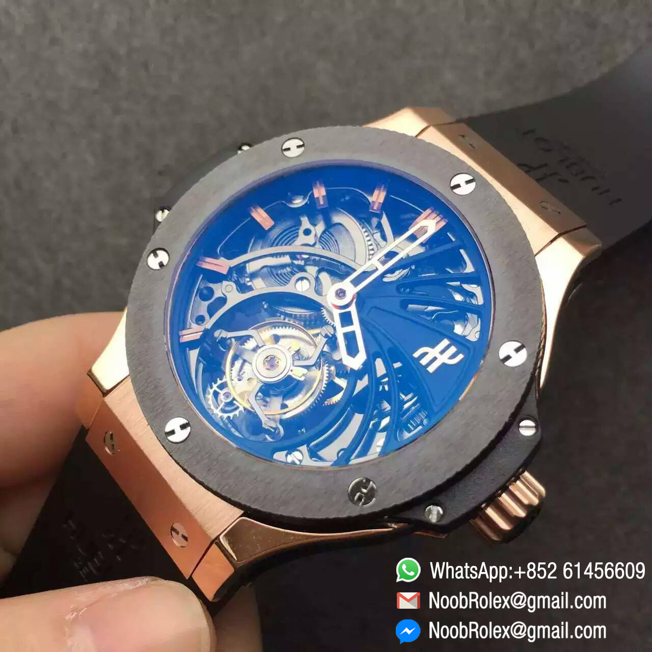 Order Now Big Bang Watch, 44mm, Skeleton Style Design, Real Tourbillon Handwinding Movement, Rose Gold Case, Black Ceramic Bezel, Black Rubber Strap, Limited Edition, H Factory.