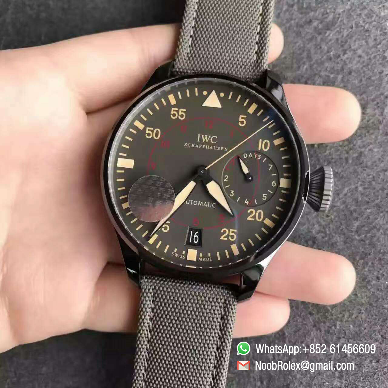 Order Now IWC Big Pilot’s Watch: USA NAVY Fighter Weapons School Top Gun Edition Power Reserve Watch IW501902 Real Ceramic Case ZF 1:1 Best Edition on Green Nylon Strap Asian 51111 Movement.