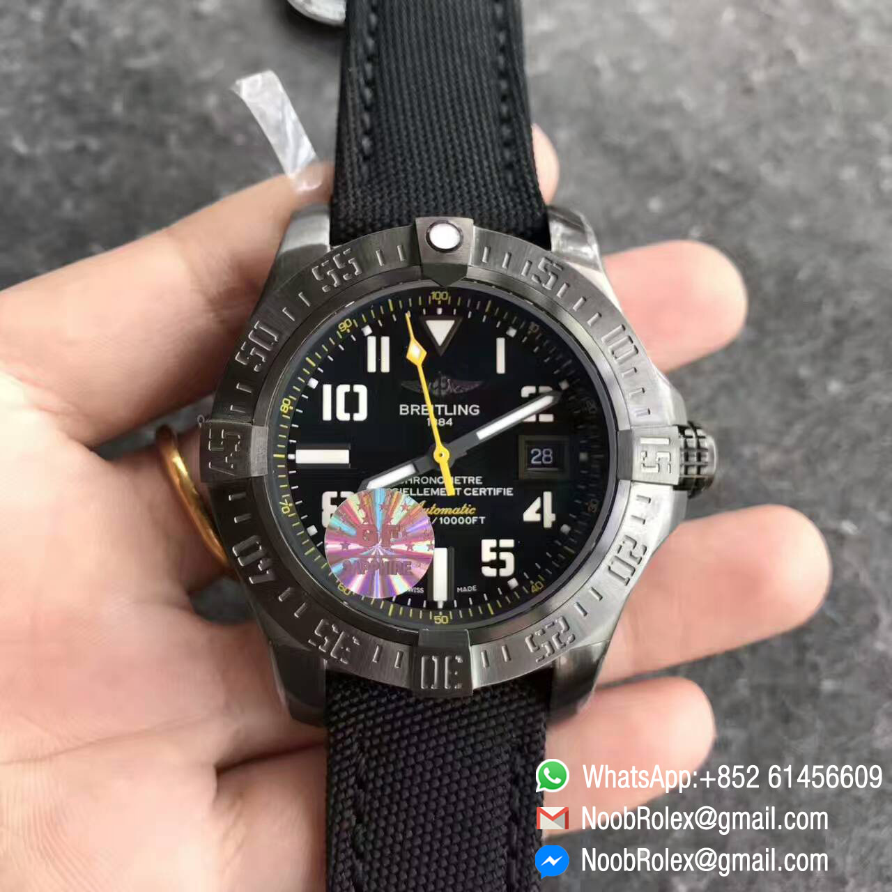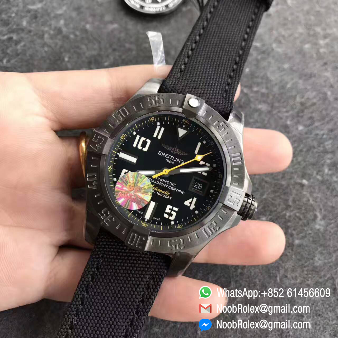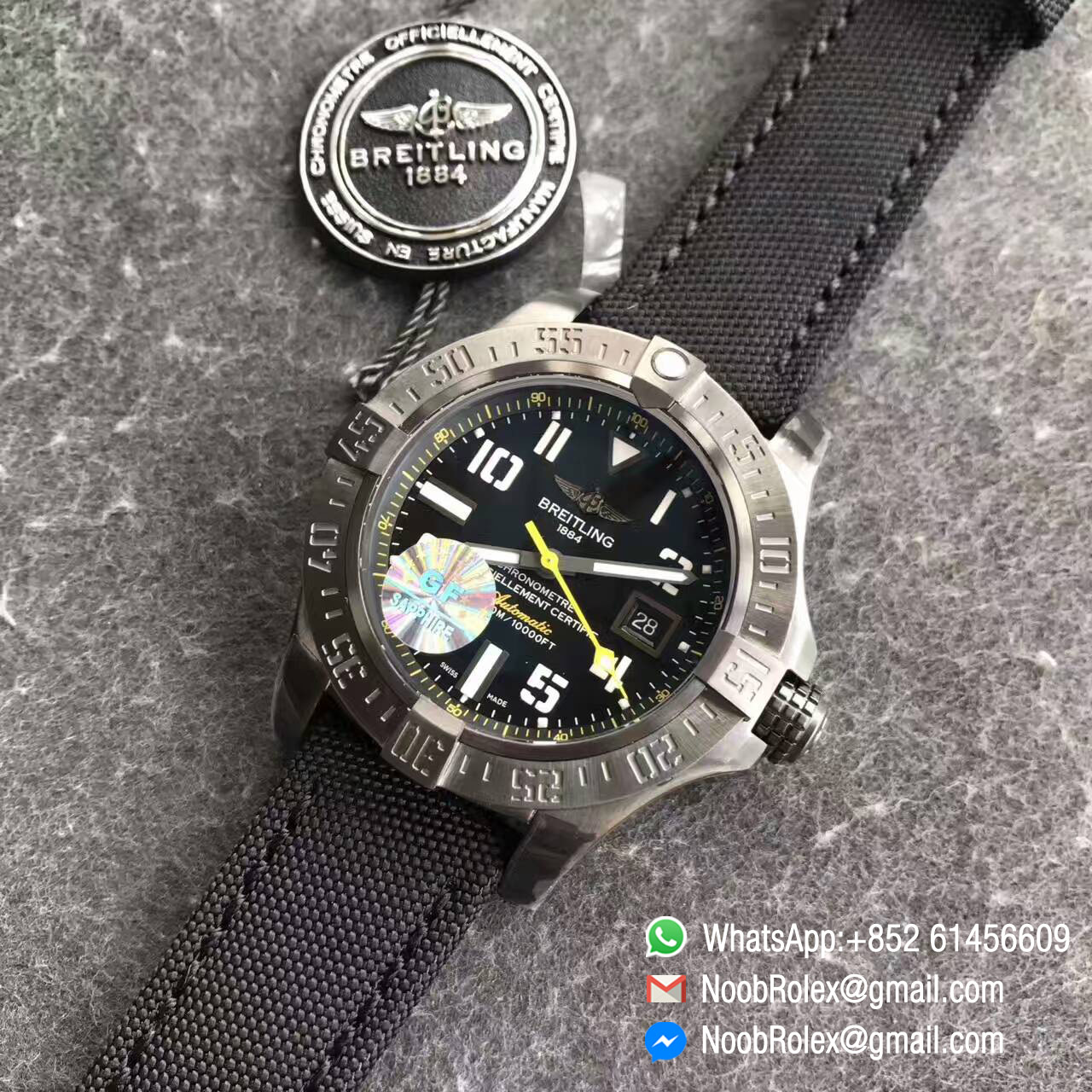 Order Now Breitling Avenger II Seawolf PVD Black Dial On Black Nylon Strap Asian 2824 automatic movement, GF 1:1 Perfect Quality.