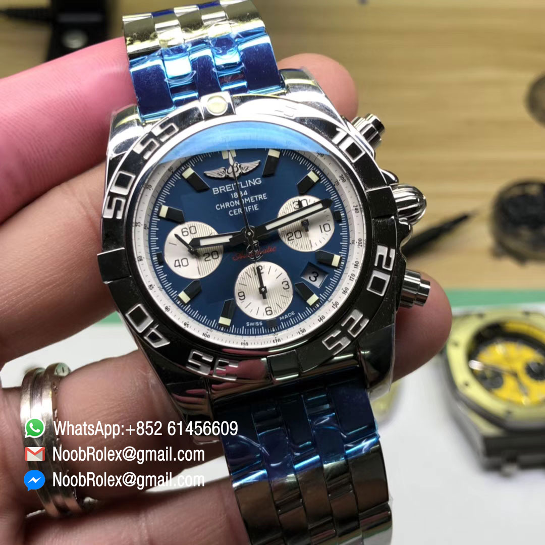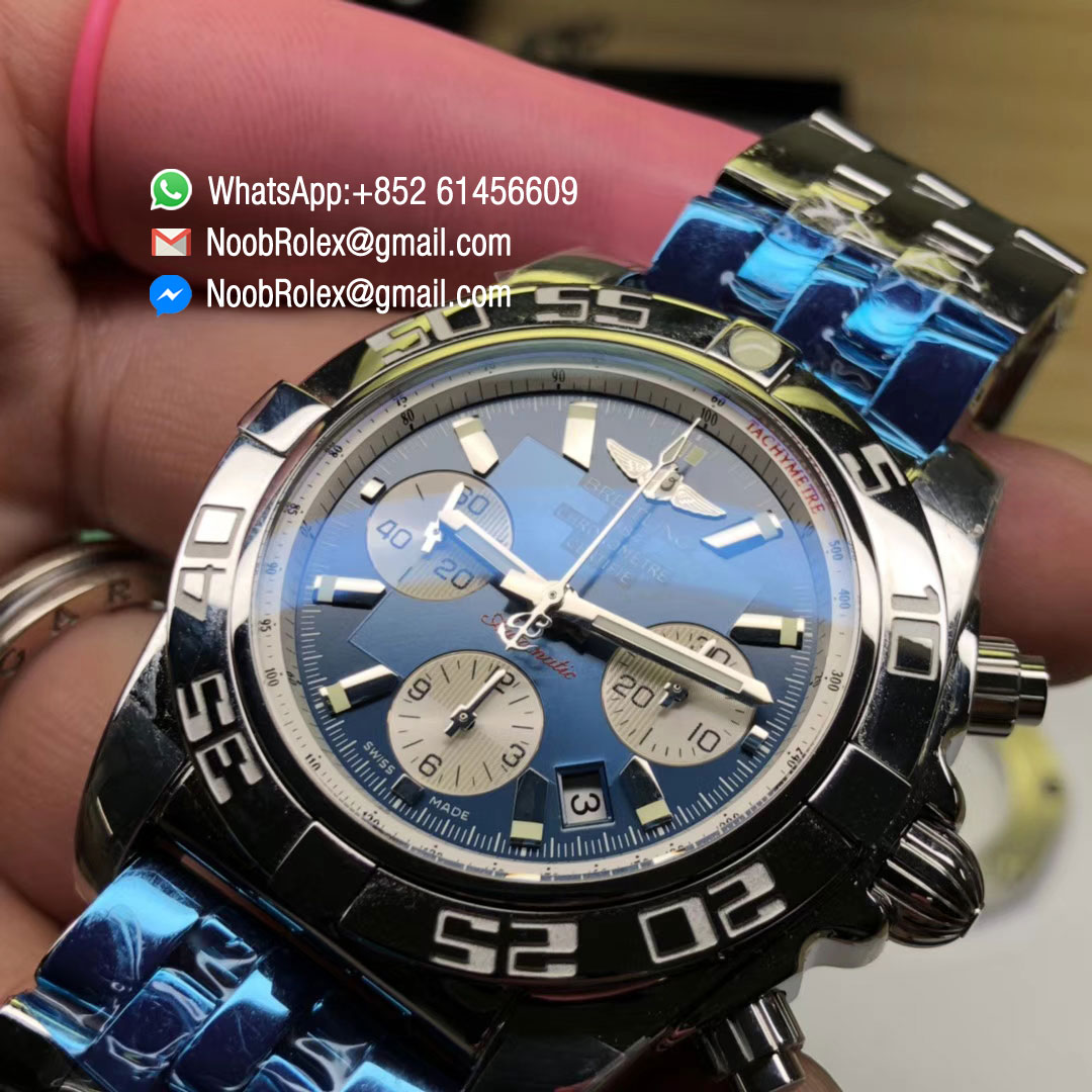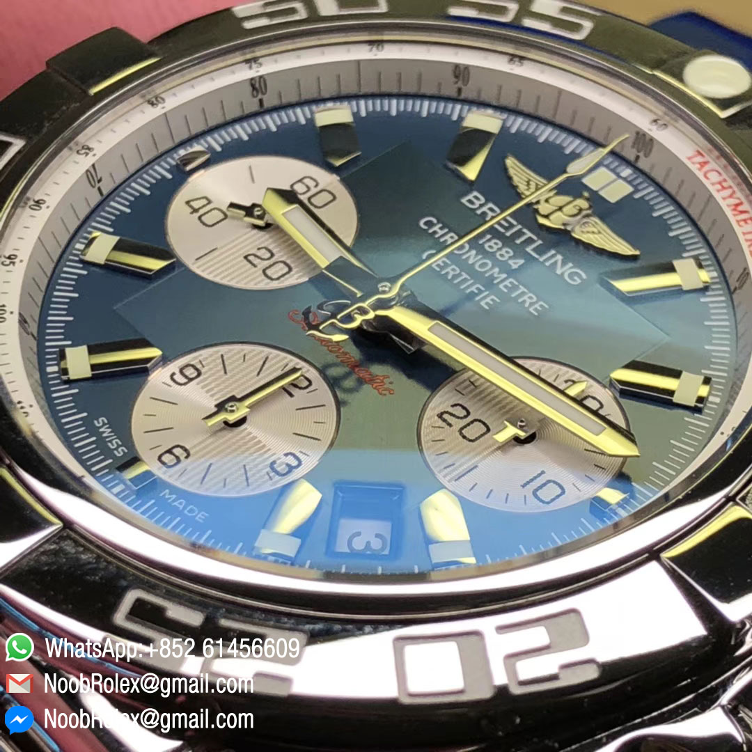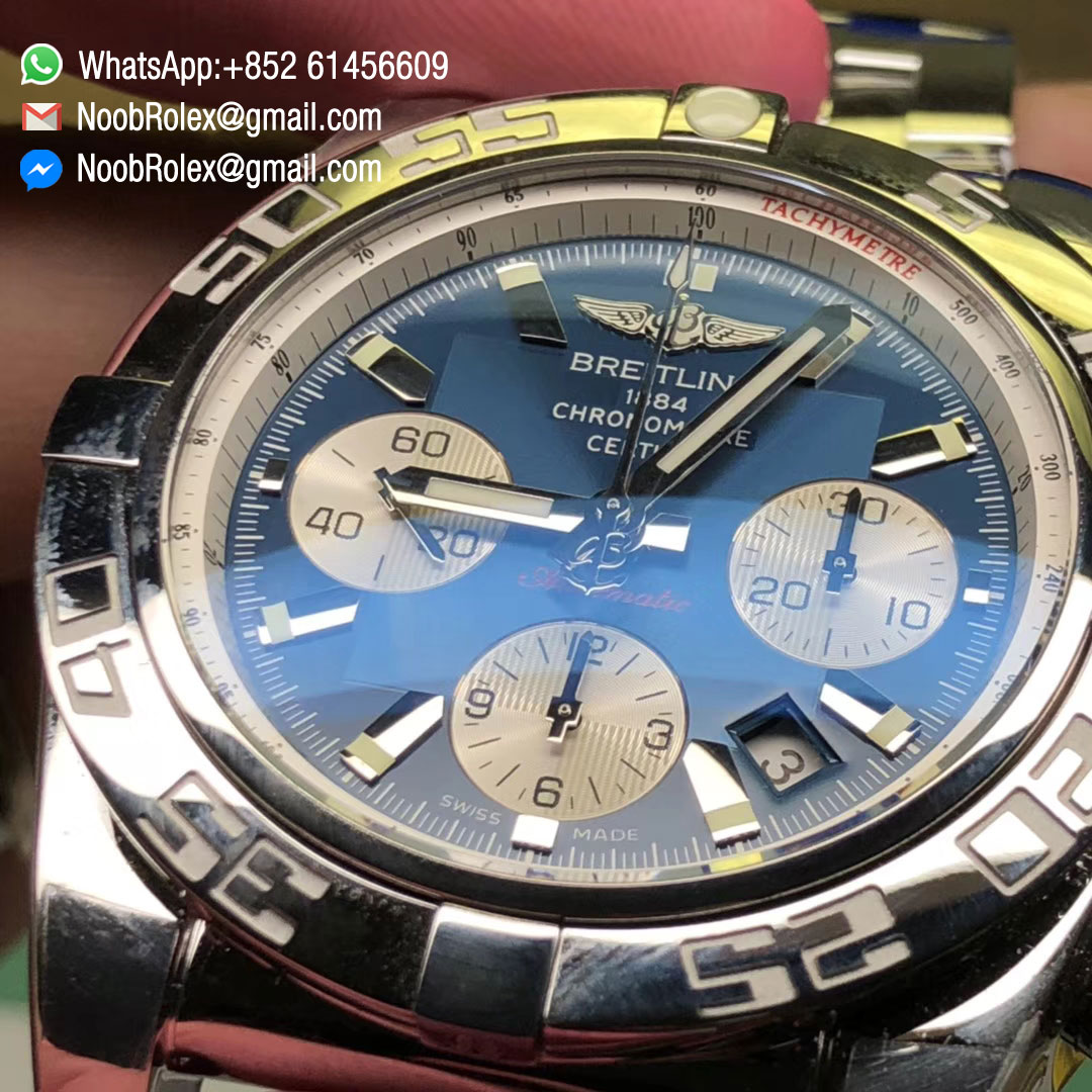 Order Now Breitling Chronomat B01 Chronograph Watch, Size 44mm, Stainless Steel Case & Stainless Steel Bracelet, Blue Dial with Asian 7750 Chrono Automatic Movement, made by famous GF, 1:1 clone quality.