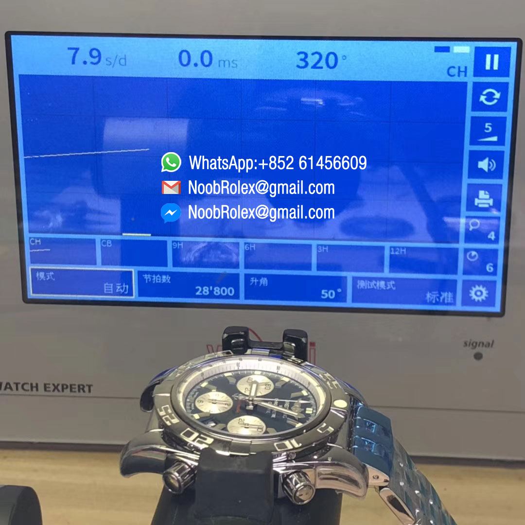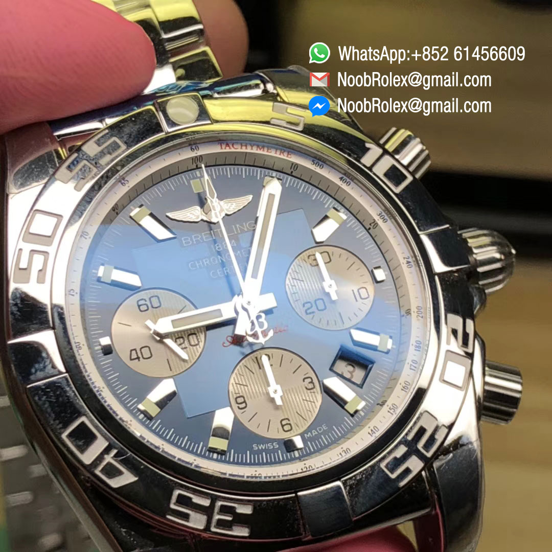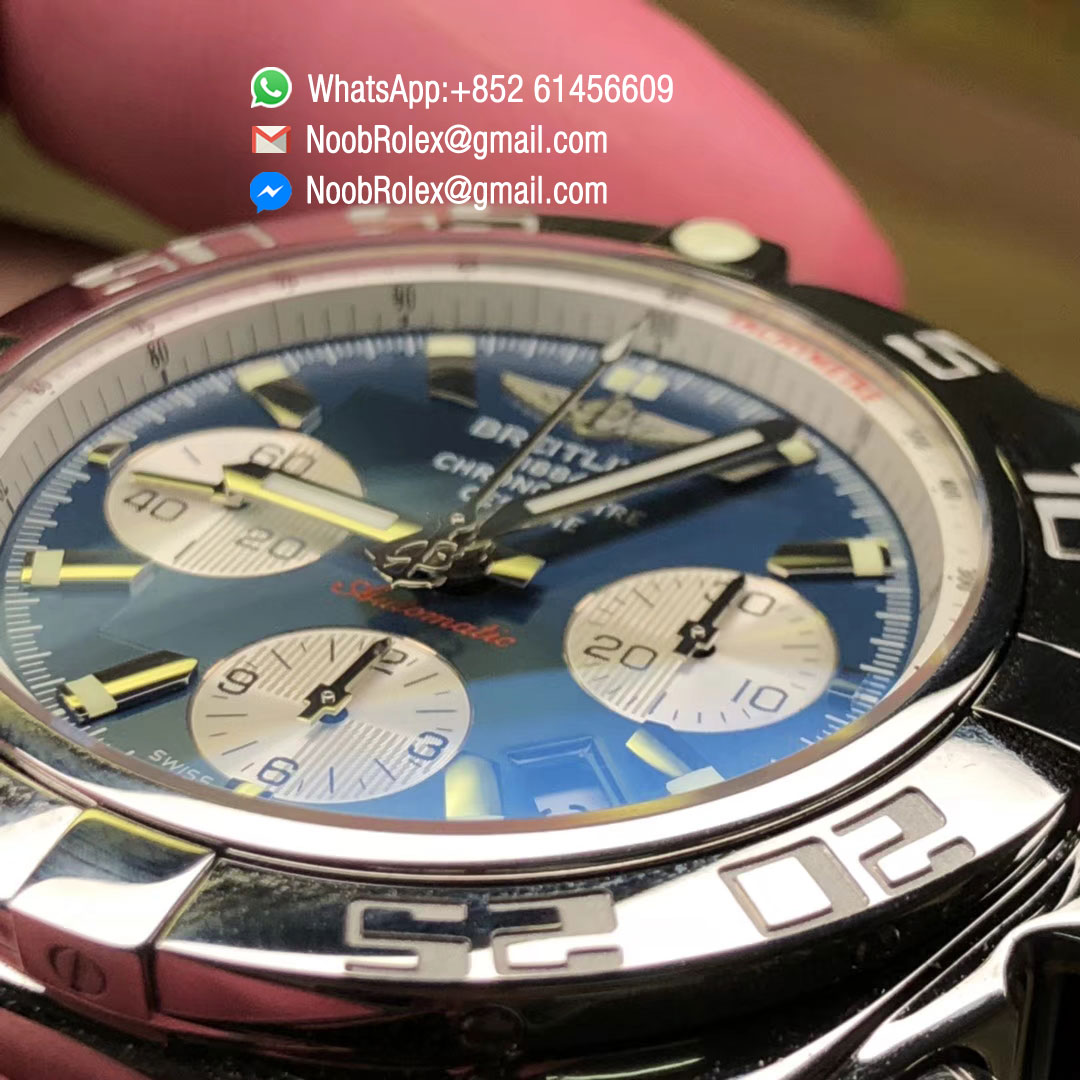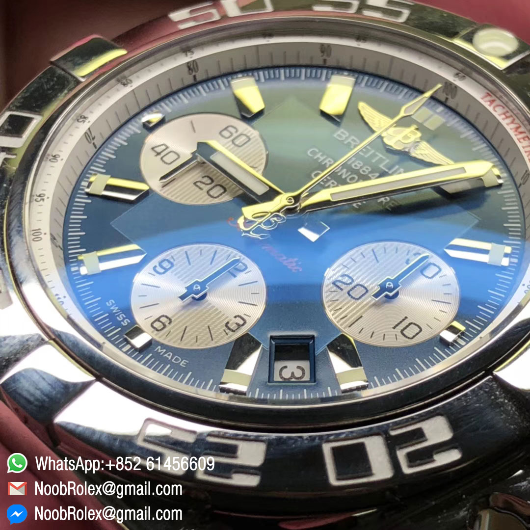 Order Now Breitling Chronomat B01 Chronograph Watch, Size 44mm, Stainless Steel Case & Stainless Steel Bracelet, Blue Dial with Asian 7750 Chrono Automatic Movement, made by famous GF, 1:1 clone quality.