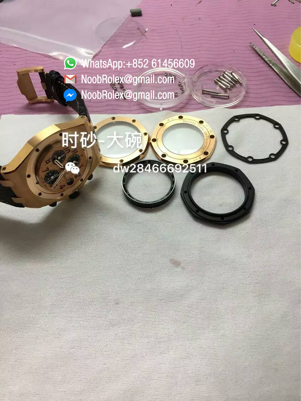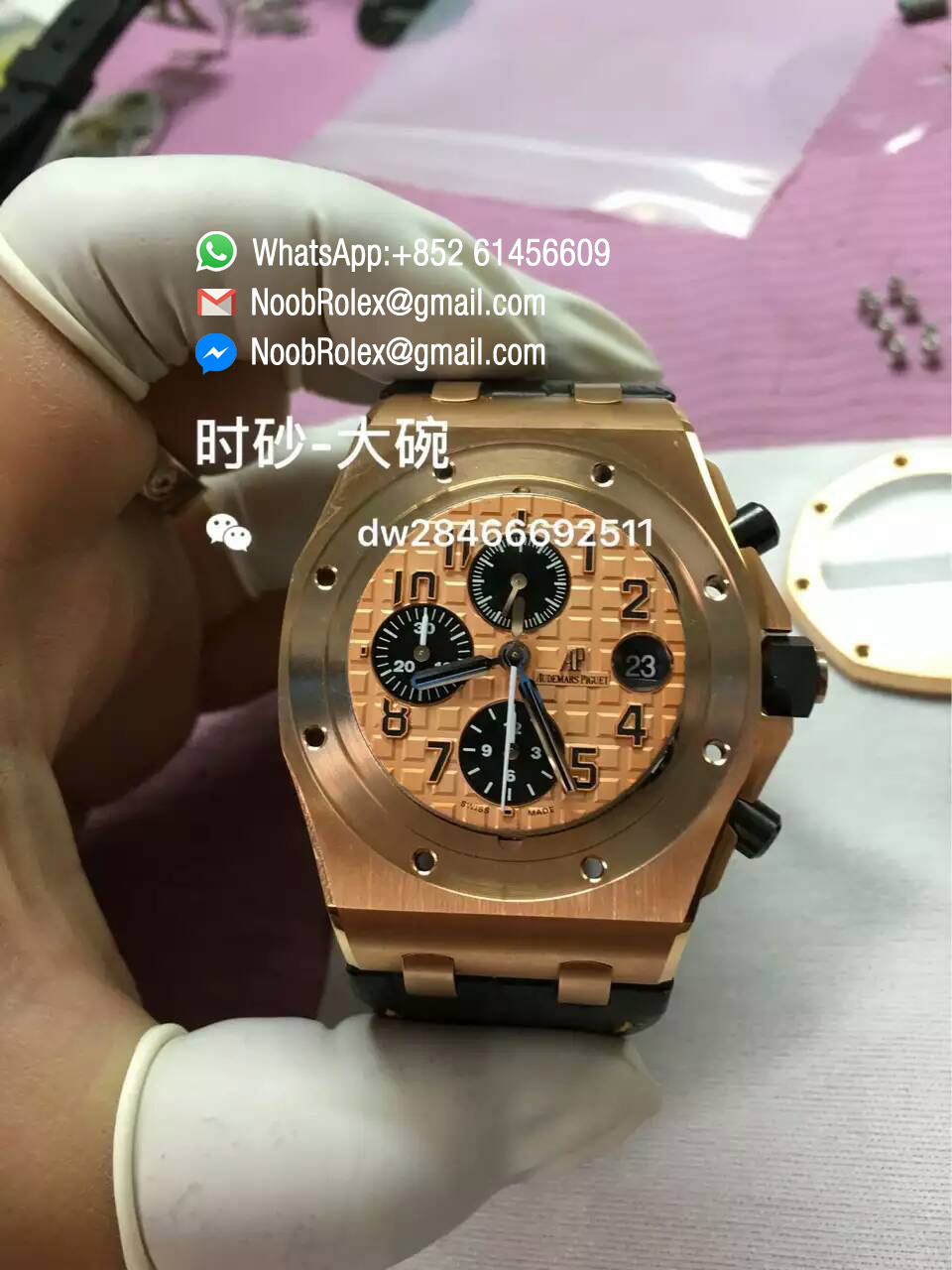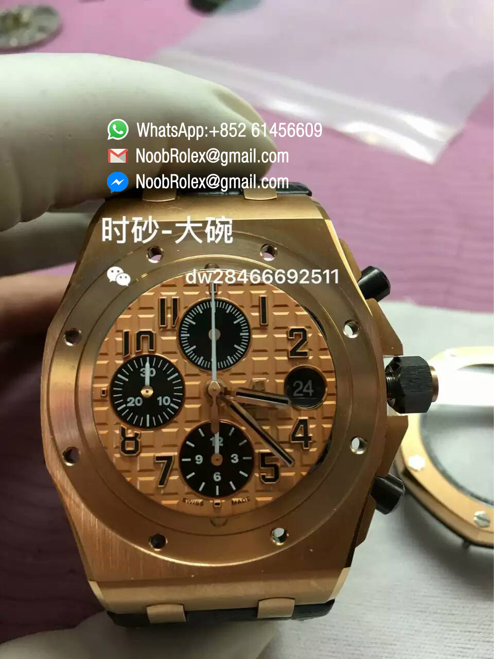 Order Now Calibrating Royal Oak Offshore 2014 Gold Themes Chronograph Automatic Watch. JF Best Edition, Pink Gold Dial on Black Leather Strap, Asian 3126 Movement,Free Rubber Strap.