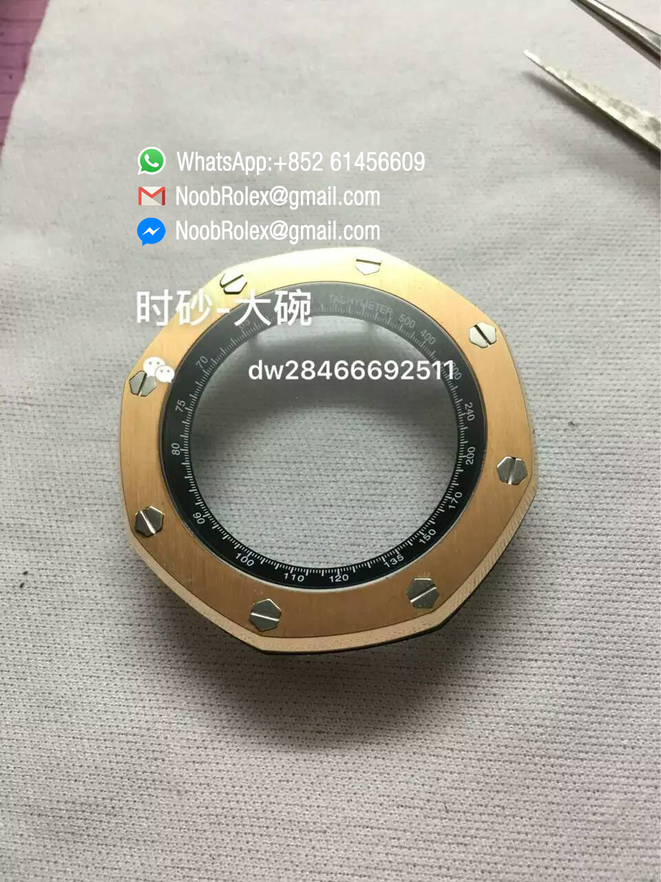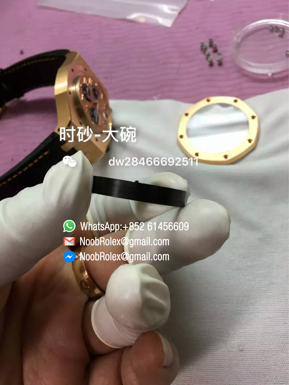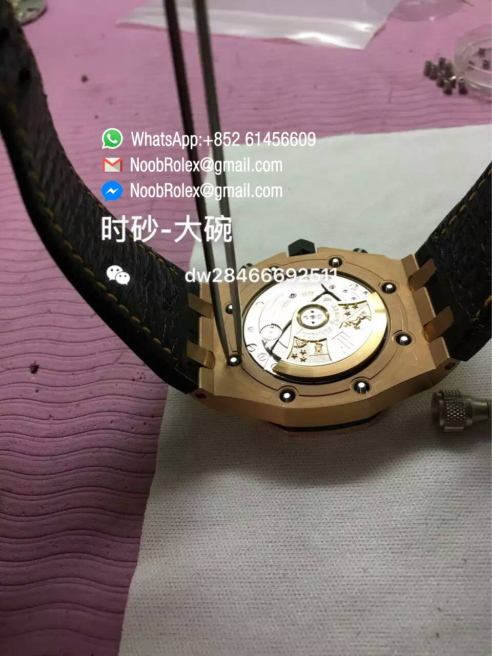 Order Now Calibrating Royal Oak Offshore 2014 Gold Themes Chronograph Automatic Watch. JF Best Edition, Pink Gold Dial on Black Leather Strap, Asian 3126 Movement,Free Rubber Strap.
