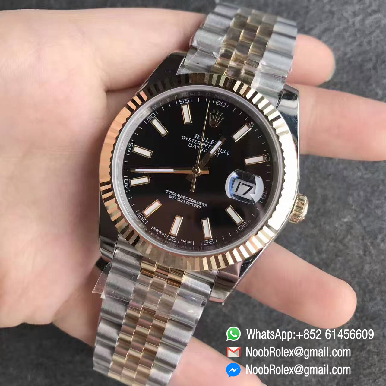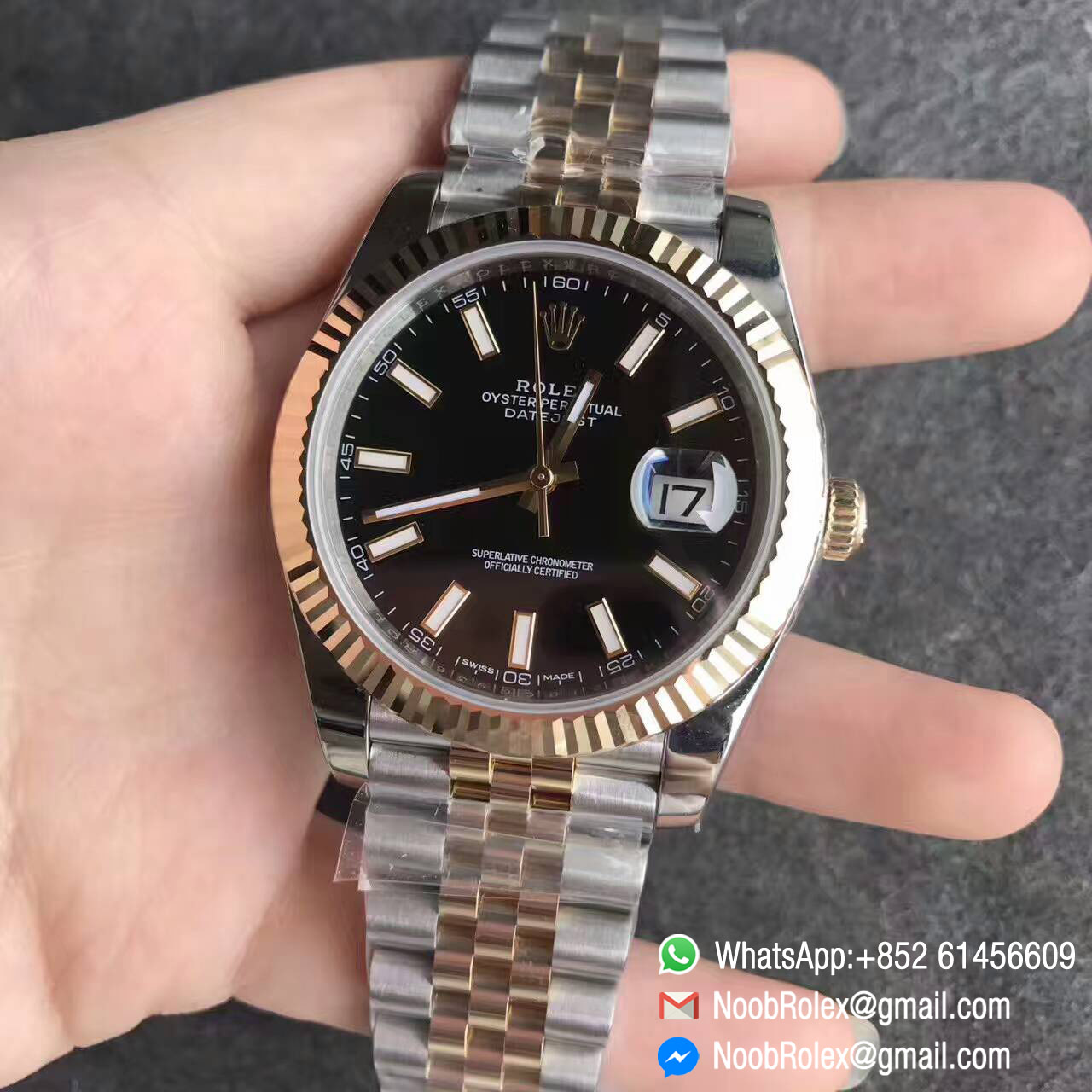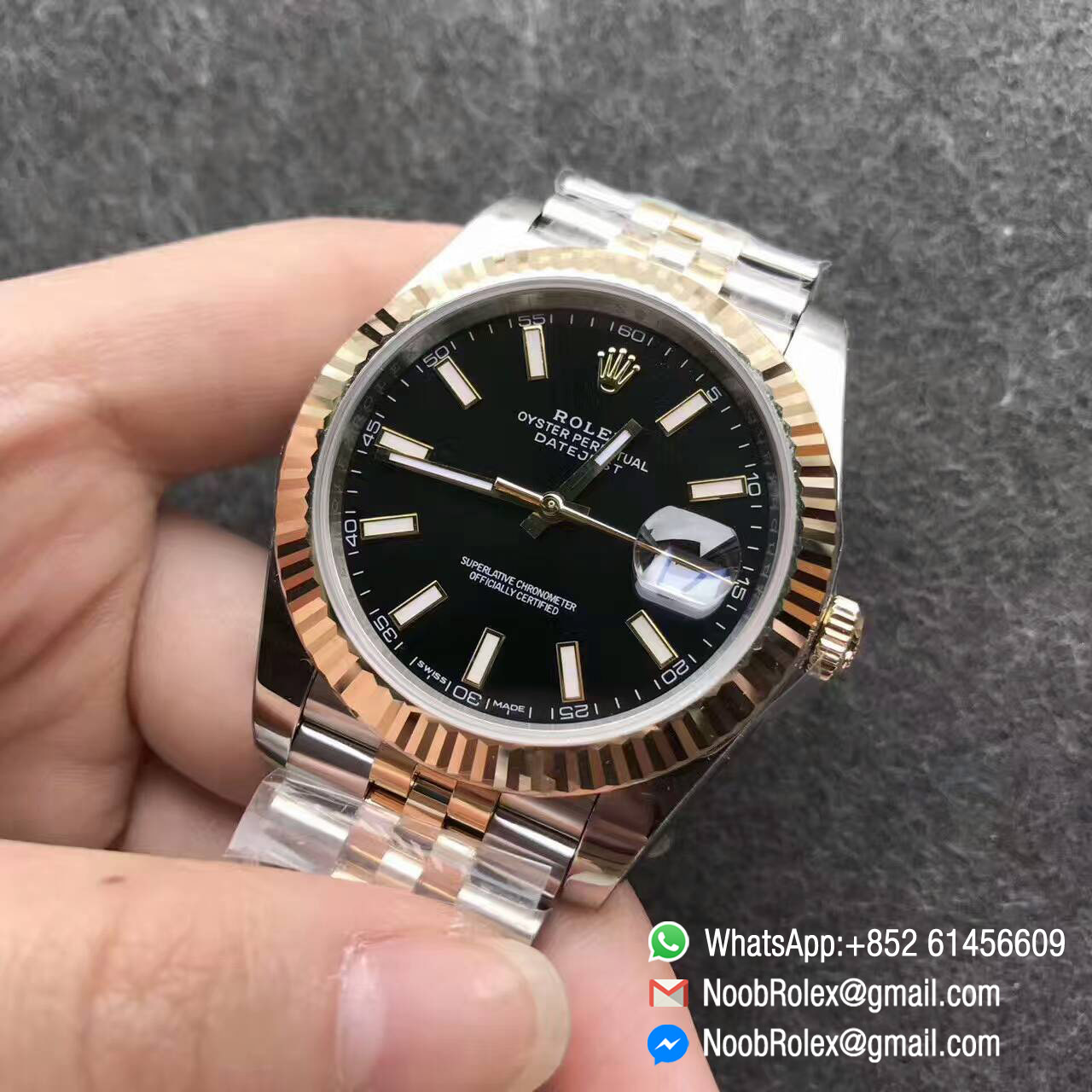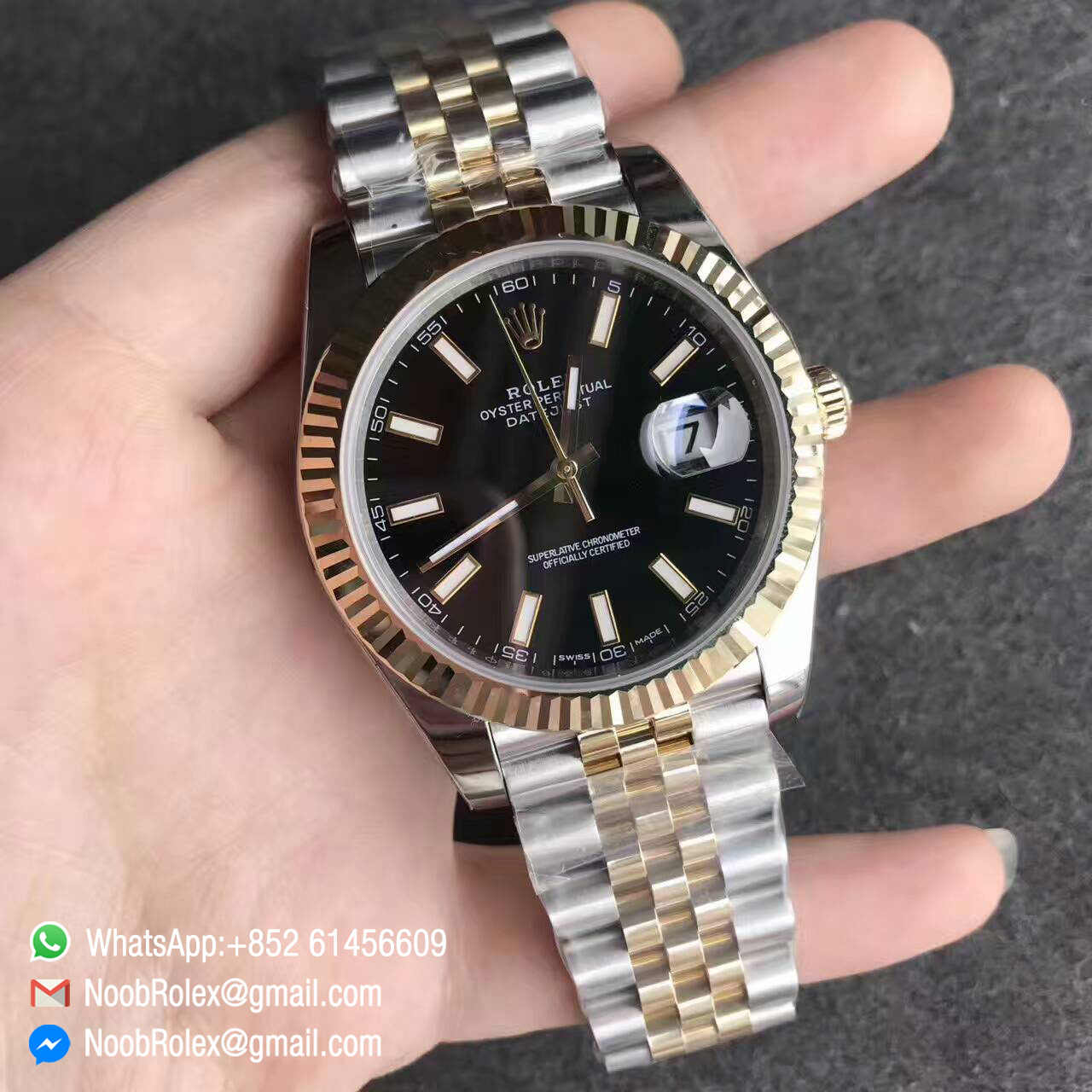 Order Now DateJust 41 Watch 126333, Noob 2017 Best Edition, Gold Wrapped Bezel and Black Dial on Steel-Gold Jubilee Bracelet, with Asain Super Clone 3235 Automatic Movement.