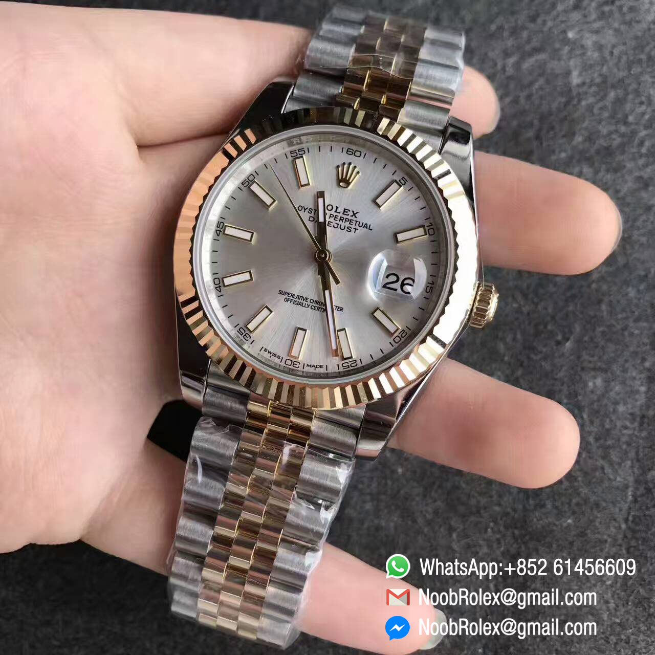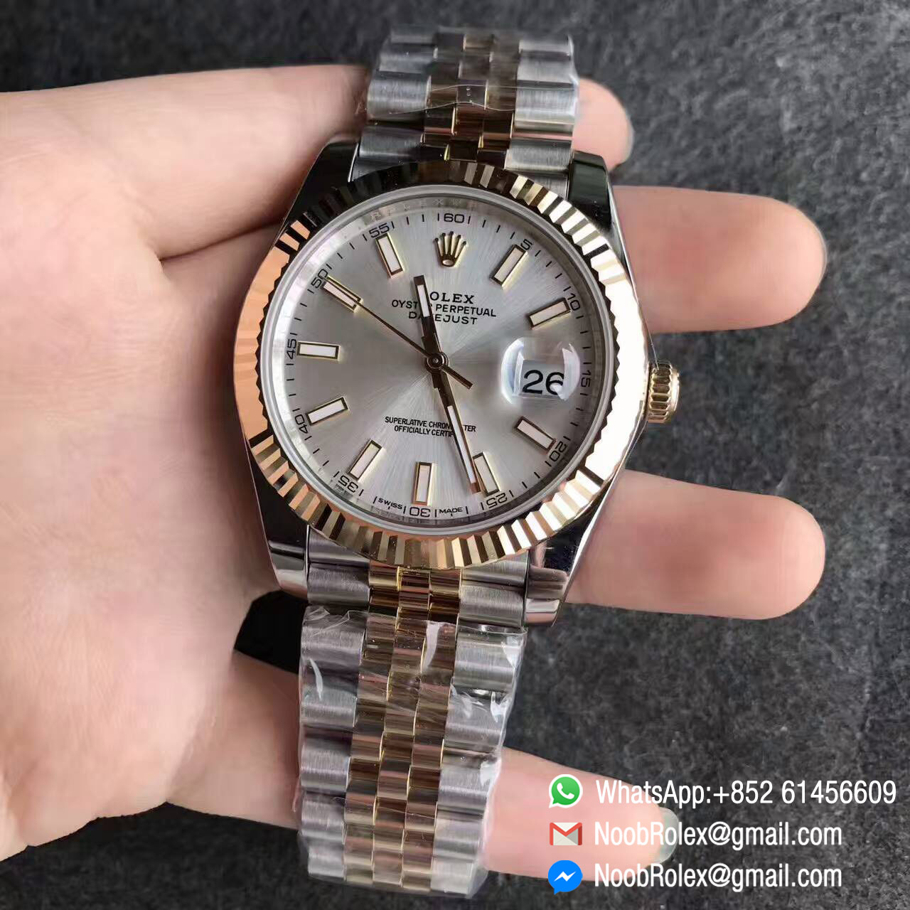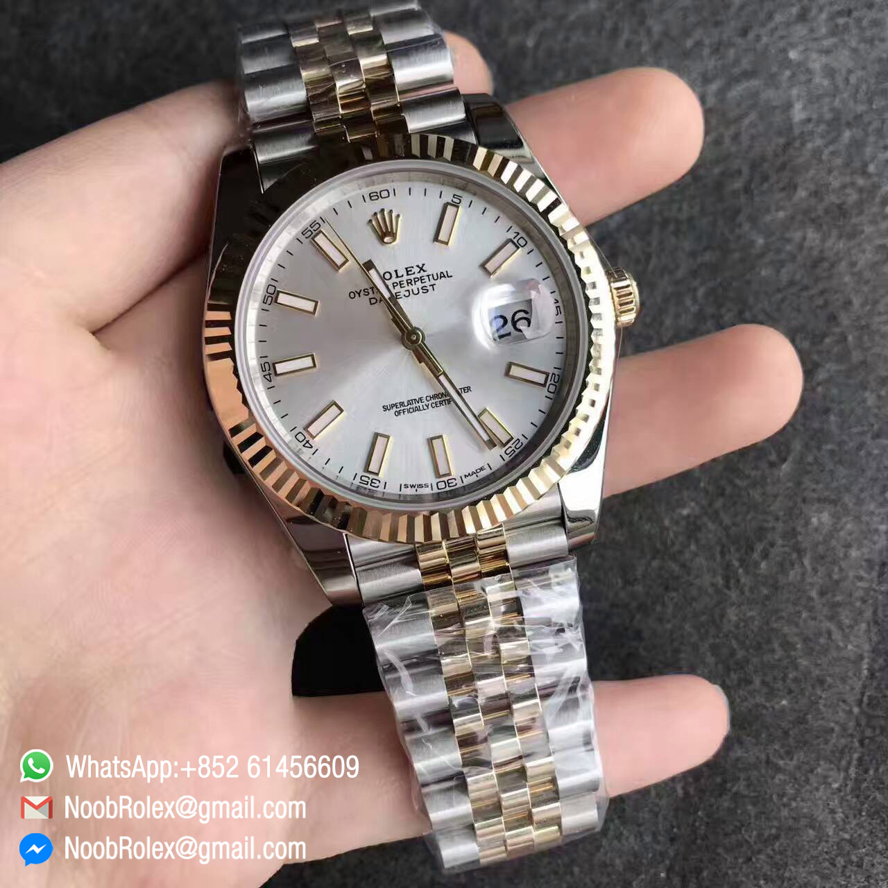 Order Now DateJust 41 Watch 126333, Noob 2017 Best Edition, Gold Wrapped Bezel and Silver Dial on Steel-Gold Jubilee Bracelet, with Asain Super Clone 3235 Automatic Movement.