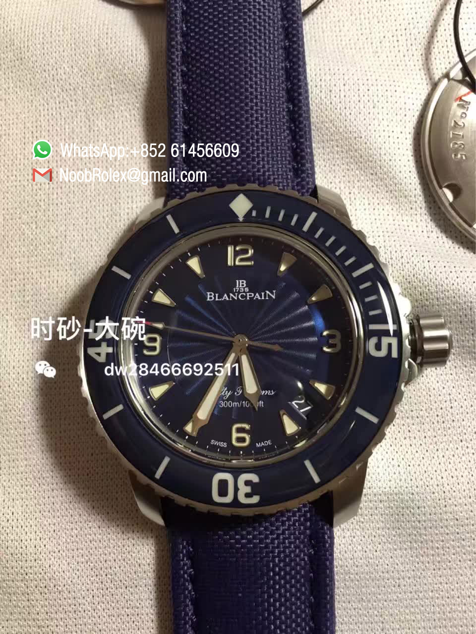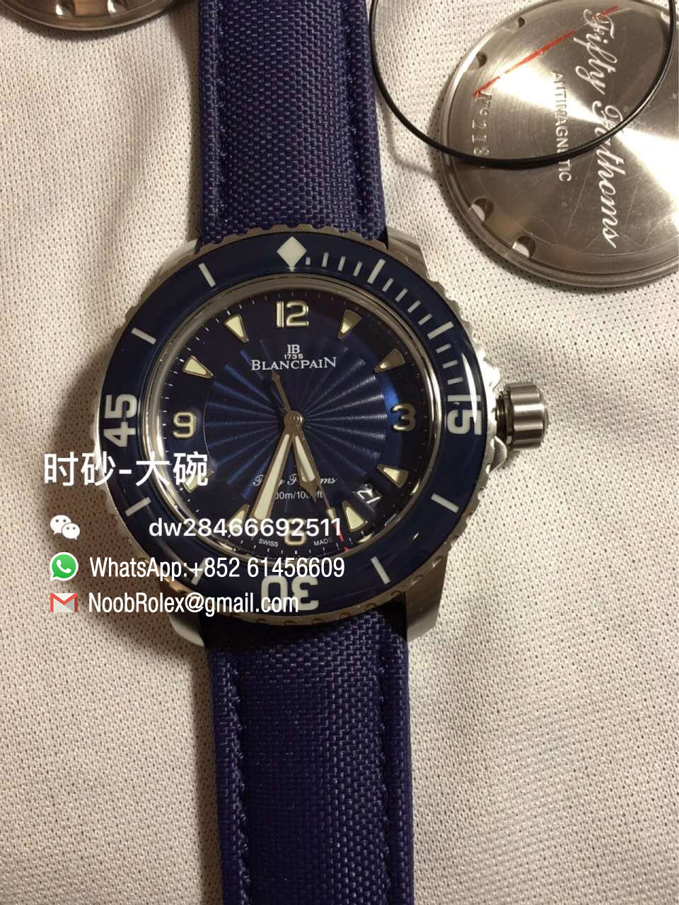 Order Now Blancpain Fifty Fathoms Watch 5015D-1140-52B QC Photos Blue Dial on Sail-canvas Strap Asian 2836 Automatic Movement. Noob Factory Representative works.
