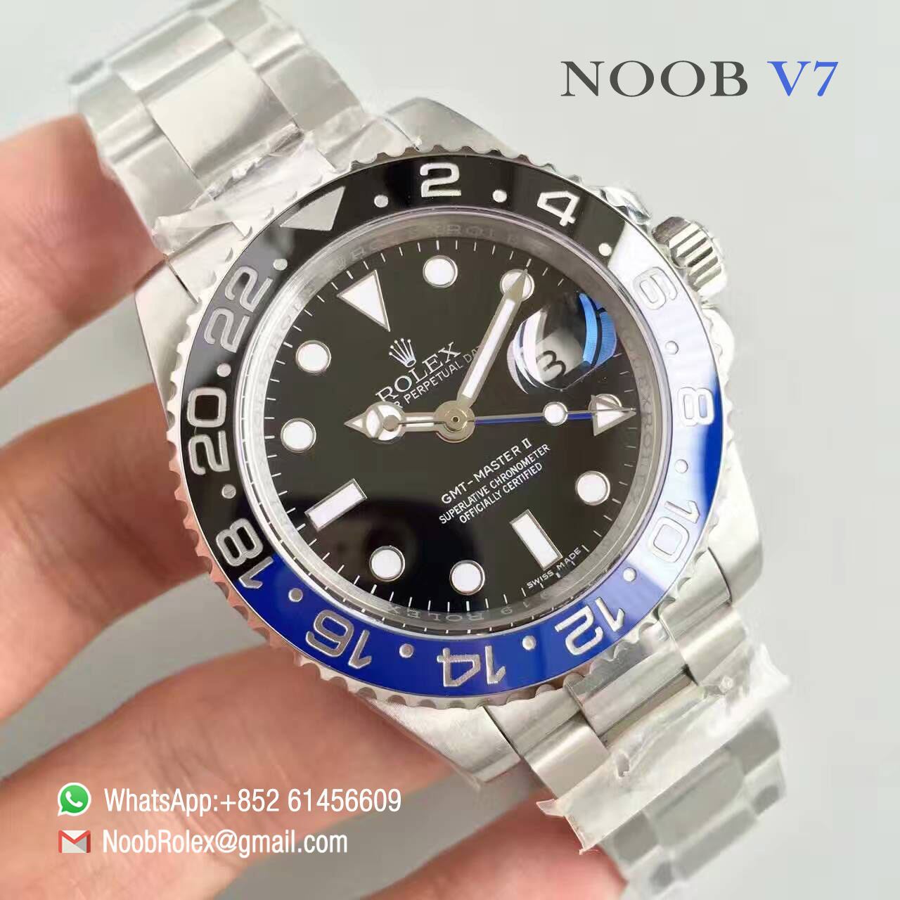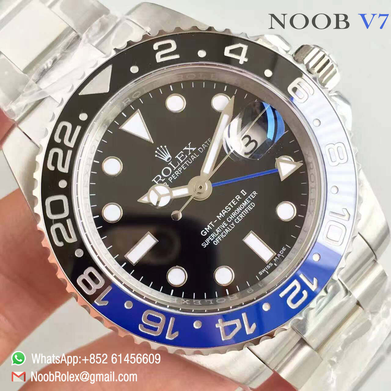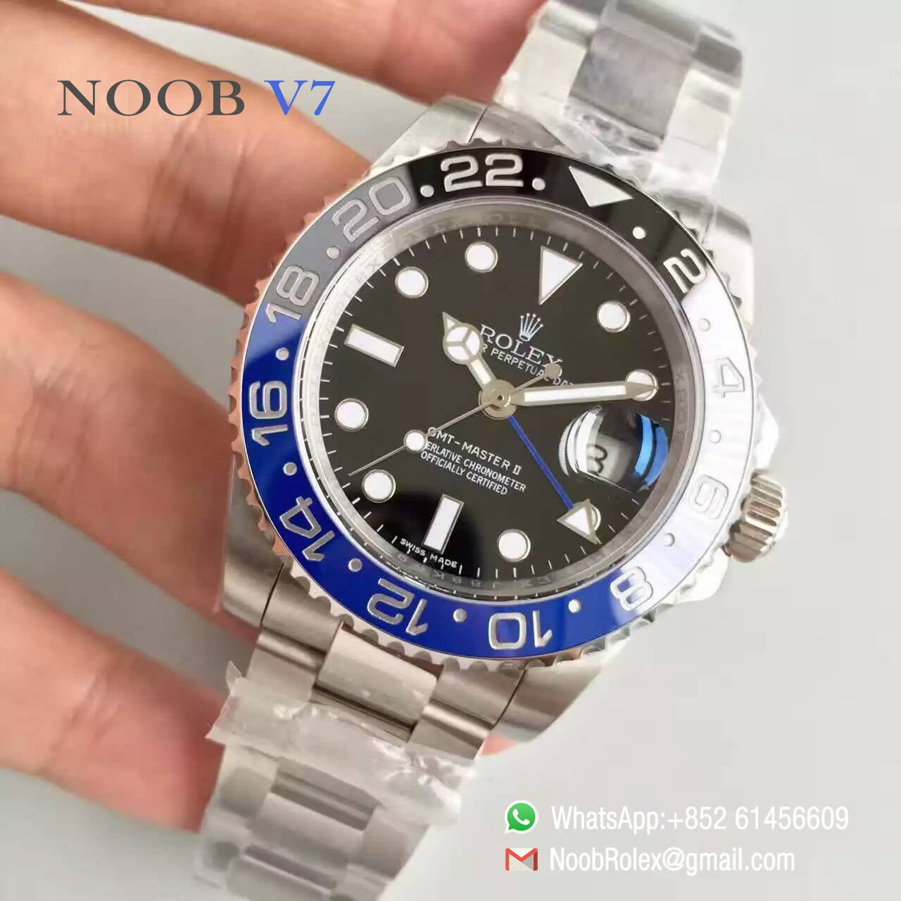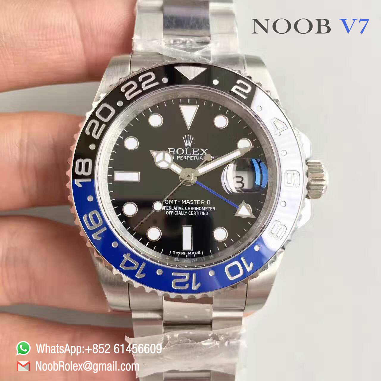 Order Now Oyster Perpetual GMT-Master II Watch: 116710BLNR, Blue and black Ceramic Bezel, Black Dial, 1:1 Noob Best Edition V7, Super Asian Clone 3186 Movement, Free Shipping DHL or EMS.
