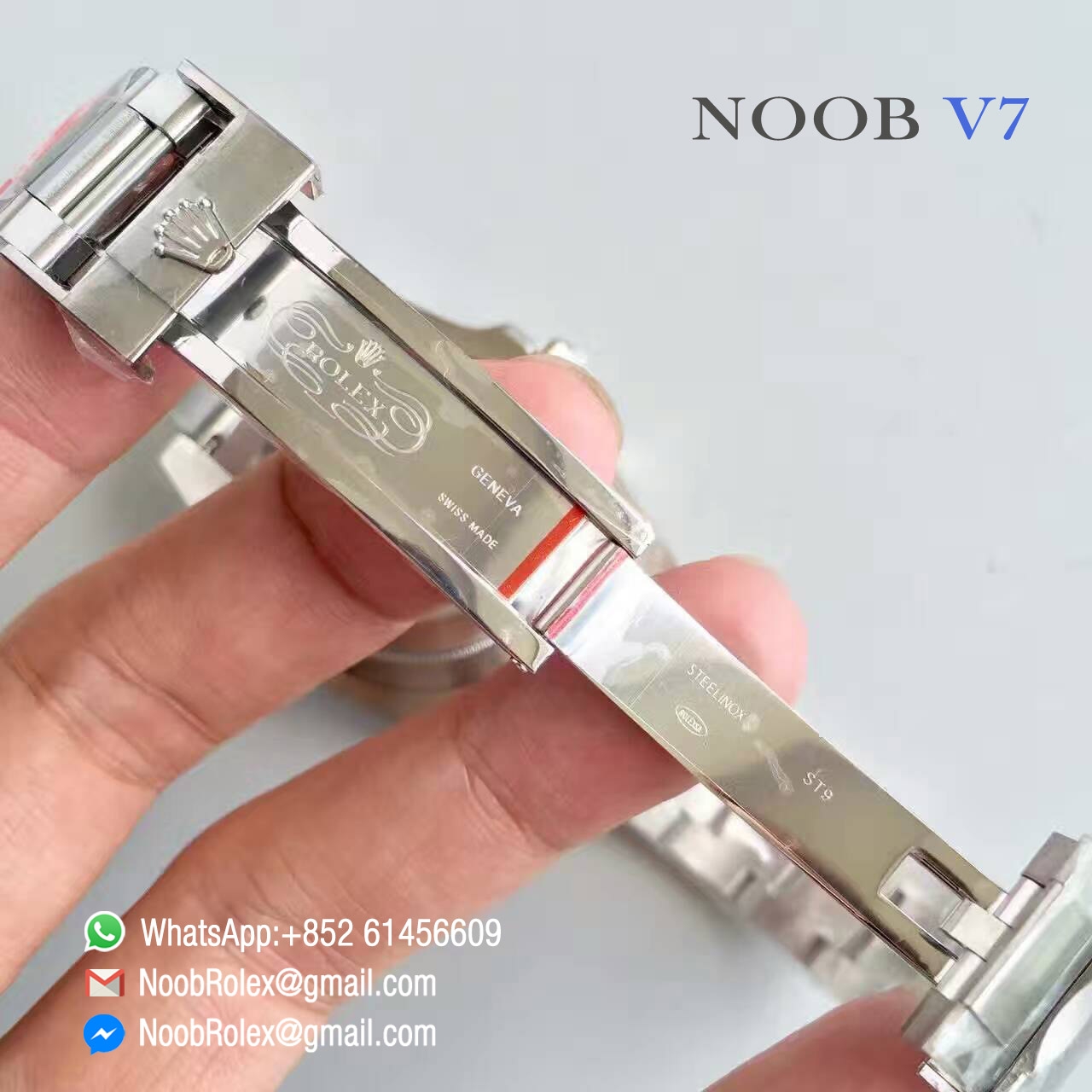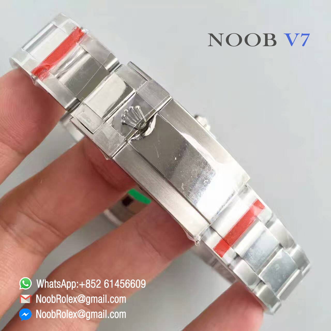 The V7 update: Update the hand order and update the bracelet clasp. Now the hand order is correct as the same as the genuine. The hand order from top to bottom of V7 is second hand, minute hand, blue GMT hand and hour hand. The bracelet clasp of V7 is smooth and gloss.