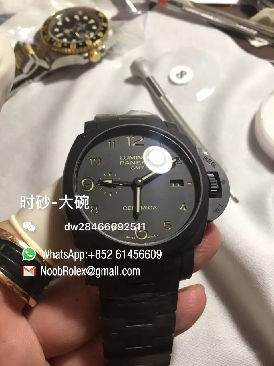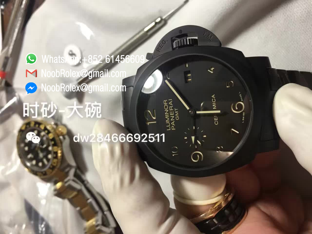Order Now Top Quality Clone Watch: Luminor Panerai GMT Watch PAM00438, Full Ceramic, V6F Best Edition on Ceramic Bracelet Asian P9001/B Movement.