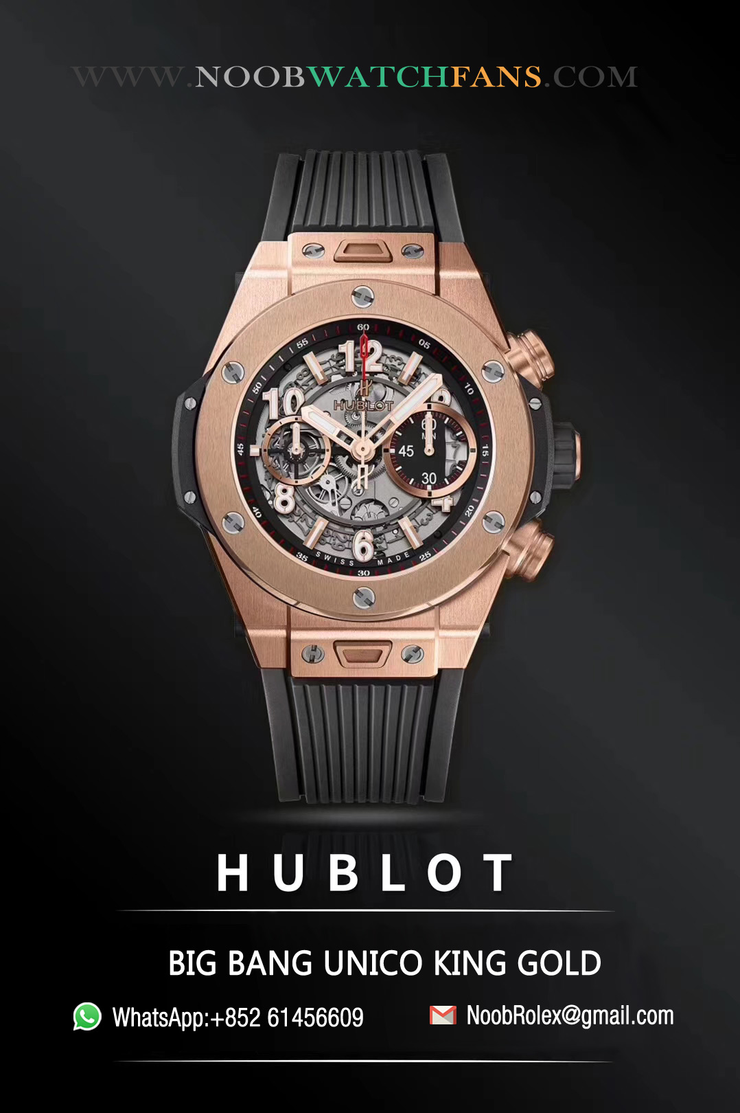 Order Now Hublot Big Bang Unico King Gold Watch 411.OX.1180.RX, Size: 45mm as real, design Skeleton Dial, Chronograph Automatic Movement, made by AB Factory, AAA+ quality.