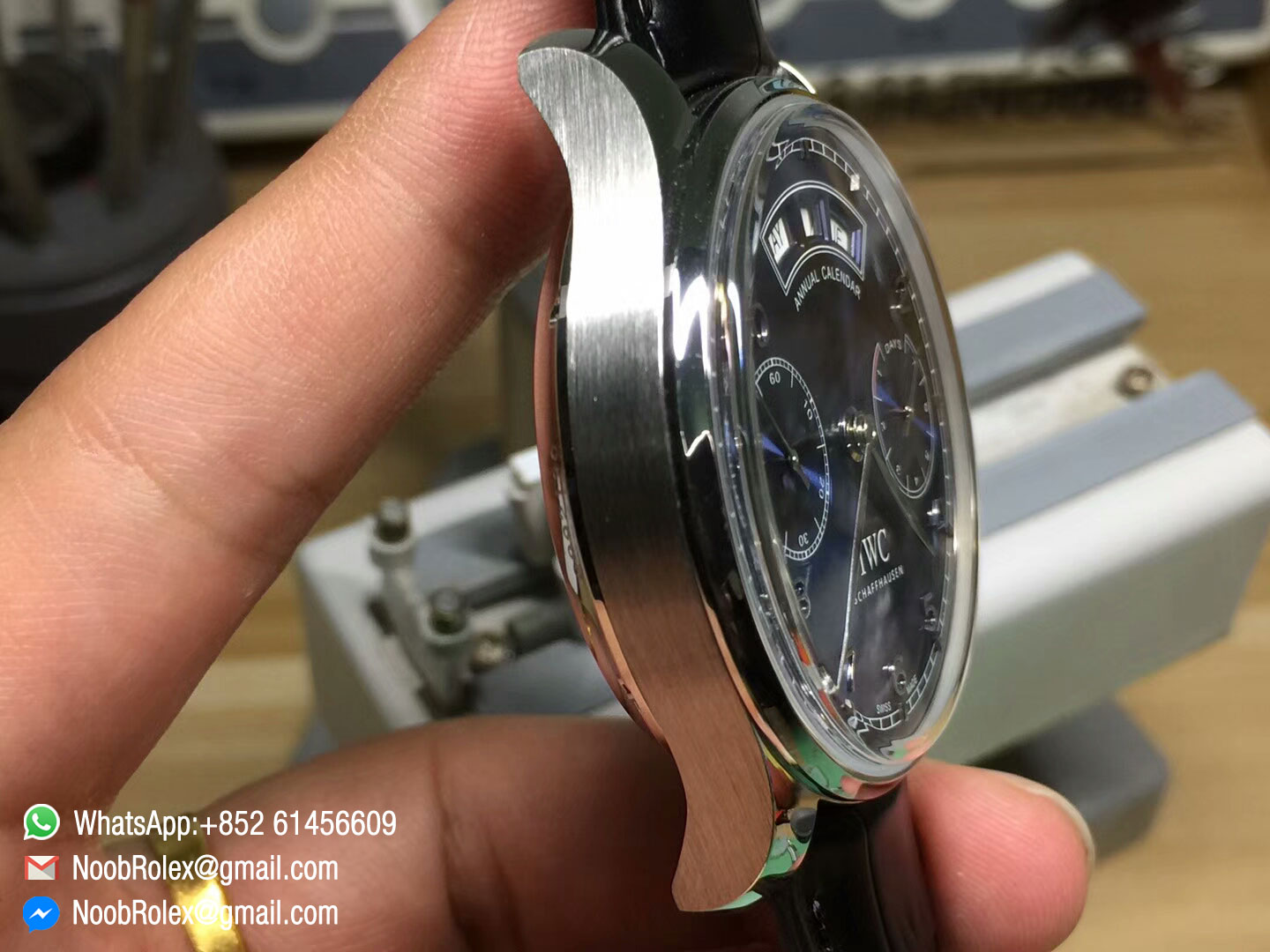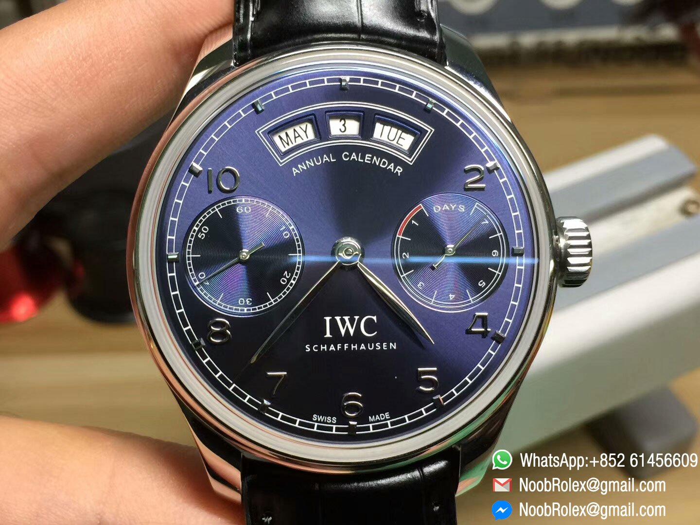 Order Now IWC Portuguese Real Power Reserve Real Annual Calendar, all function as same as the origianl watch, IW503502, Blue Dial on Black Leather Strap ,and with Asian clone 52850 movement, made by YL Factory, this watch is high quality fake Watch .