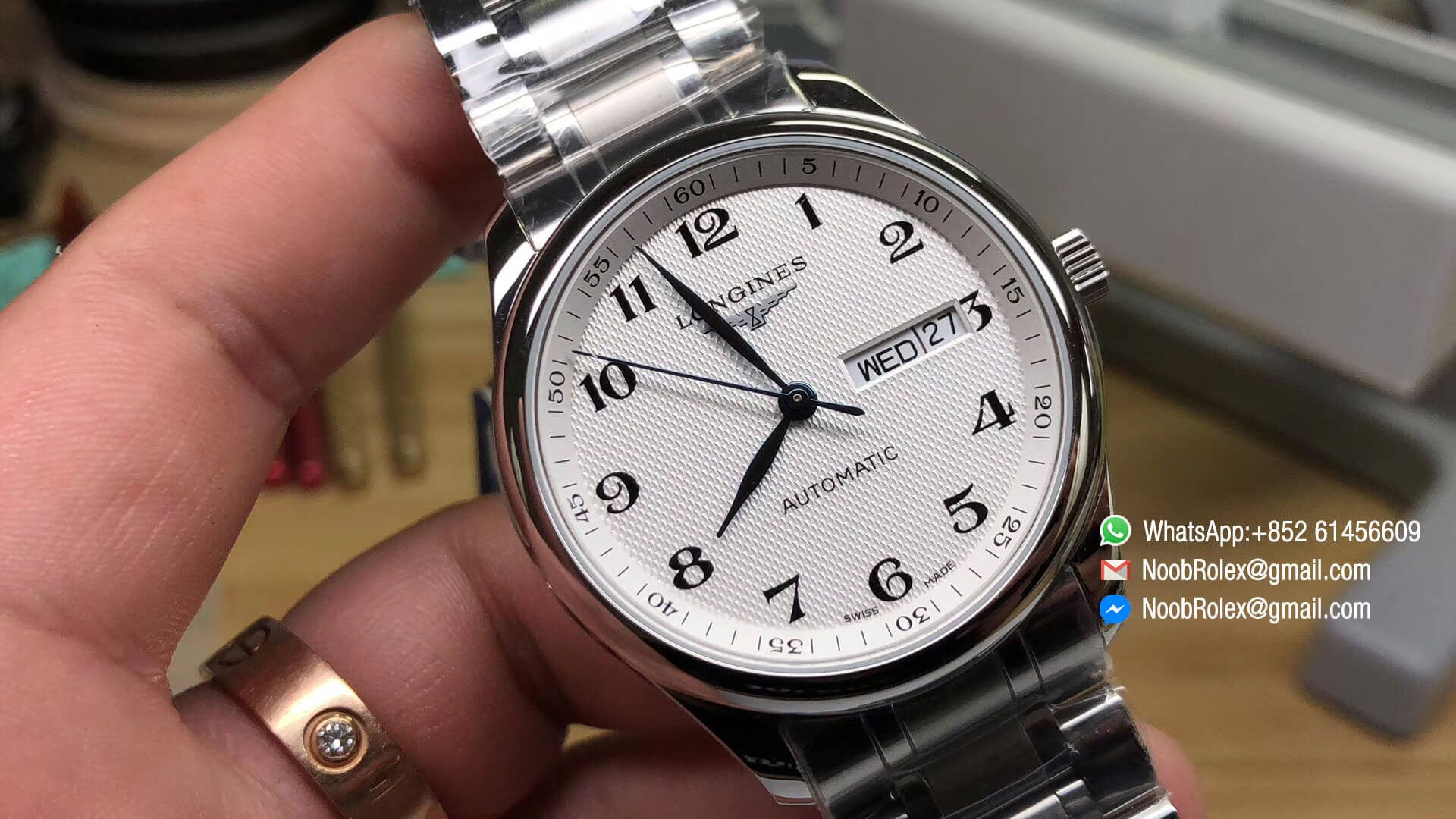 Order Now Longines Master Day Date Steel Case White Textured Dial on Steel Bracelet A2836 JF Best Edition V3 .