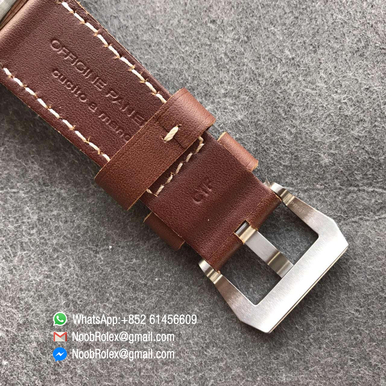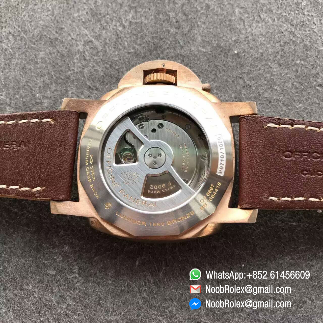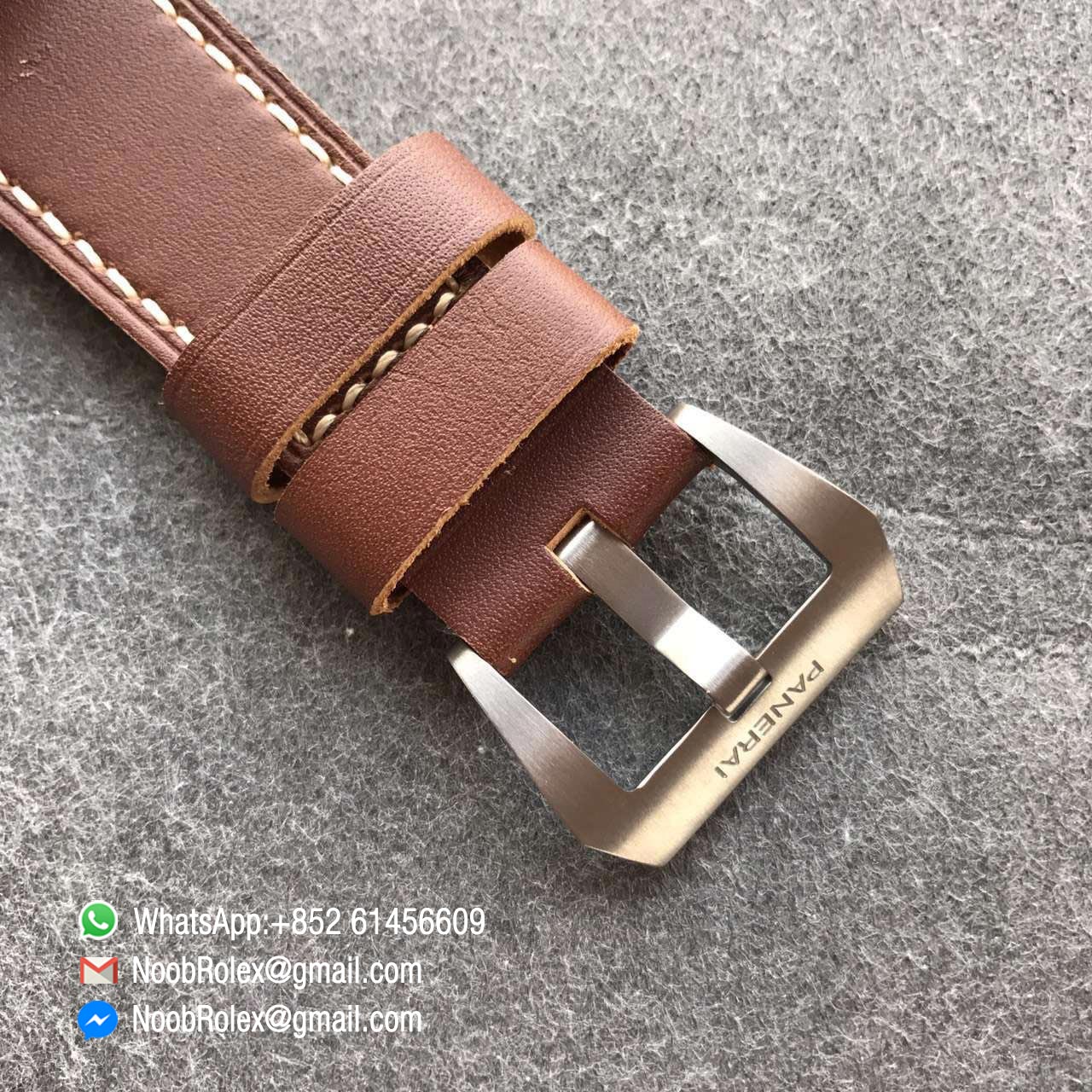 Order Now Luminor Submersible Panerai Watch: PAM00507, it is made by V6F factory, and it is the best quality V2 edition, Real brushed Bronzo Case, Dark Green Dial, and real working Power Reserve, On Brown Leather Strap, Asian P9002 Movement.