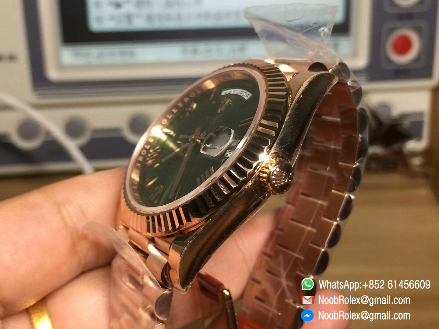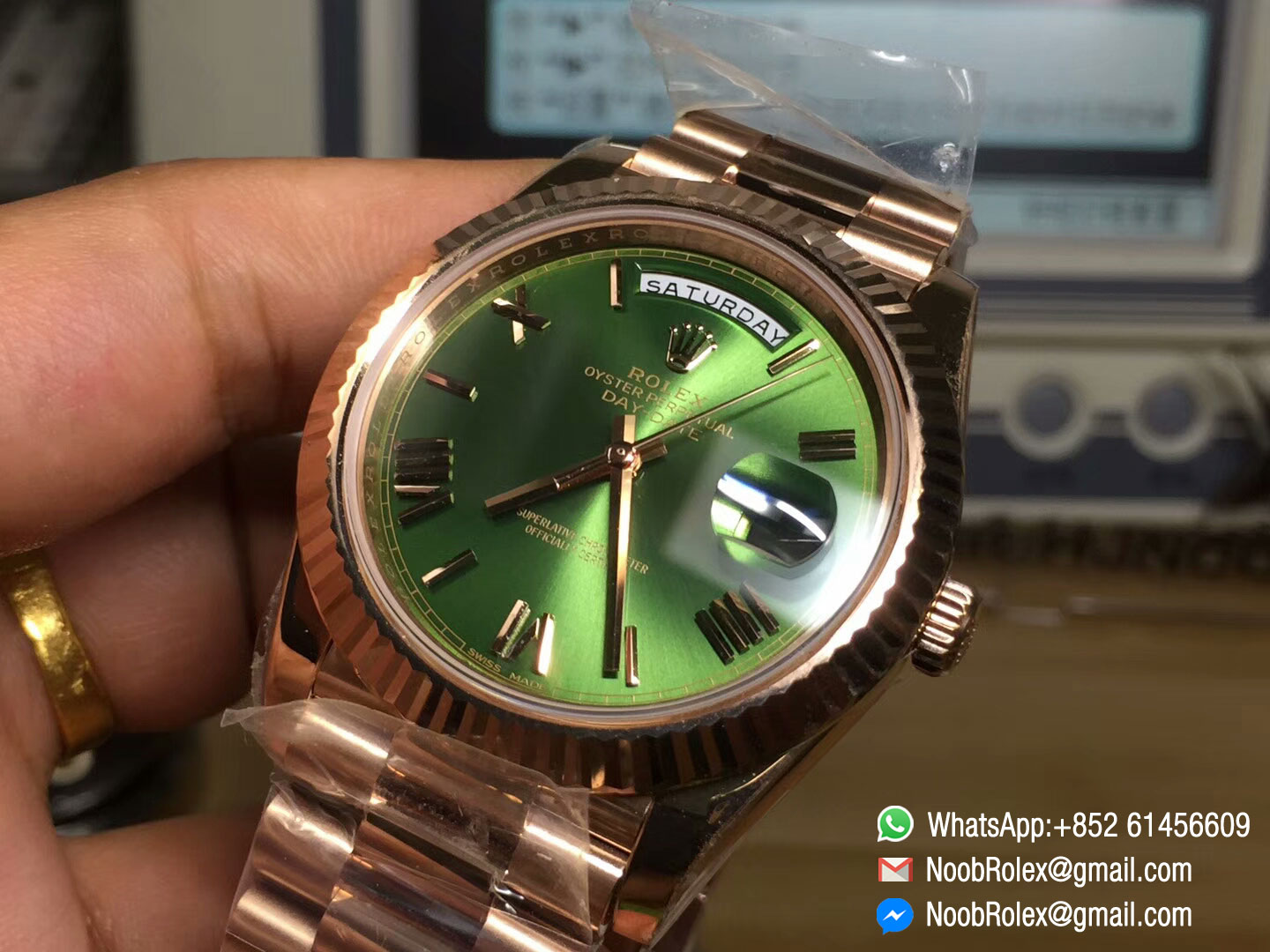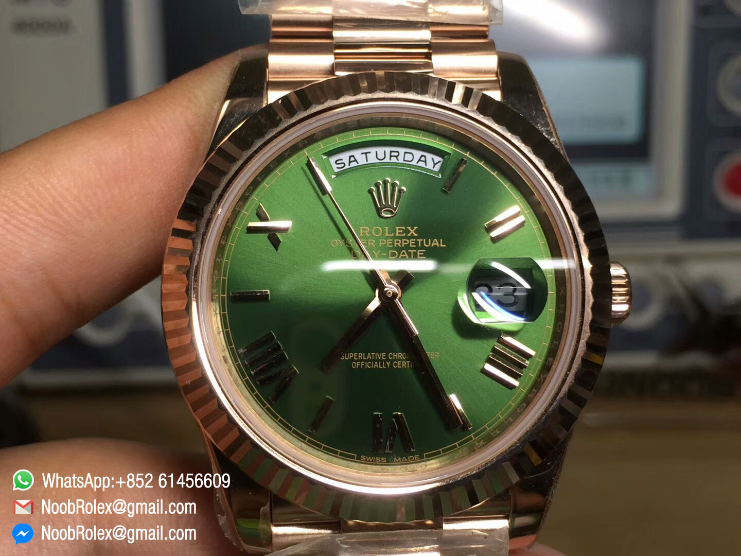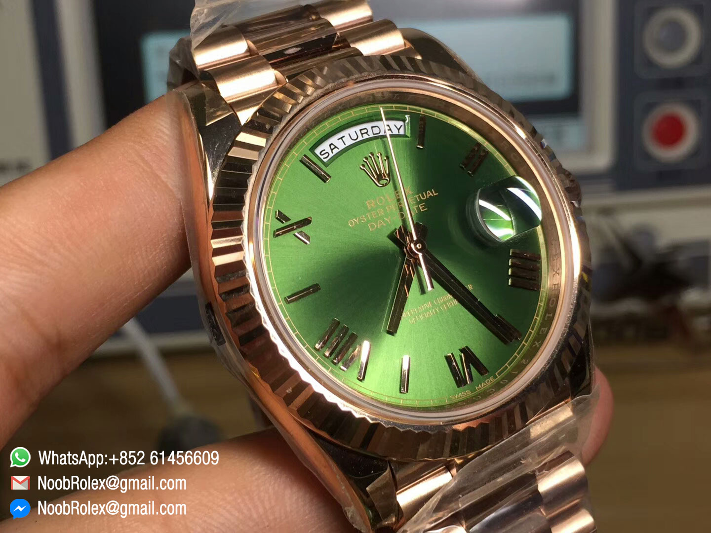 Order Now Day-Date 40 Watch 228235, Rose Gold Case, Green Dial, Roman Markers on Rose Gold President Bracelet, with Asian 3255 Movement, mady by Noob Factory, 1:1 High Quality.