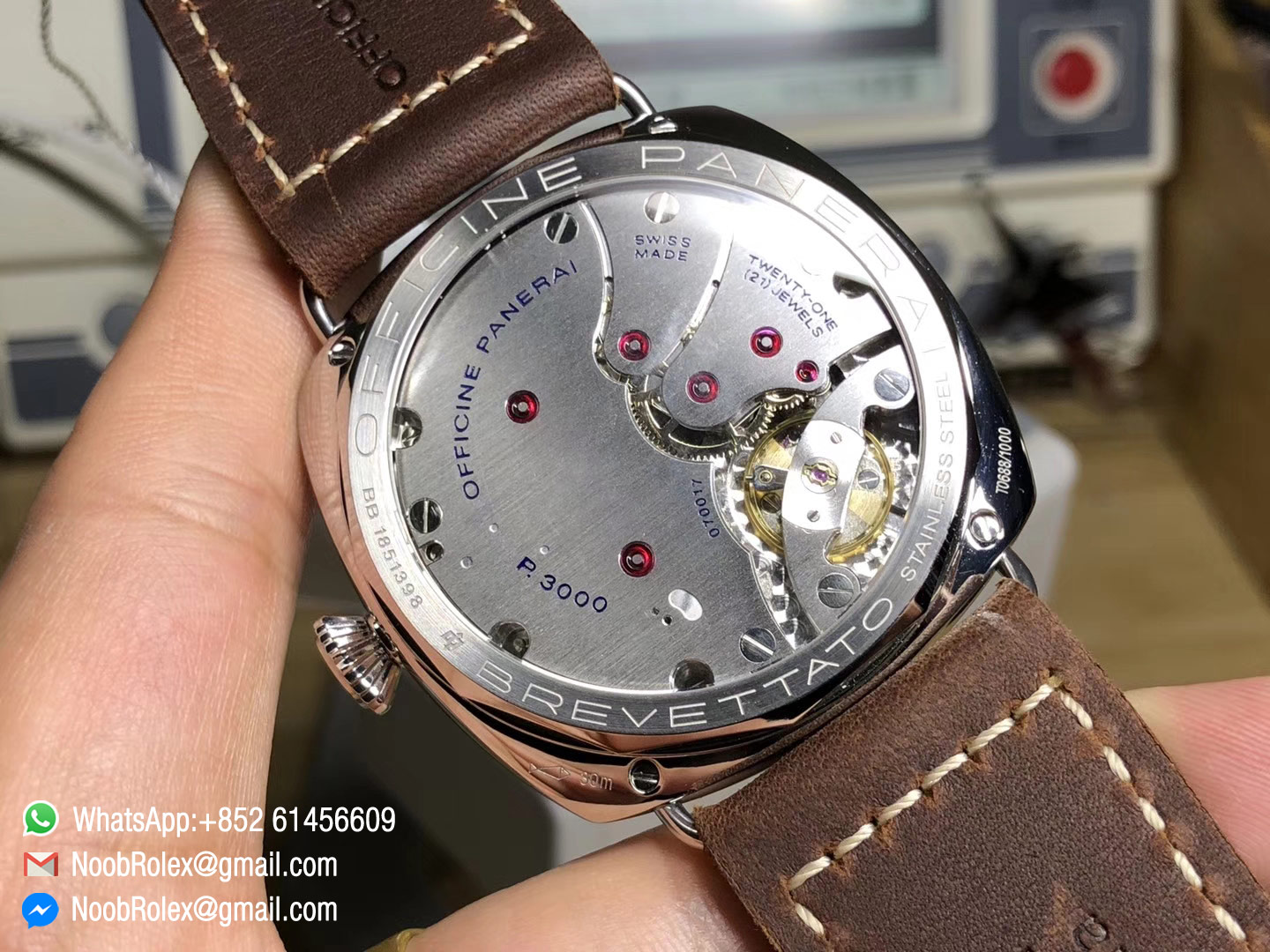 ♣ Movement: Custom designed Asian hmovement to match the genuine Panerai P3000 movement, hand-winding, double barrel, 72 hours+ power reserve, 21600vph;