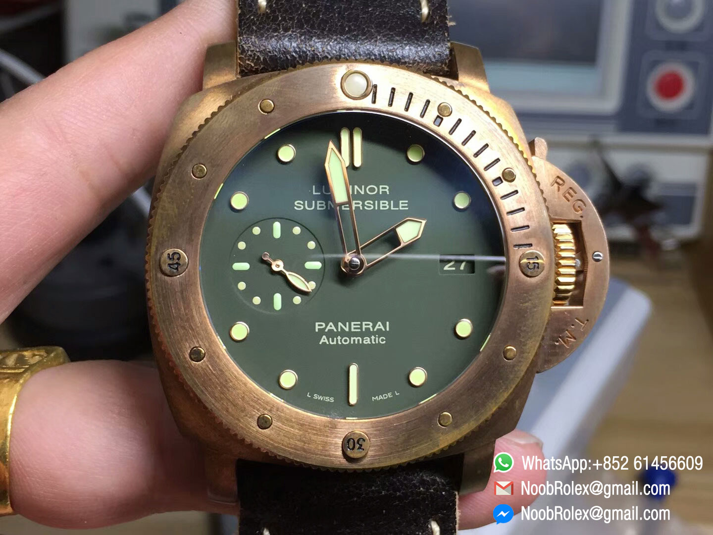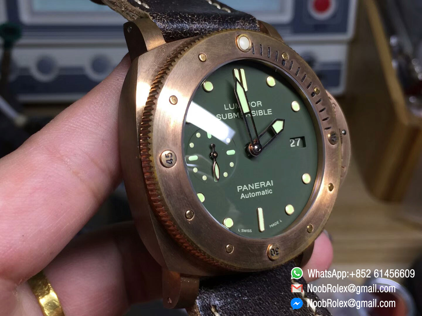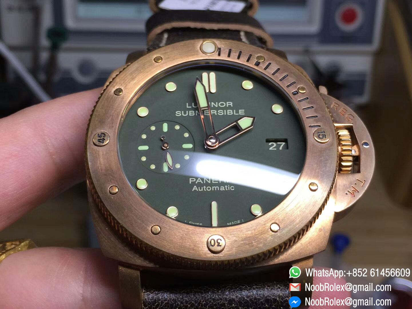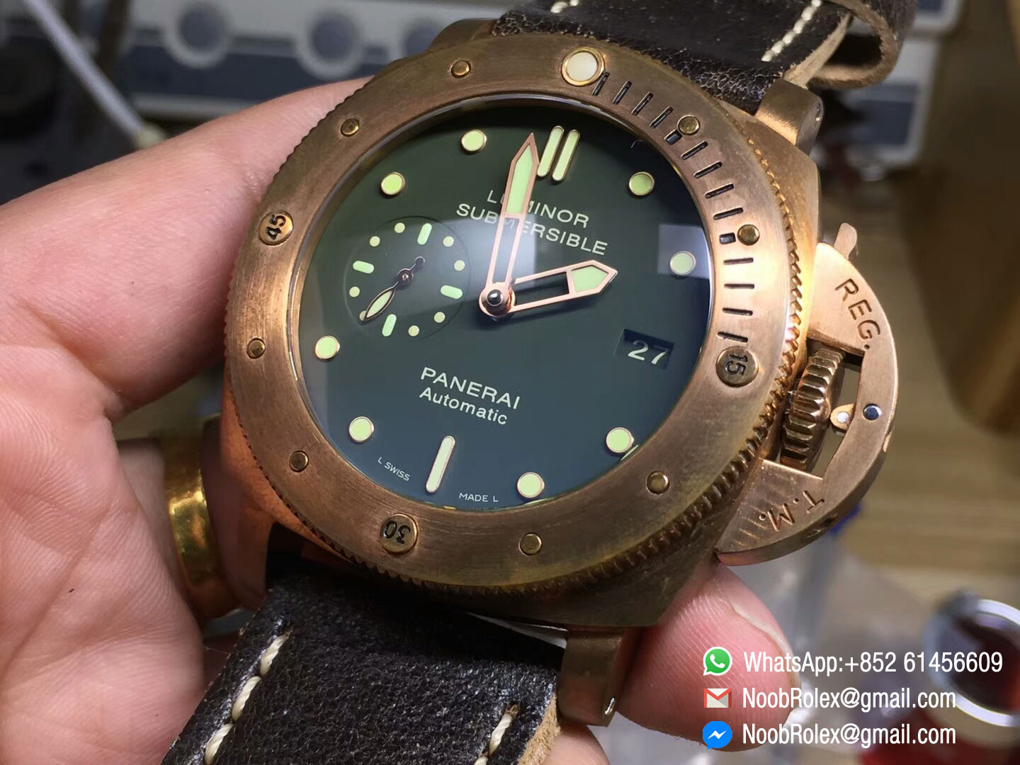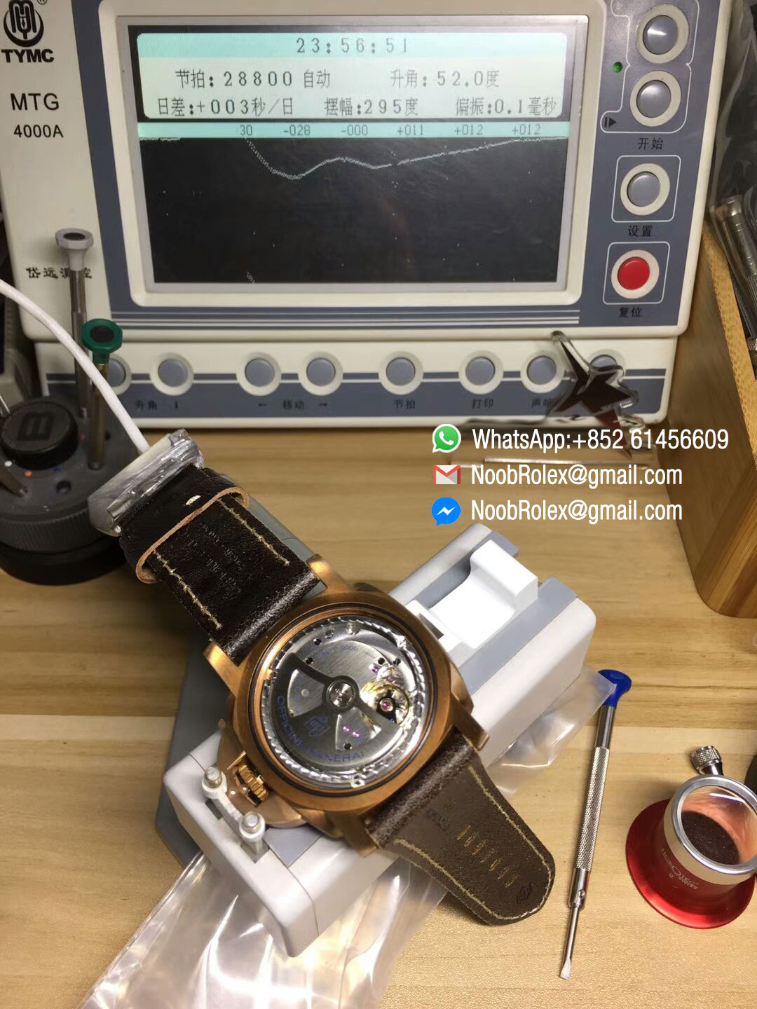 ♣ Movement: Custom designed Asian automatic movement to match the genuine Panerai P.9001 movement at 28800vph, same balance wheel position as genuine P.9000 movement;