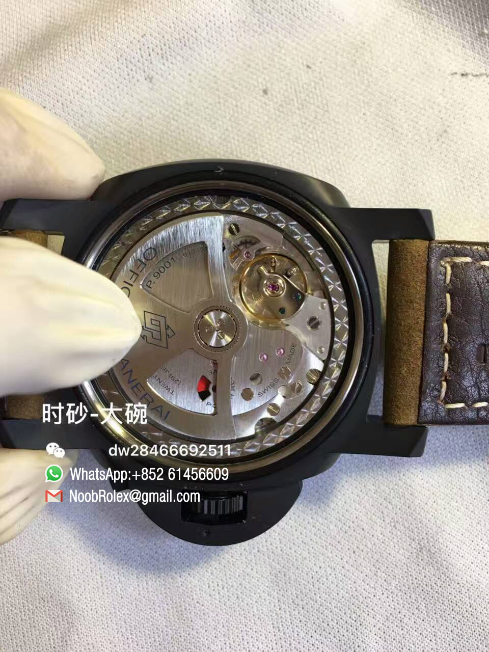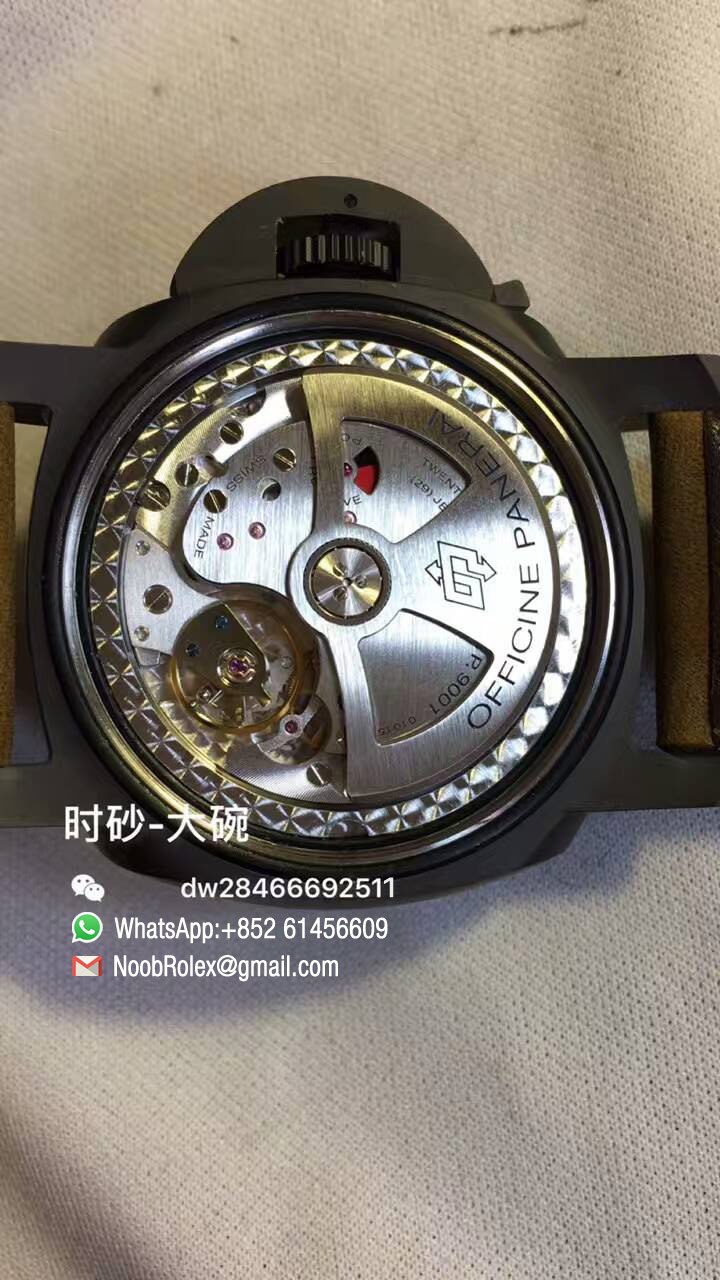 ♣ Movement: Custom designed Asian automatic movement to match the genuine Panerai P.9001 movement at 28800vph, same balance wheel position as genuine P.9001 movement.