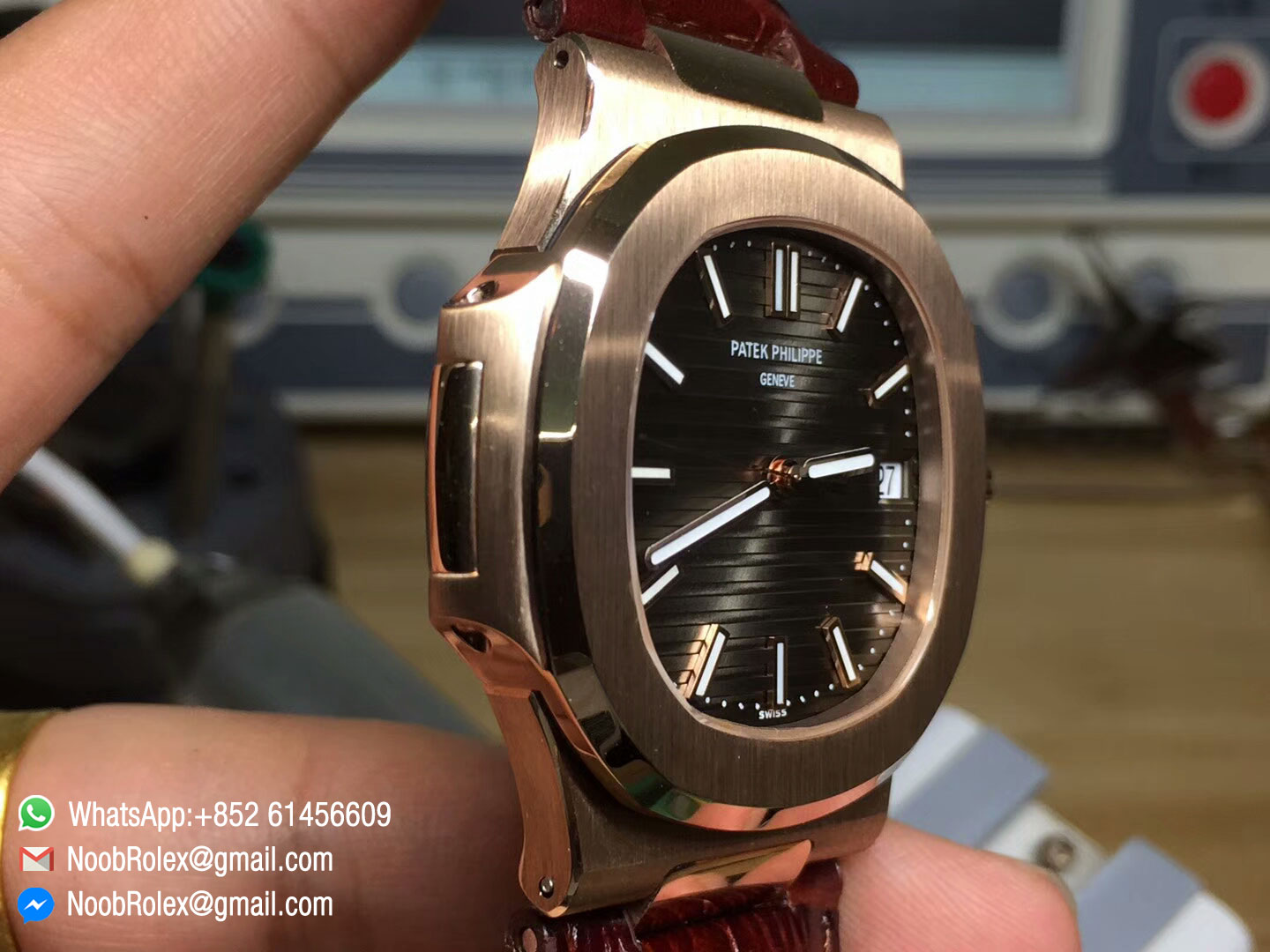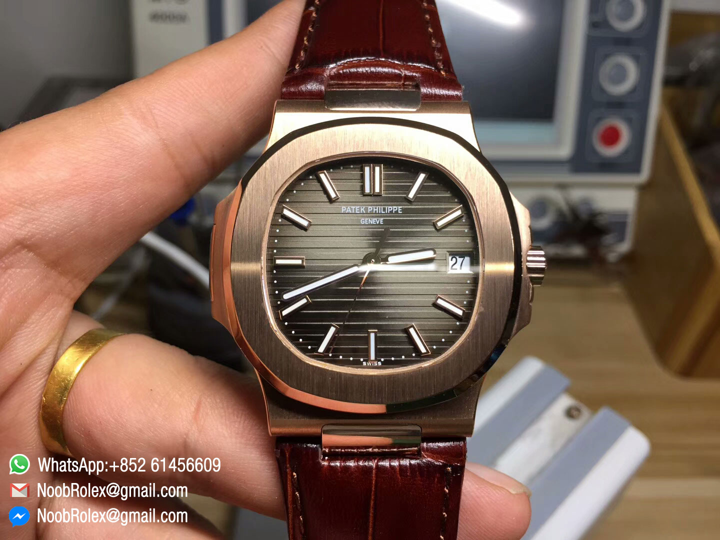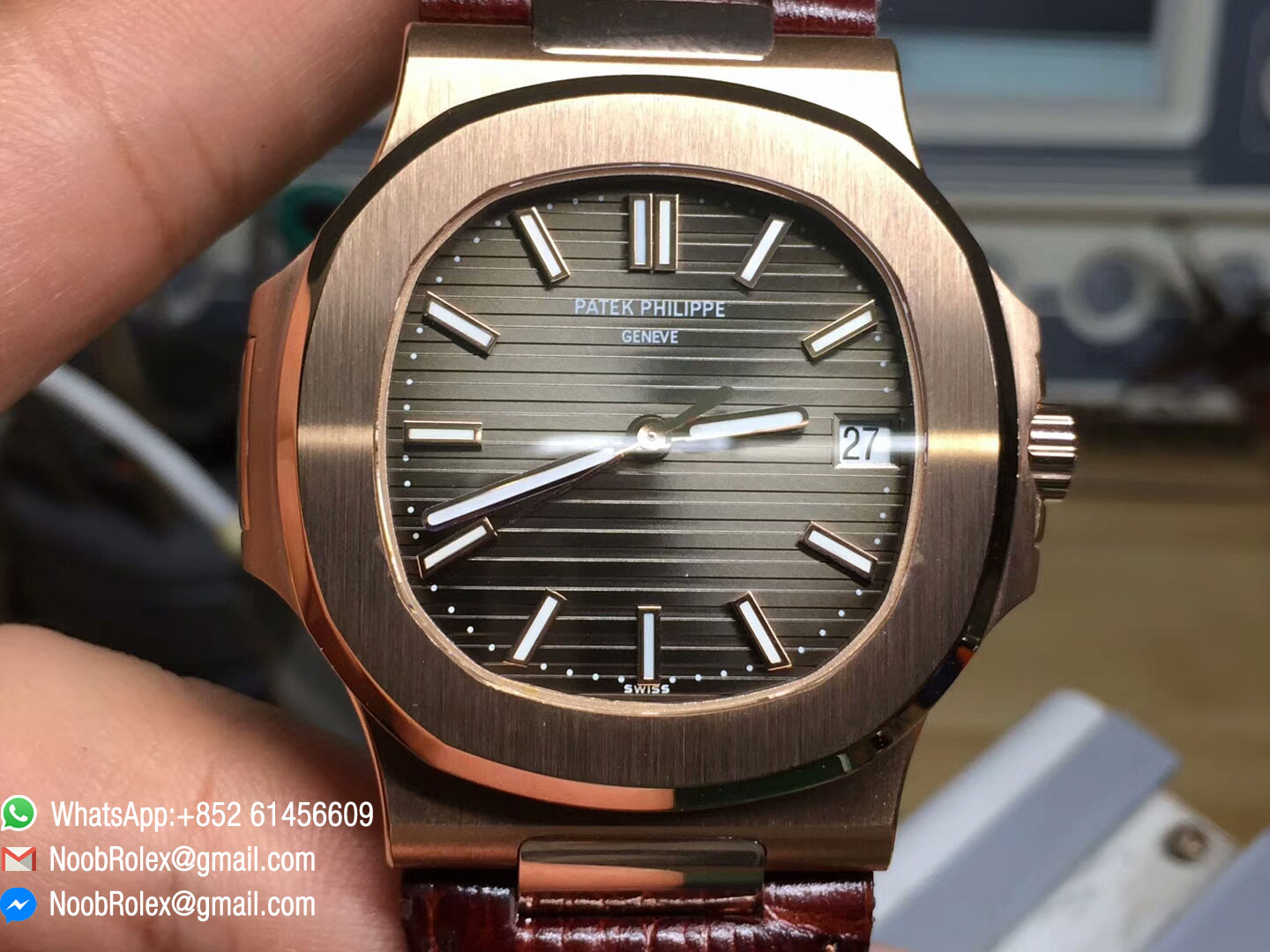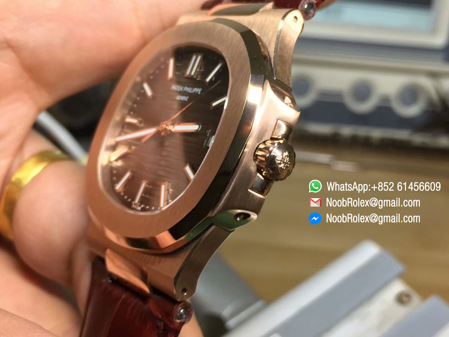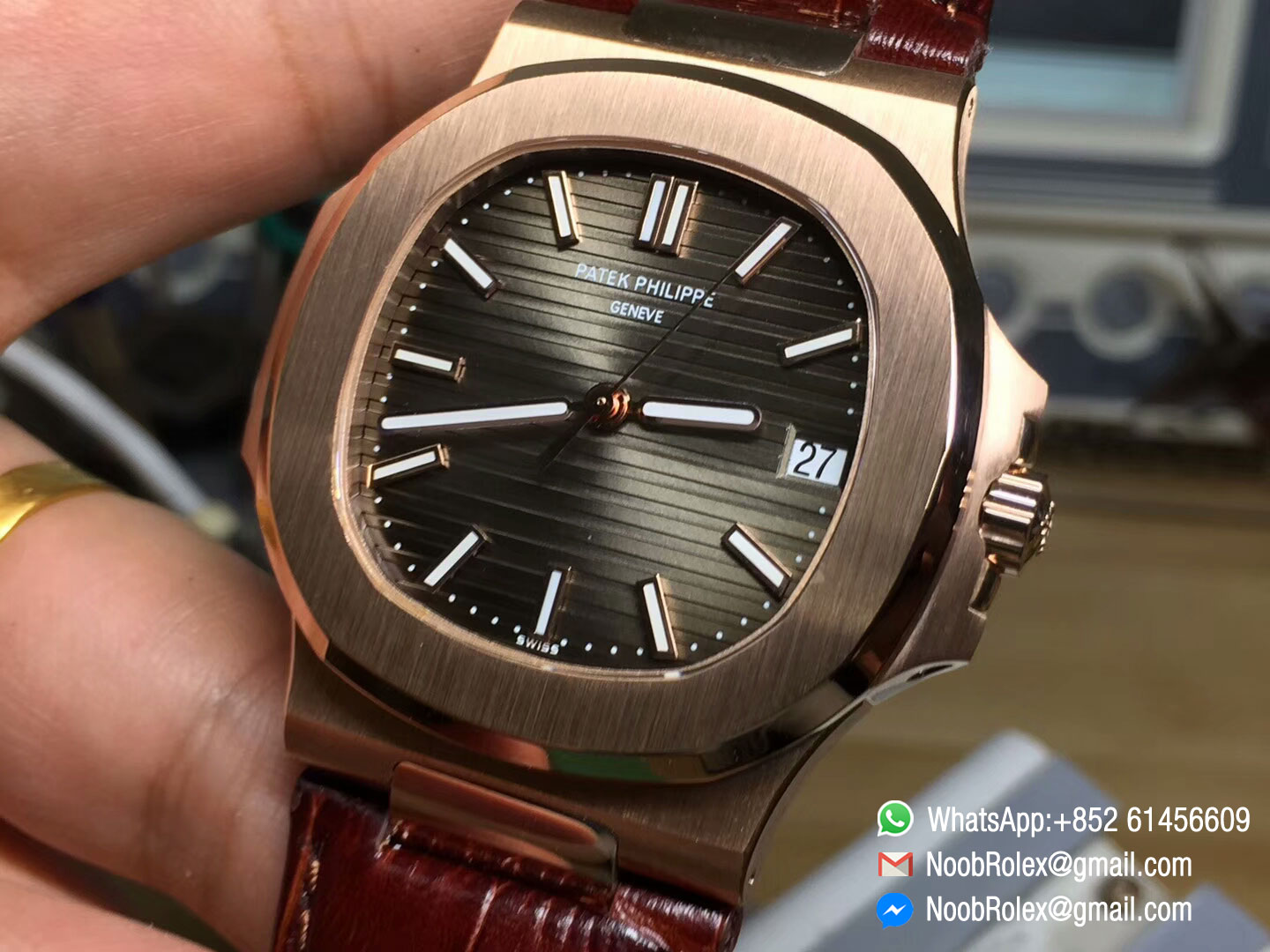 Order Now Patek Philippe Nautilus Jumbo 5711 Rose God 1:1 Best Edition Brown Textured Dial on Leather Strap MIYOTA 9015.