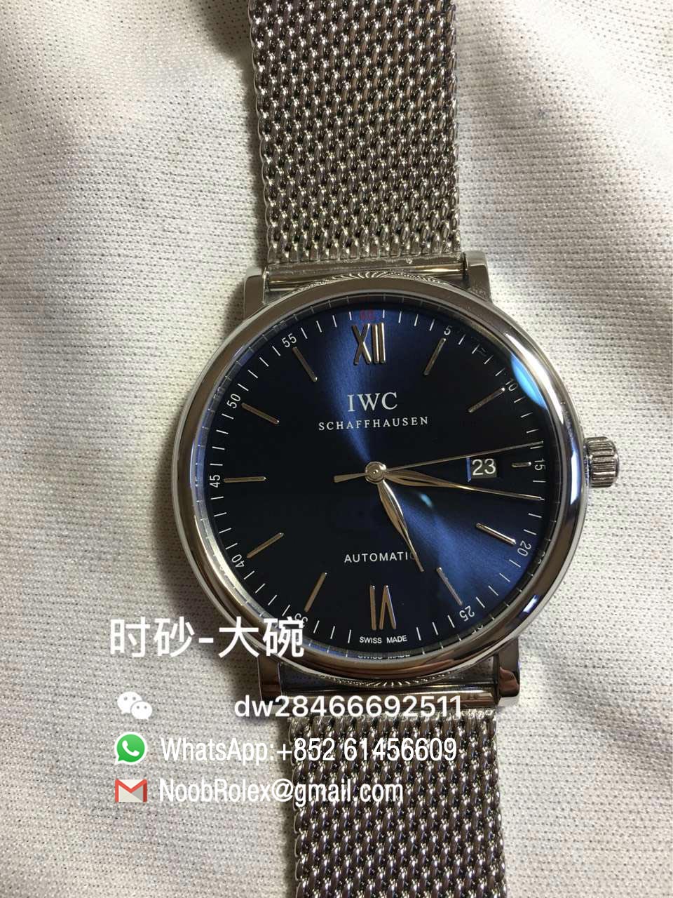 Order Now MK Factory Best Edition — 1:1 Clone Portofino Automatic Watch: IW356506, Stainless Steel Case, and Blue Dial On Mesh Bracelet, with Asian 2892 Movement.
