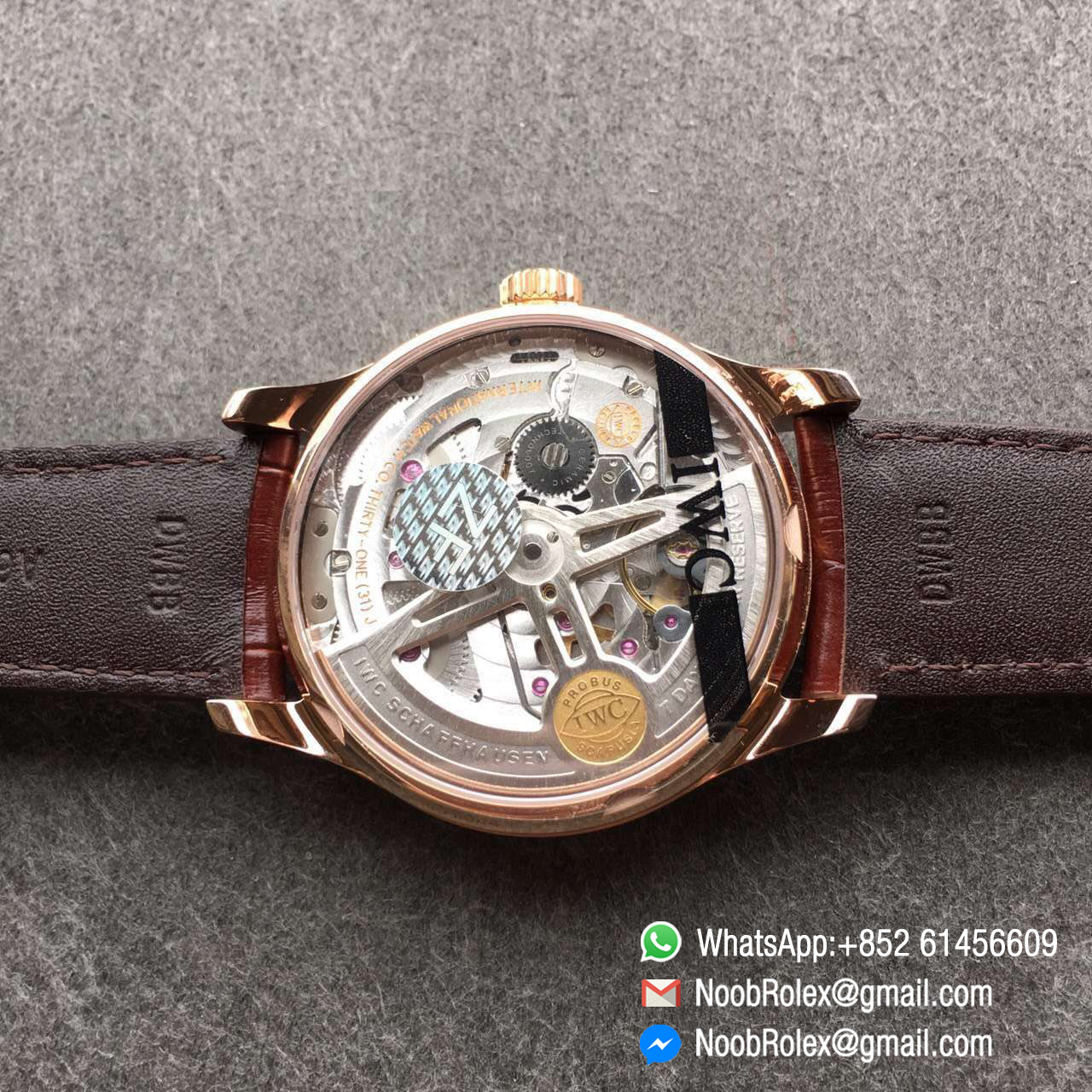 ♣ Movement: New IWC 52010 Movement Clone. Base Movement: Asian 23J automatic movement; Decoration: Platinum plated movement plate and rotor which are made according to the genuine movement, the best looking IWC 52010 Movement Clone at the moment.