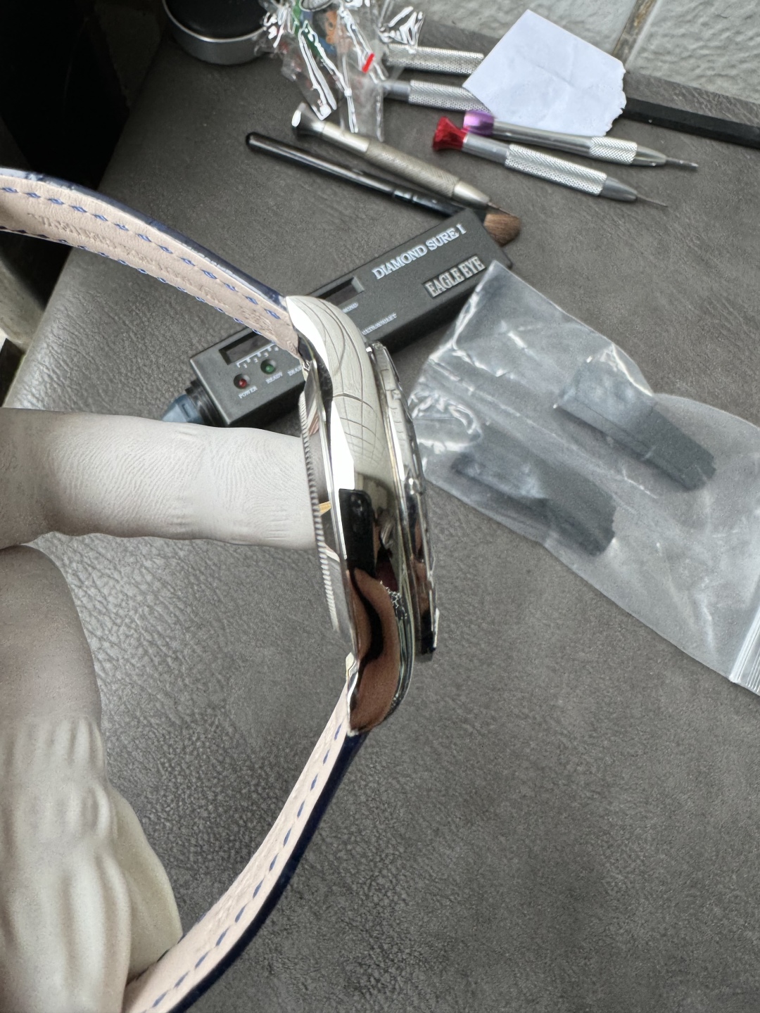 ● Strap: Blue alligator strap;