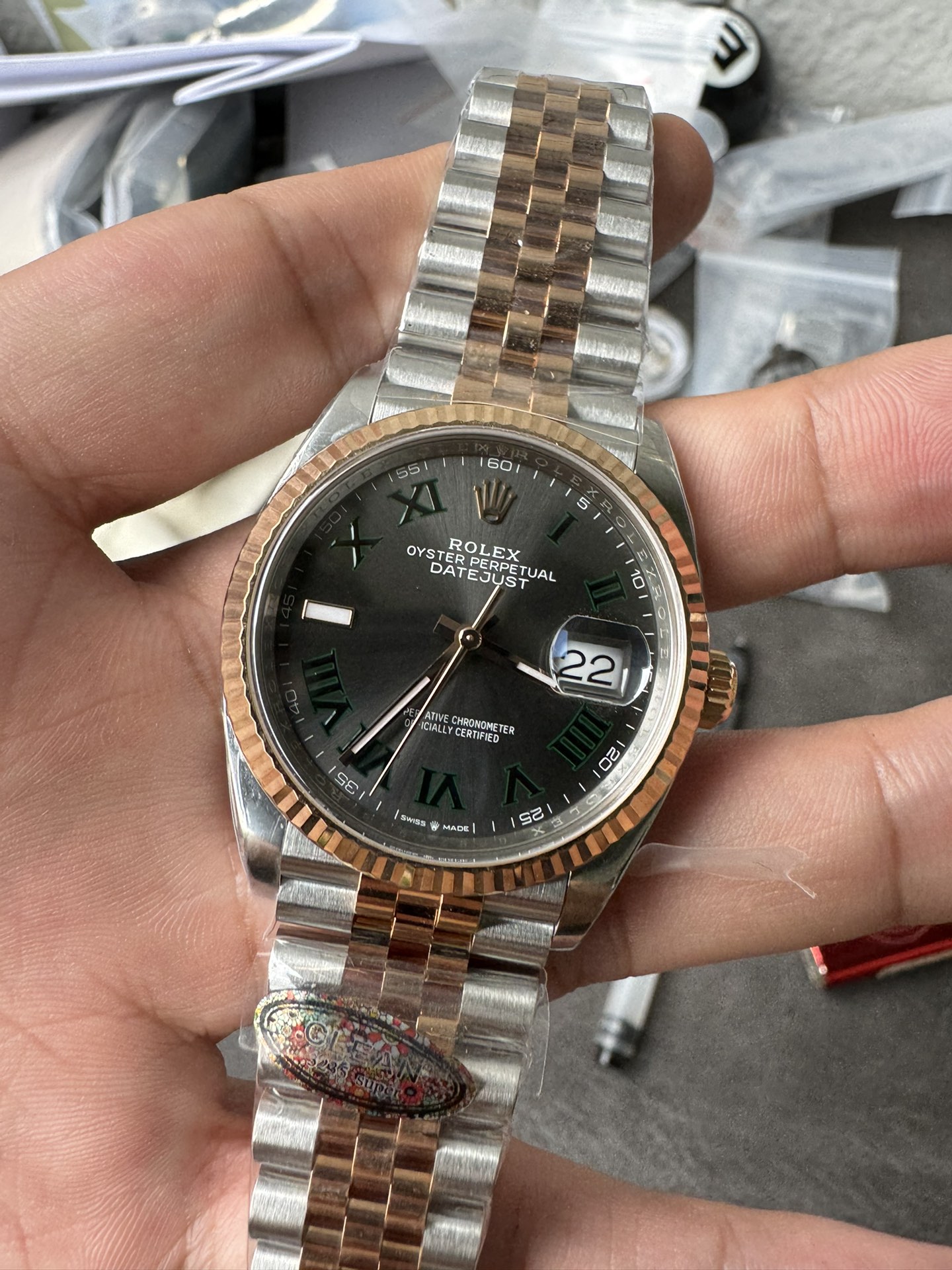 ● Strap: Solid 904L stainless steel bracelet with 18k rose gold plated middle links;