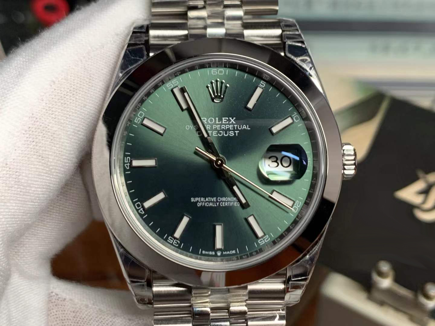● Dial: Mint green dial with Luminous hour markers;