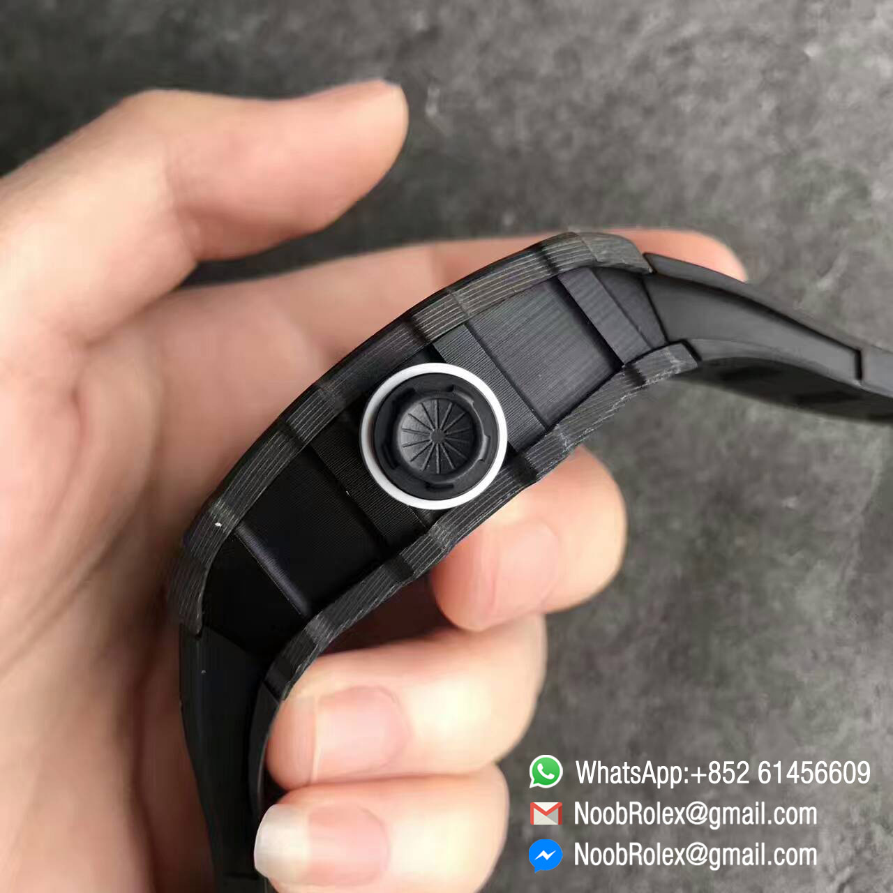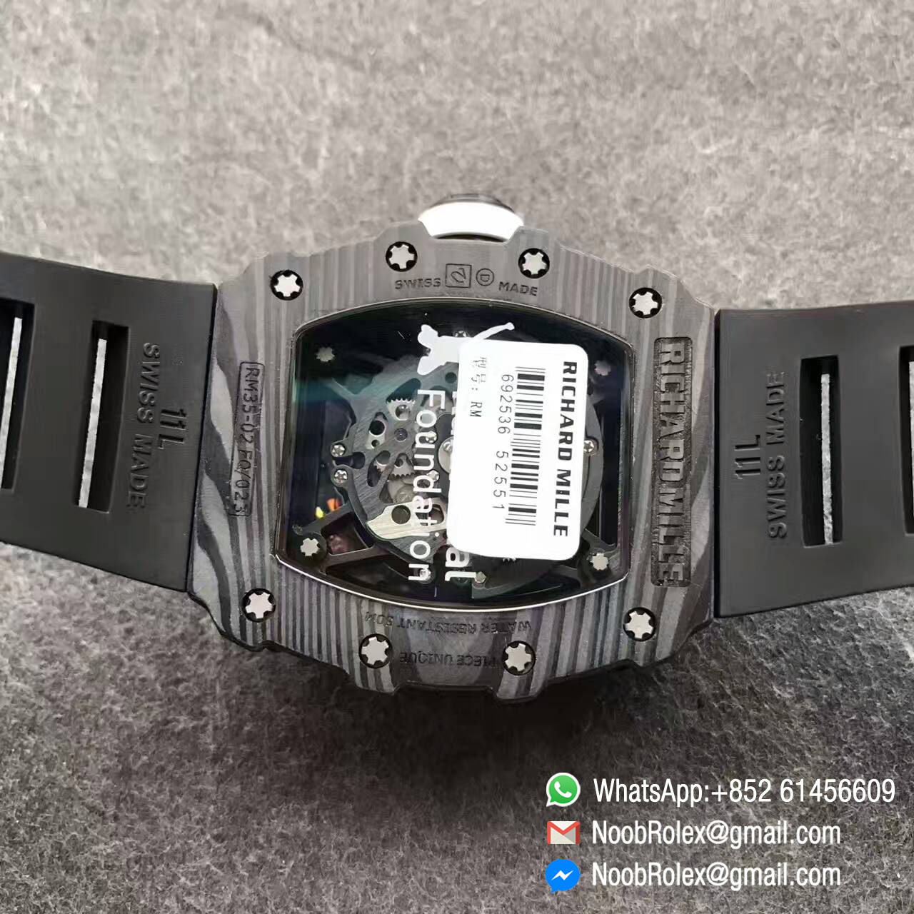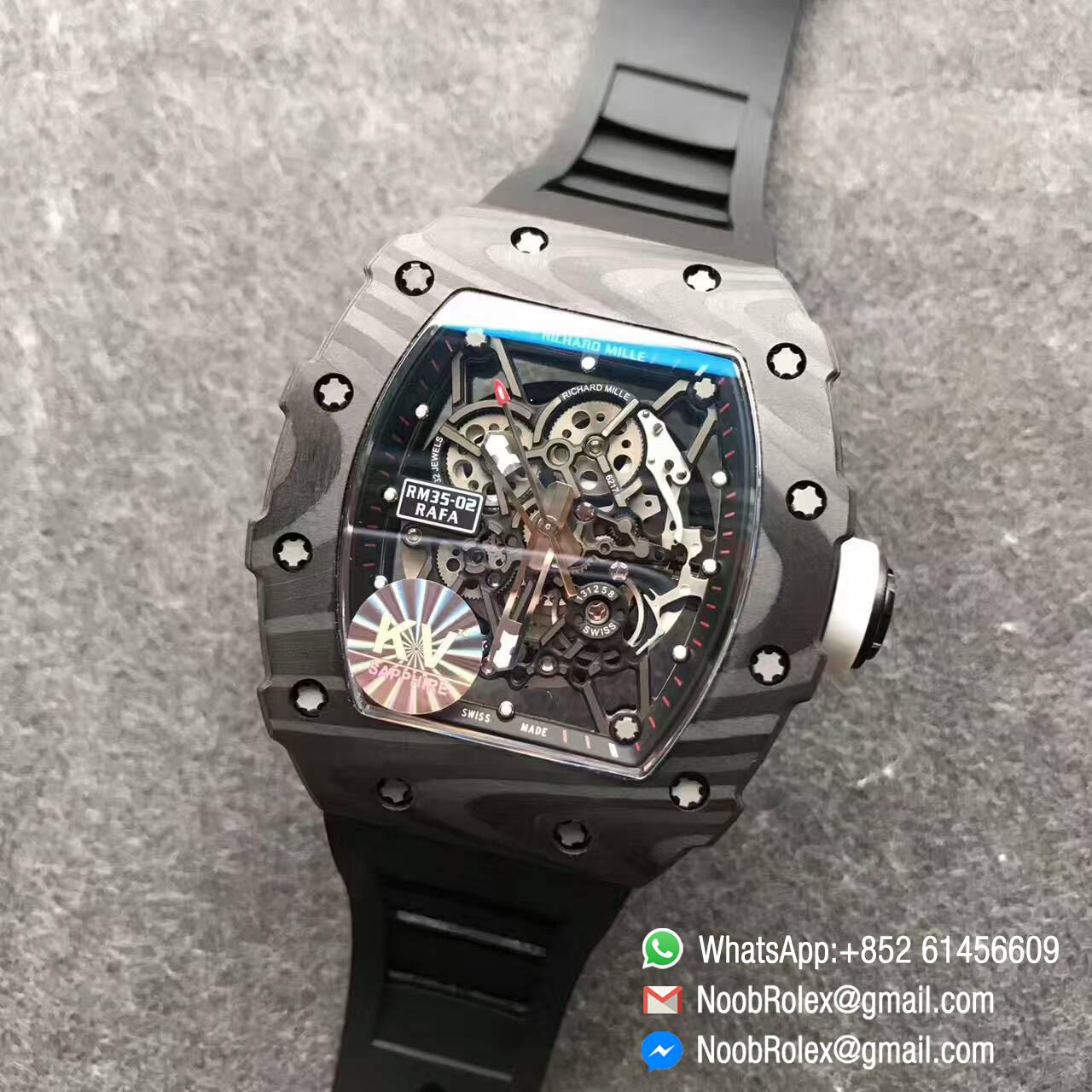 Order Now RM035-02 Rafael Nadal Forge Carbon Titanium Case, Skeleton Dial, and White on Black Rubber Strap, with MIYOTA8215 Movement, made by KV Factory, 2017 Best Edition.