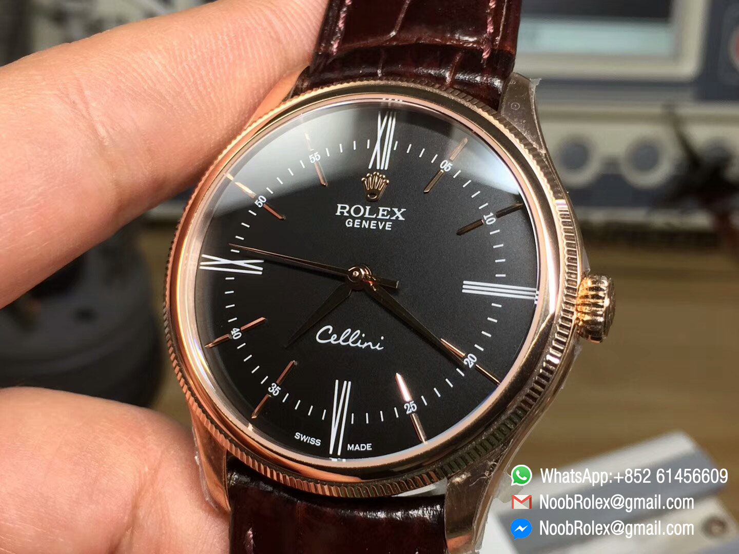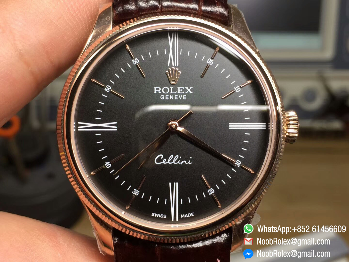 Order Now Cellini Time 50505 Rose Gold Black Dial on Brown Leather Strap A3165 MKF Best Edition V3.
