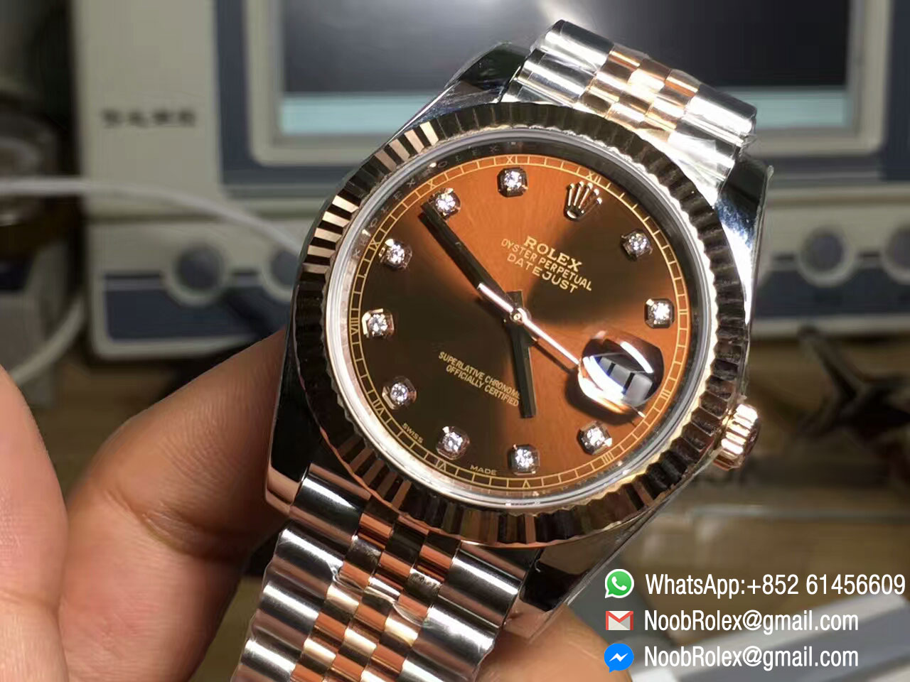 Order Now DateJust 41 126331 Noob 1:1 Best Edition Rose Gold Wrapped Brown Dial Diamonds Markers on SS&RG Jubilee Bracelet A3235.