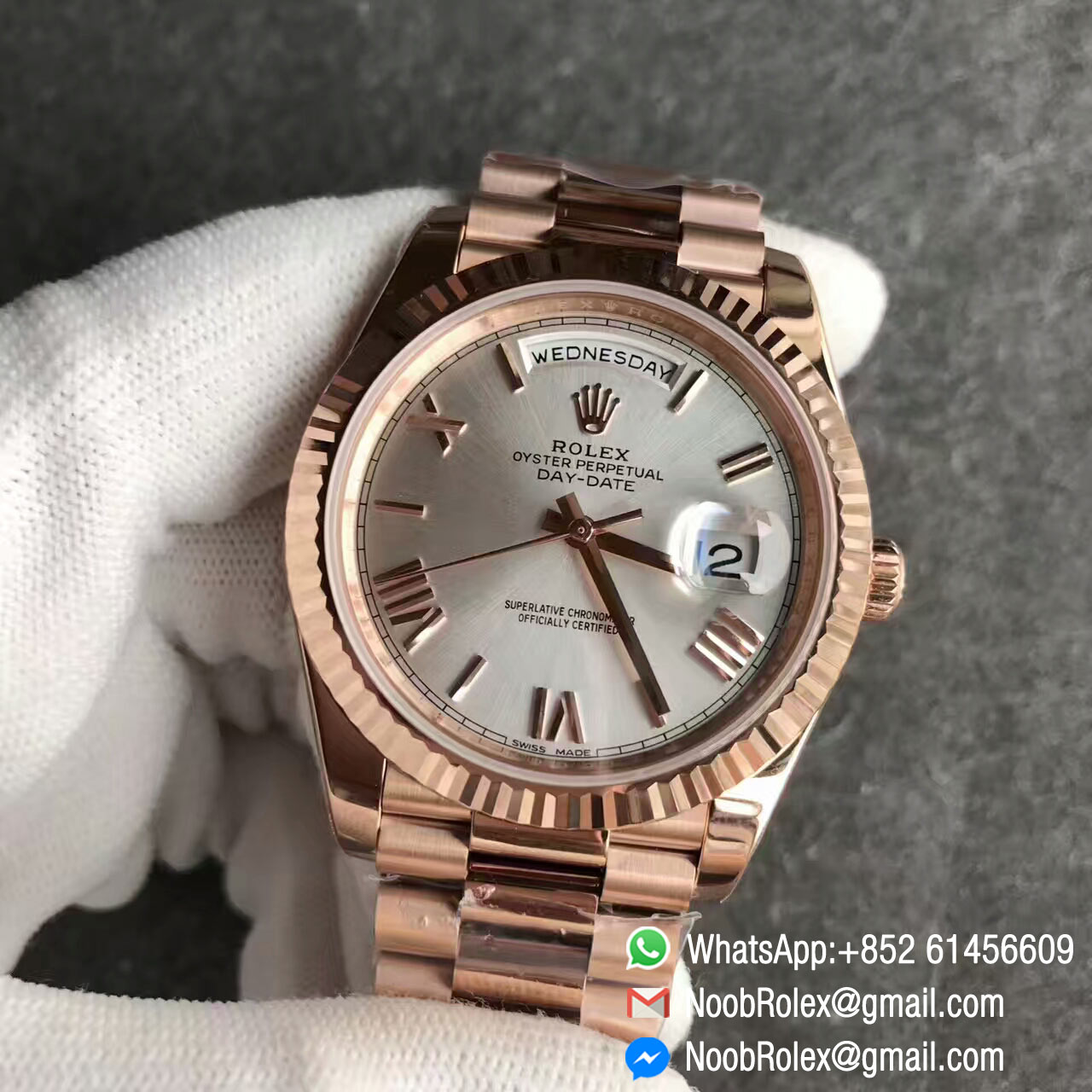 Order Now Day-Date 40 Watch 228235, Rose Gold Case, Silver Dial, Roman Markers, Rose Gold President Bracelet, with Asian 3255 Movement, mady by Noob Factory, 1:1 High Quality.