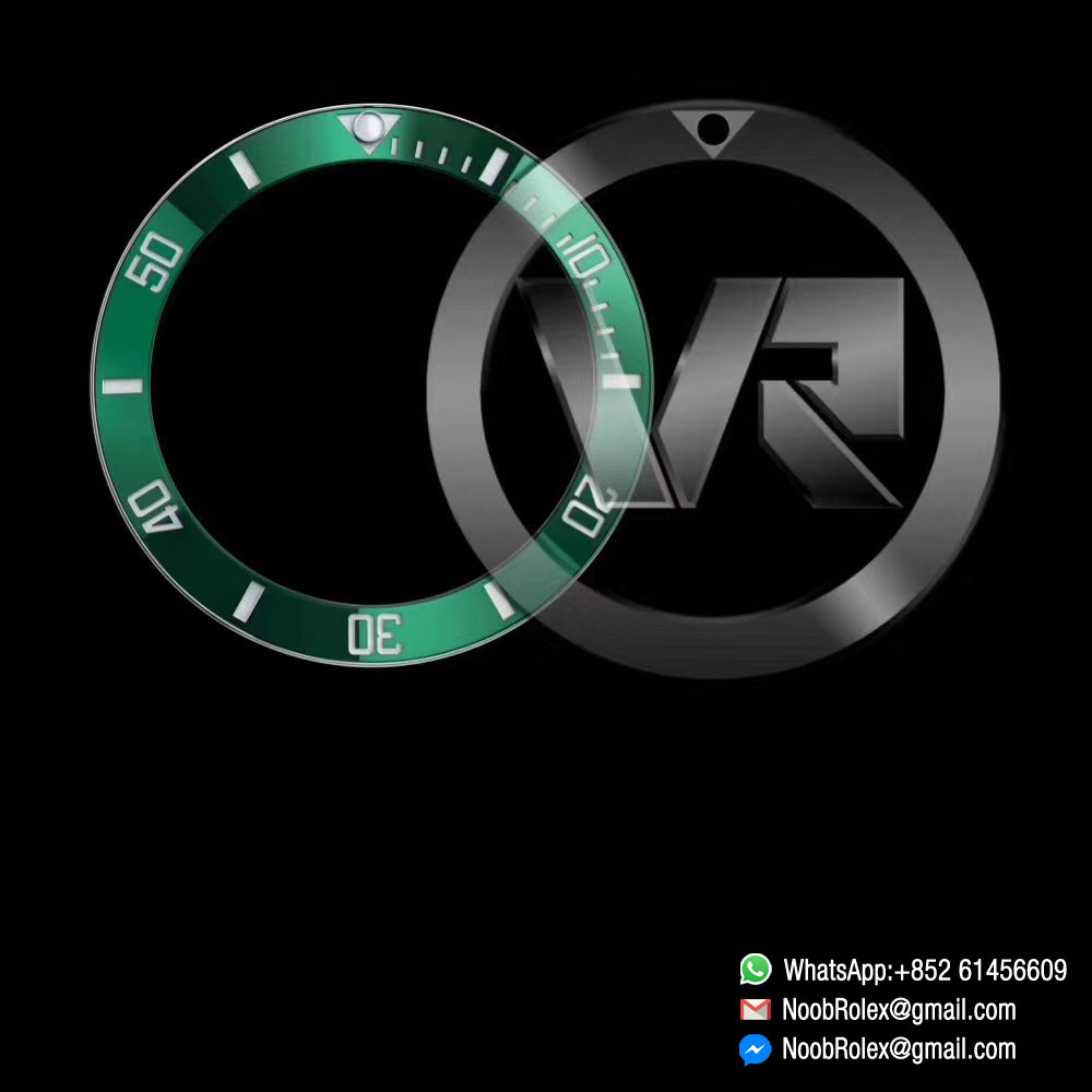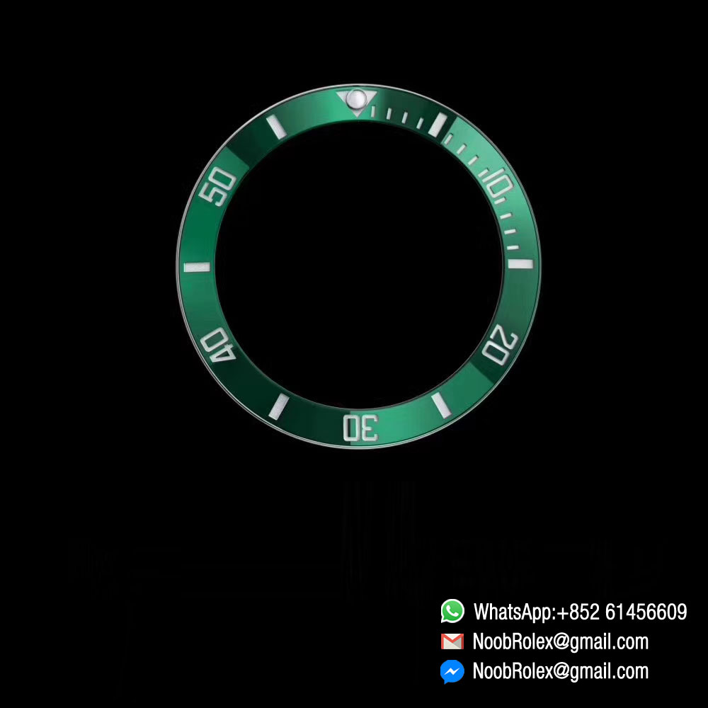 ♣ Bezel: Uni-directional rotating green ceramic bezel with silver bezel markers same as genuine;