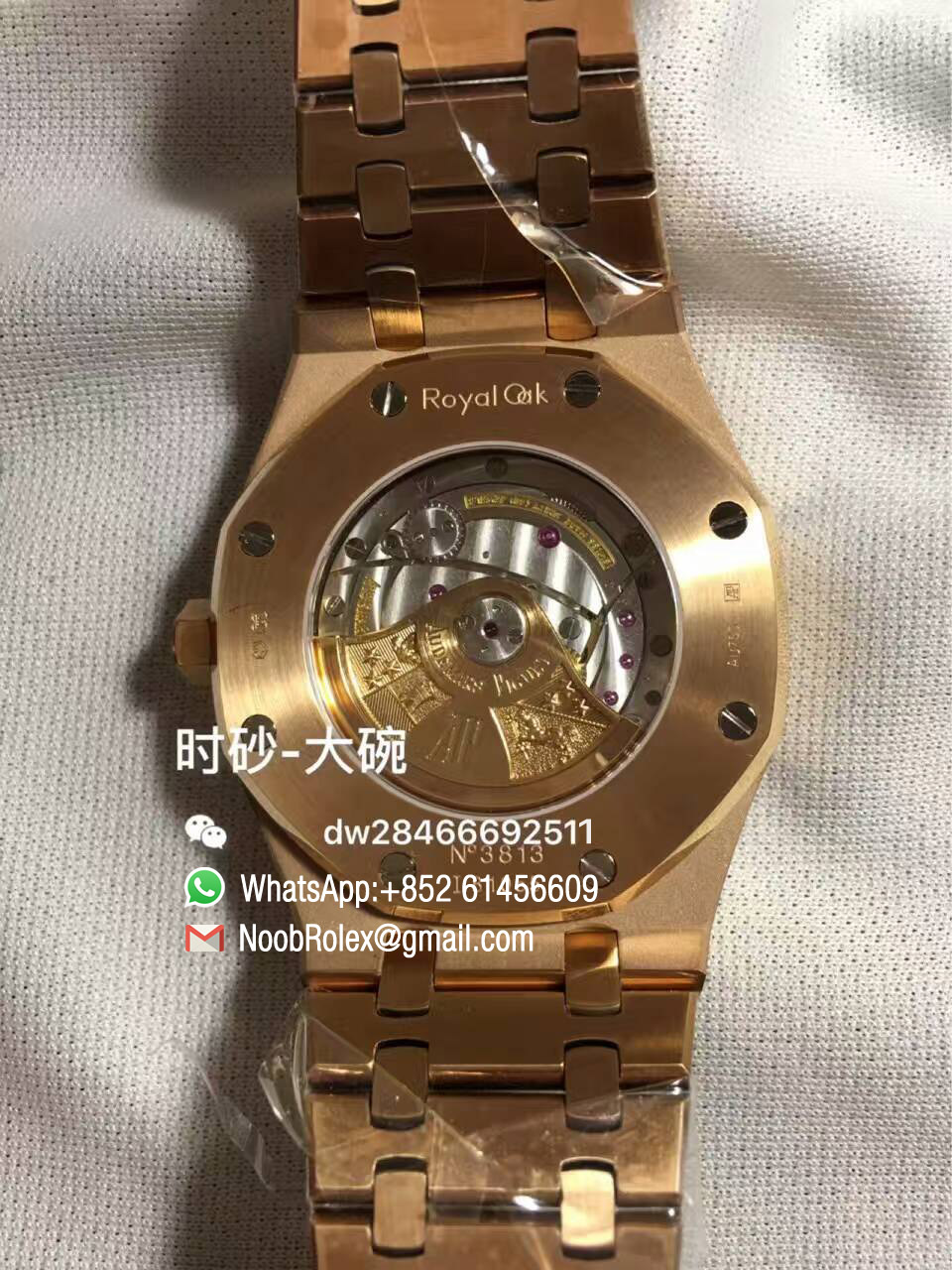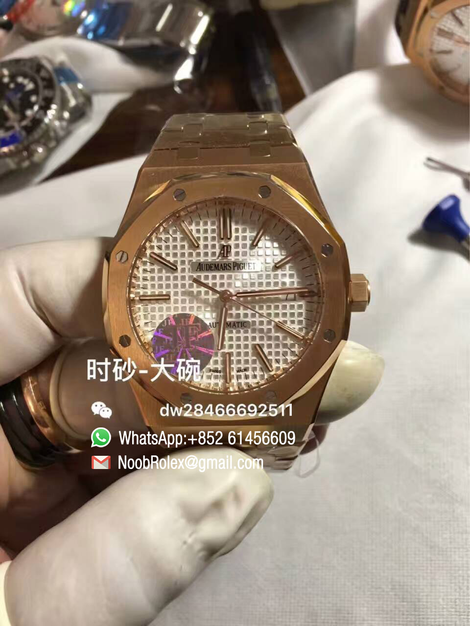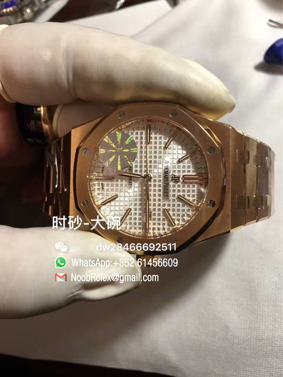 Order Now ROYAL OAK SELFWINDING WATCH,REF:#15400OR.OO.1220OR.02,Selfwinding watch with date display and centre seconds. 18k rose gold plated pink gold case, silvered dial, 18k rose gold plated 316L steel bracelet, JF made it, Top quality.