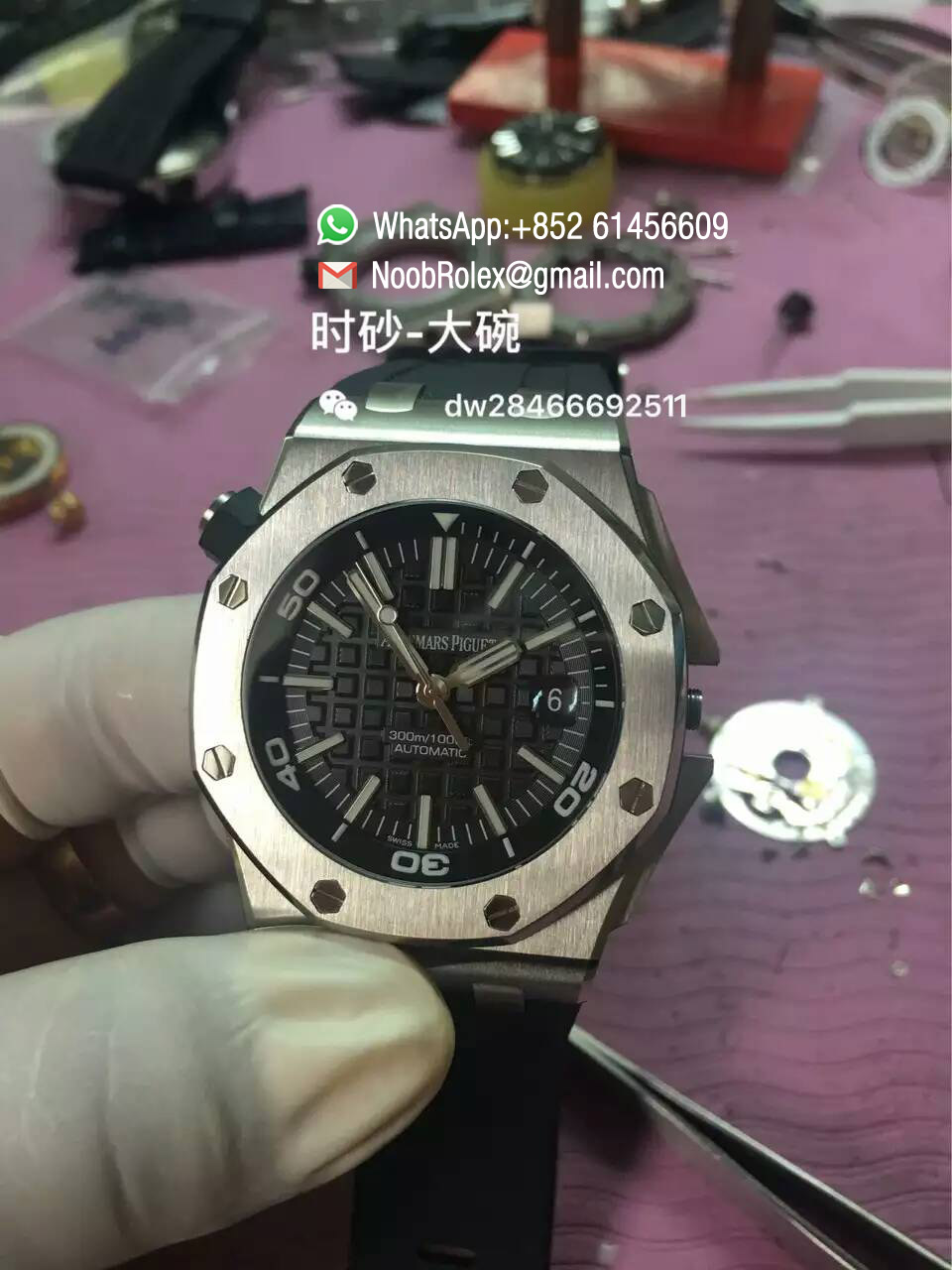 Order Now AP Royal Oak Offshore Diver Watch: 15703ST / 15703. 42mm, JF V8 Best 1:1 Edition, Rubber Strap, Asain 3120 Movement.