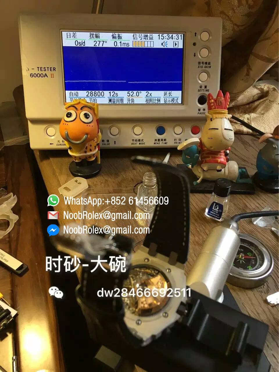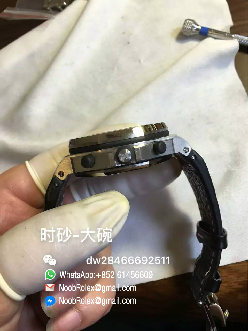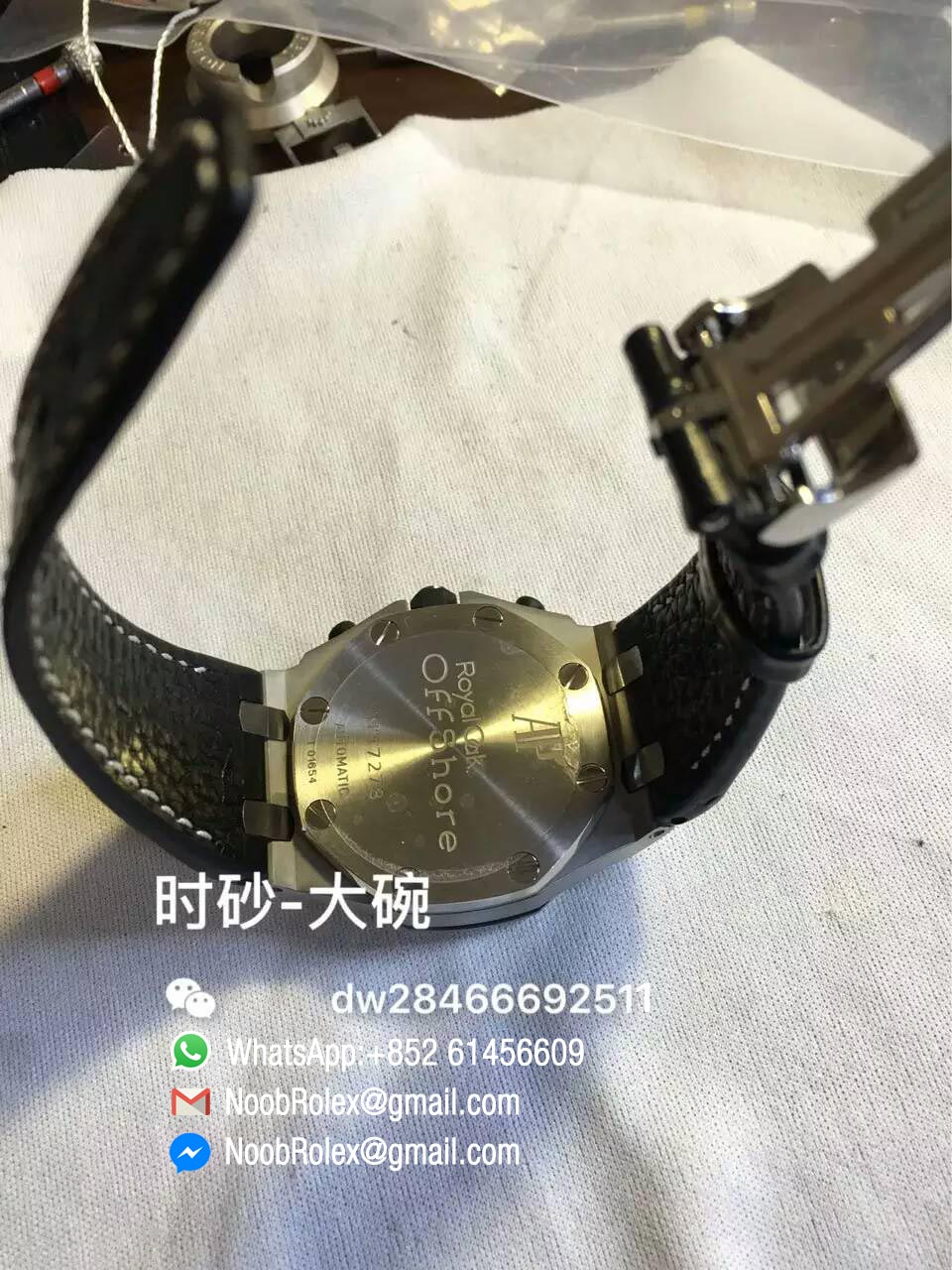Order Now Selfwinding chronograph with date display and small seconds at 12 o’clock. Stainless steel case, silvered dial, black strap. Royal Oak Offshore Watch 26170ST, 42mm, JF Best Edition, Selfwinding, chronograph, Silver Themes on Black Leather Strap, Asian 7750 Movement.