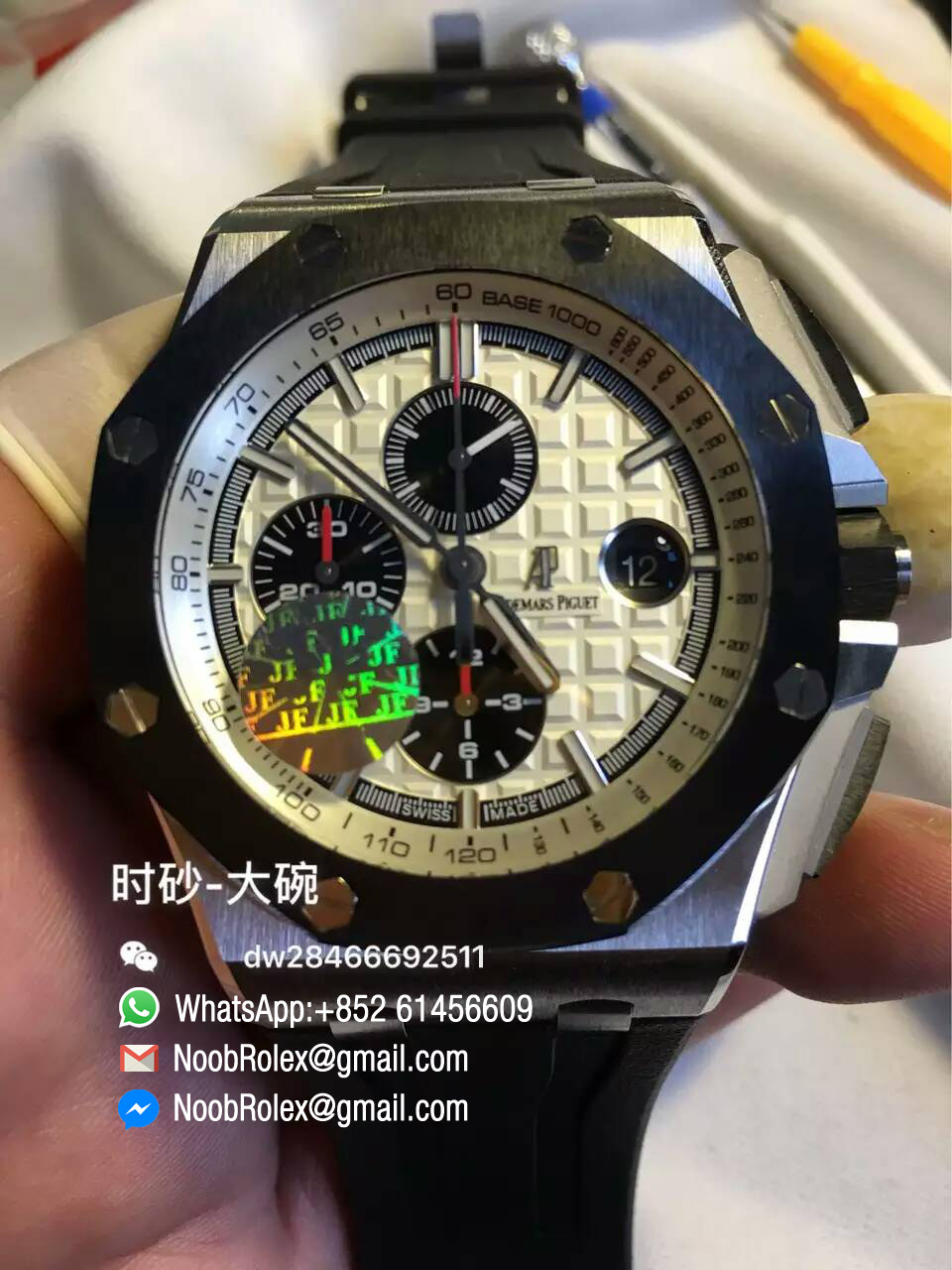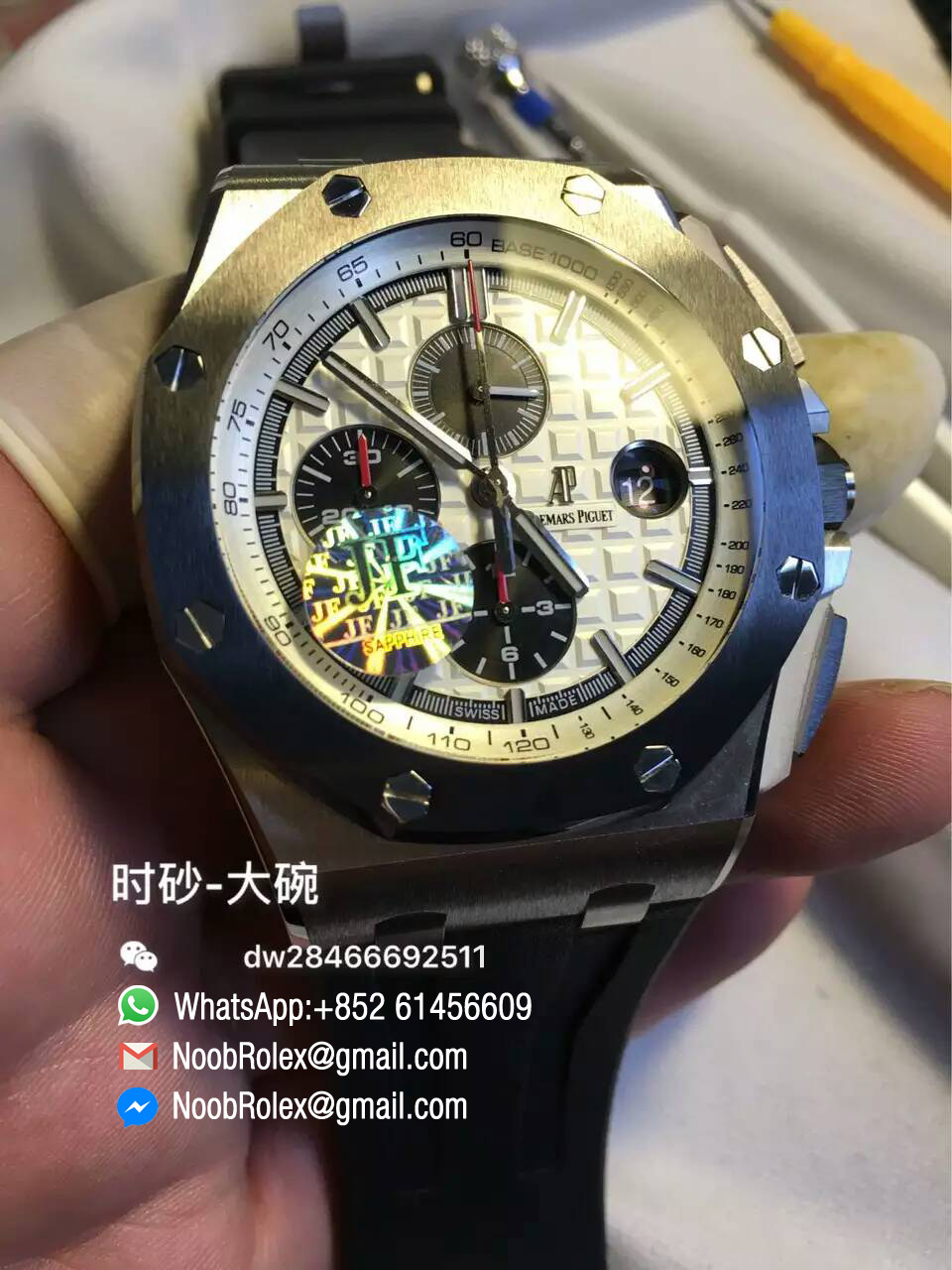 ※※ Movement: Base Movement: Asian 7750 automatic chronograph movement at 28800vph; ※※ Decoration: Platinum plated movement plate and rotor which are made according to