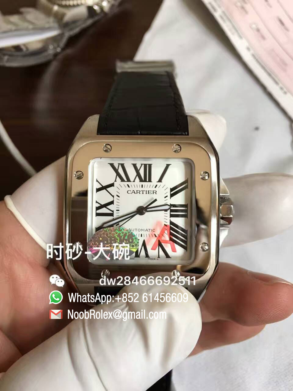 Order Now The Santos watch was created in 1904, sealing his friendship with the aviator Alberto Santos Dumont. The famous aviator’s wish was granted: he could check the time while flying. The dial’s rounded angles and exposed screws made this an iconic timepiece. Cartier marked the