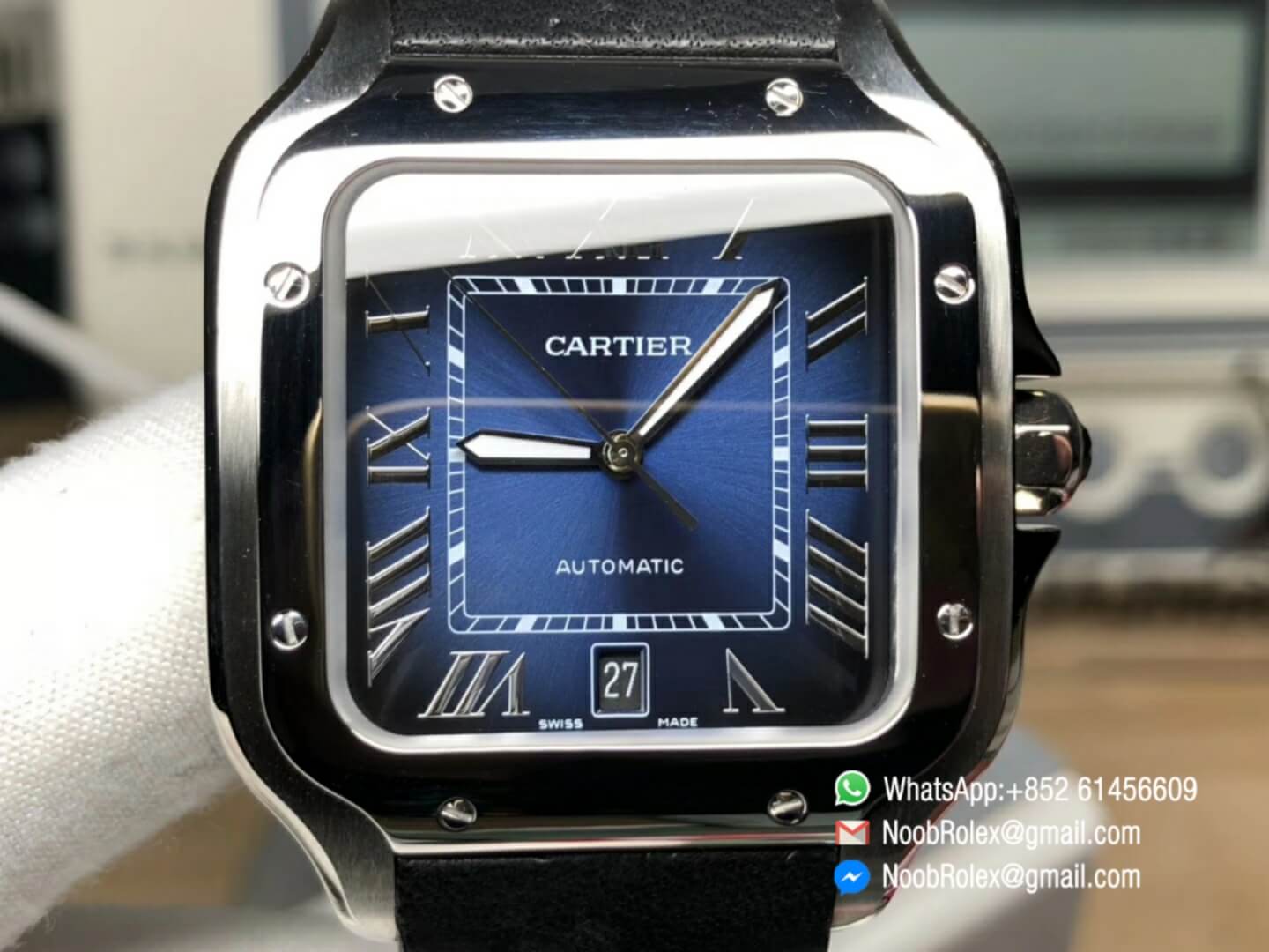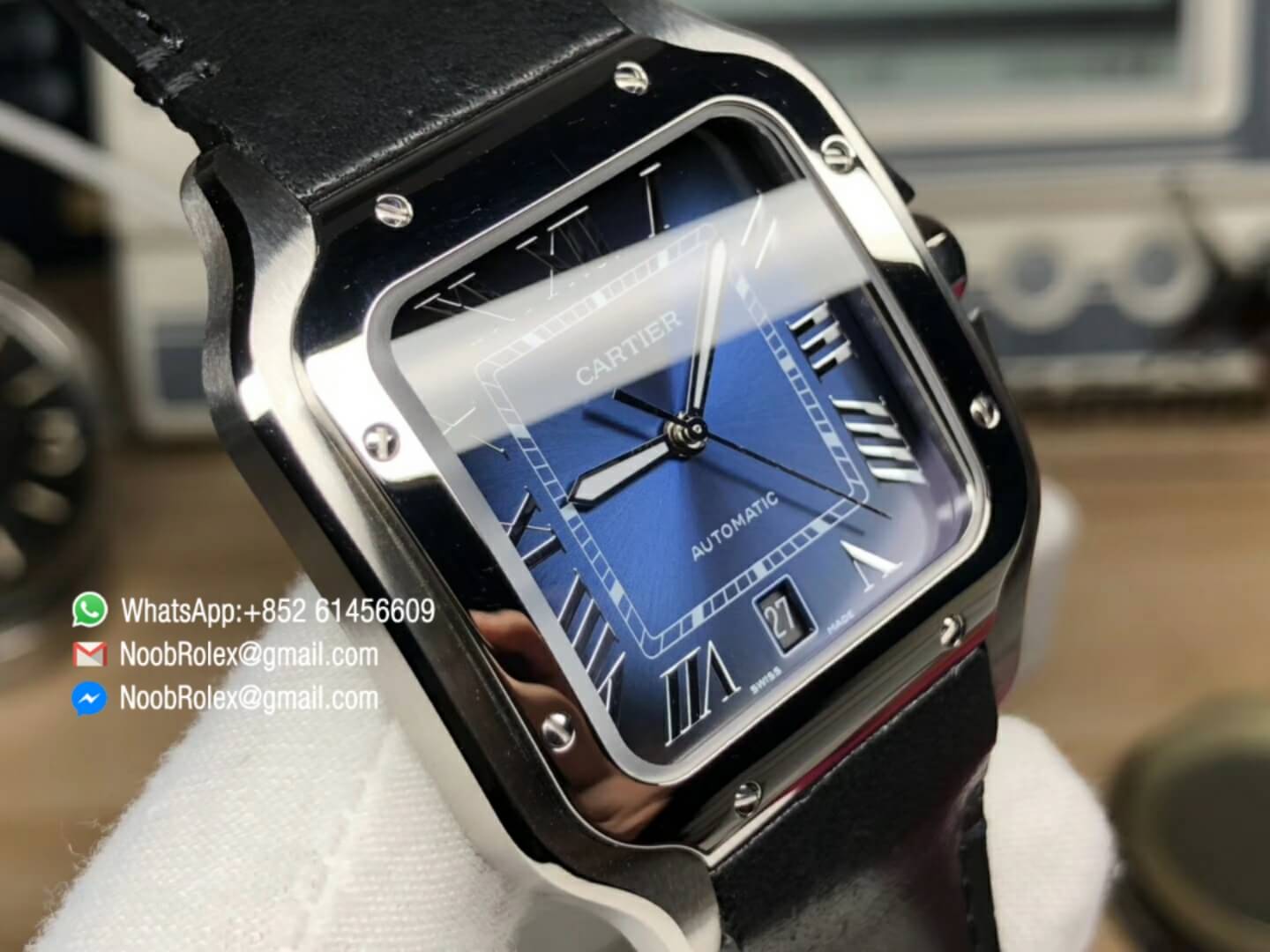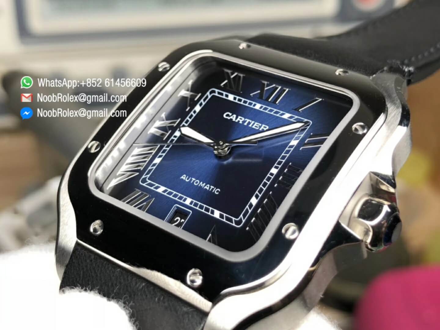Order Now Cartier Santos 40mm Steel Case Blue Dial on Black Strap with MIYOTA 9015 BV Factory 2018 1:1 Best Edition