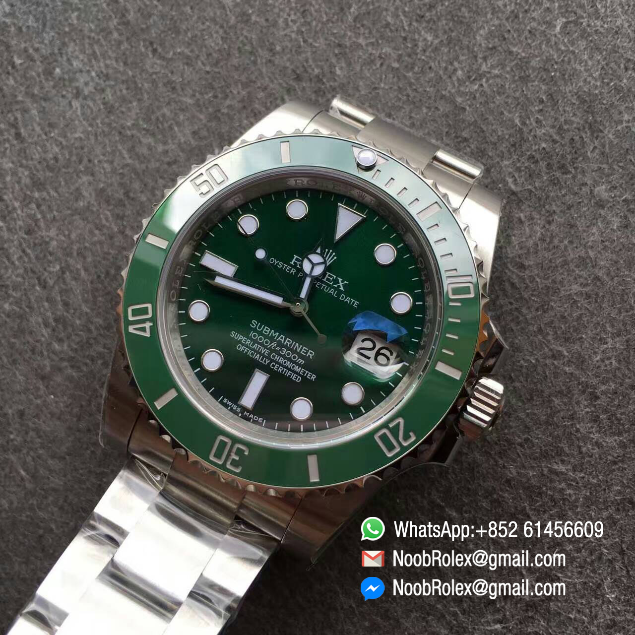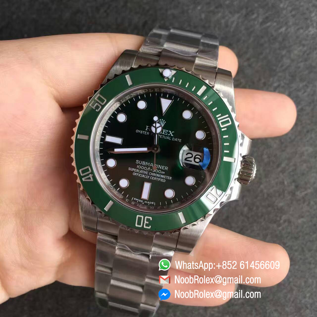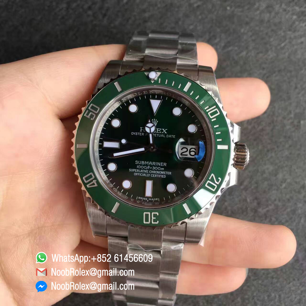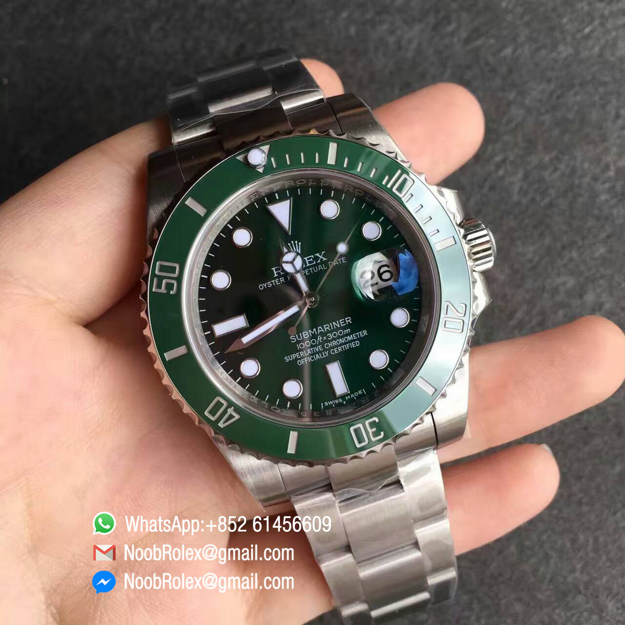 –Dial Superlumed dial and hands in correct blue color, Updated green color very close to genuine, reprinted with long ft same as the latest genuine rolex SUB version.