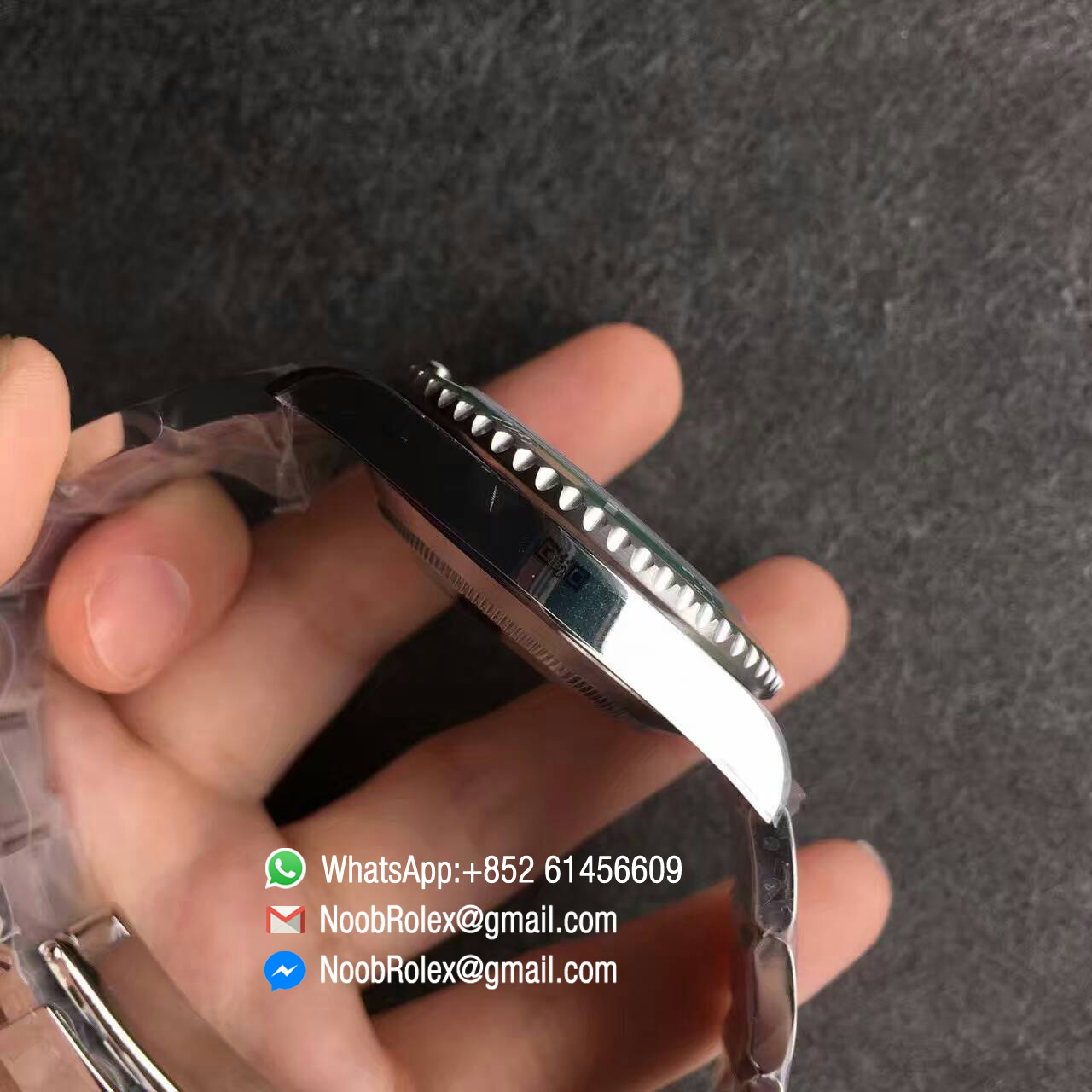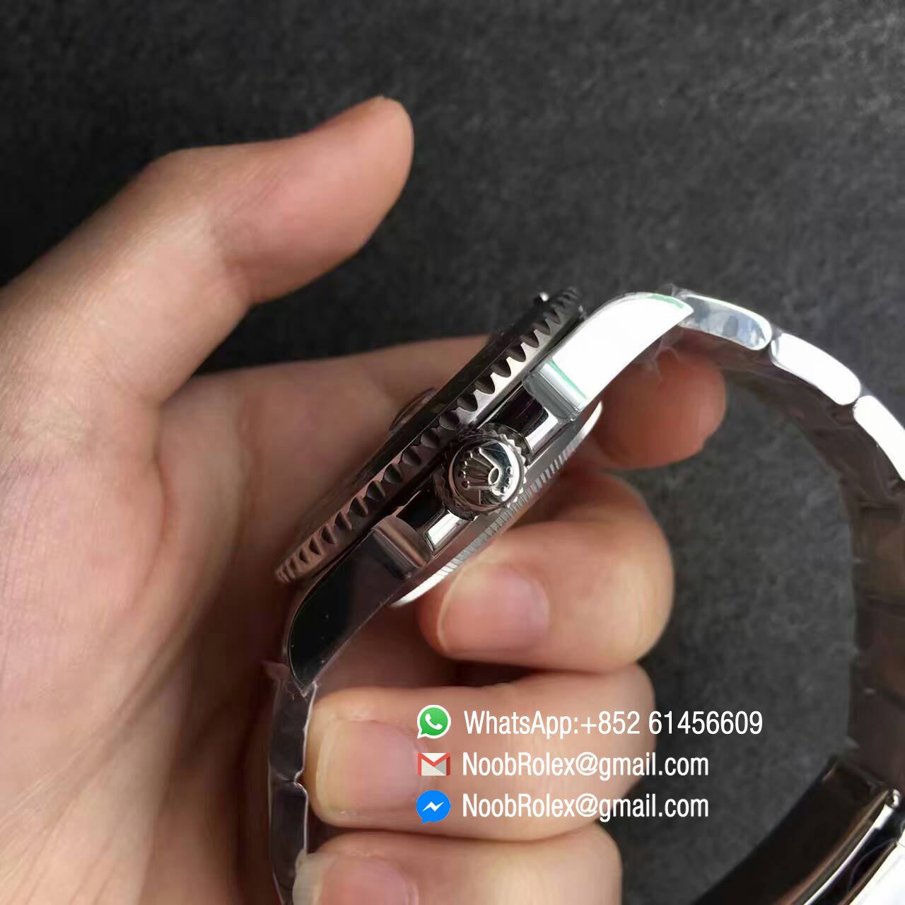 –Clasp New style flip-lock clasp with polished Rollie crown logo (The Best Clasp). Polished inner clasp and black ceramic spring balls same as the latest genuine rolex SUB version.