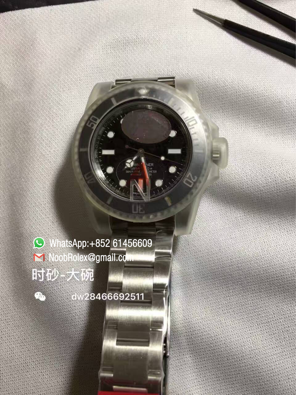 09)Clasp: New style flip-lock clasp with polished Rollie crown logo (The Best Clasp). Polished inner clasp and black ceramic spring balls same as the latest genuine rolex SUB version.