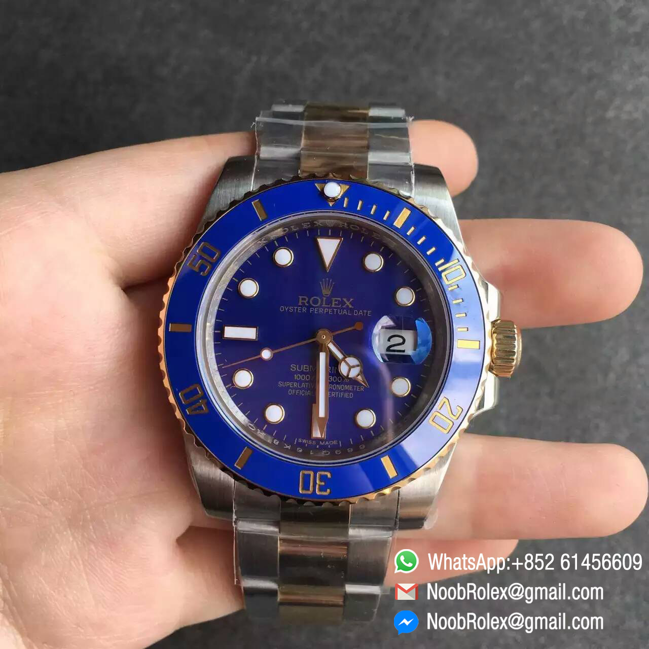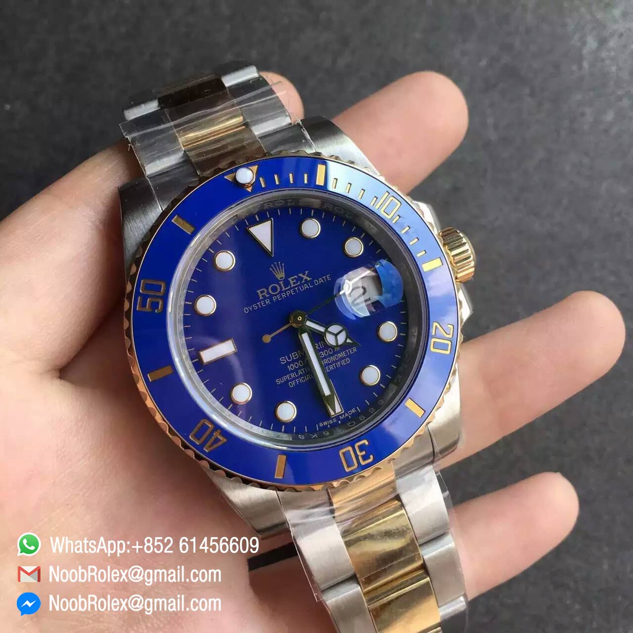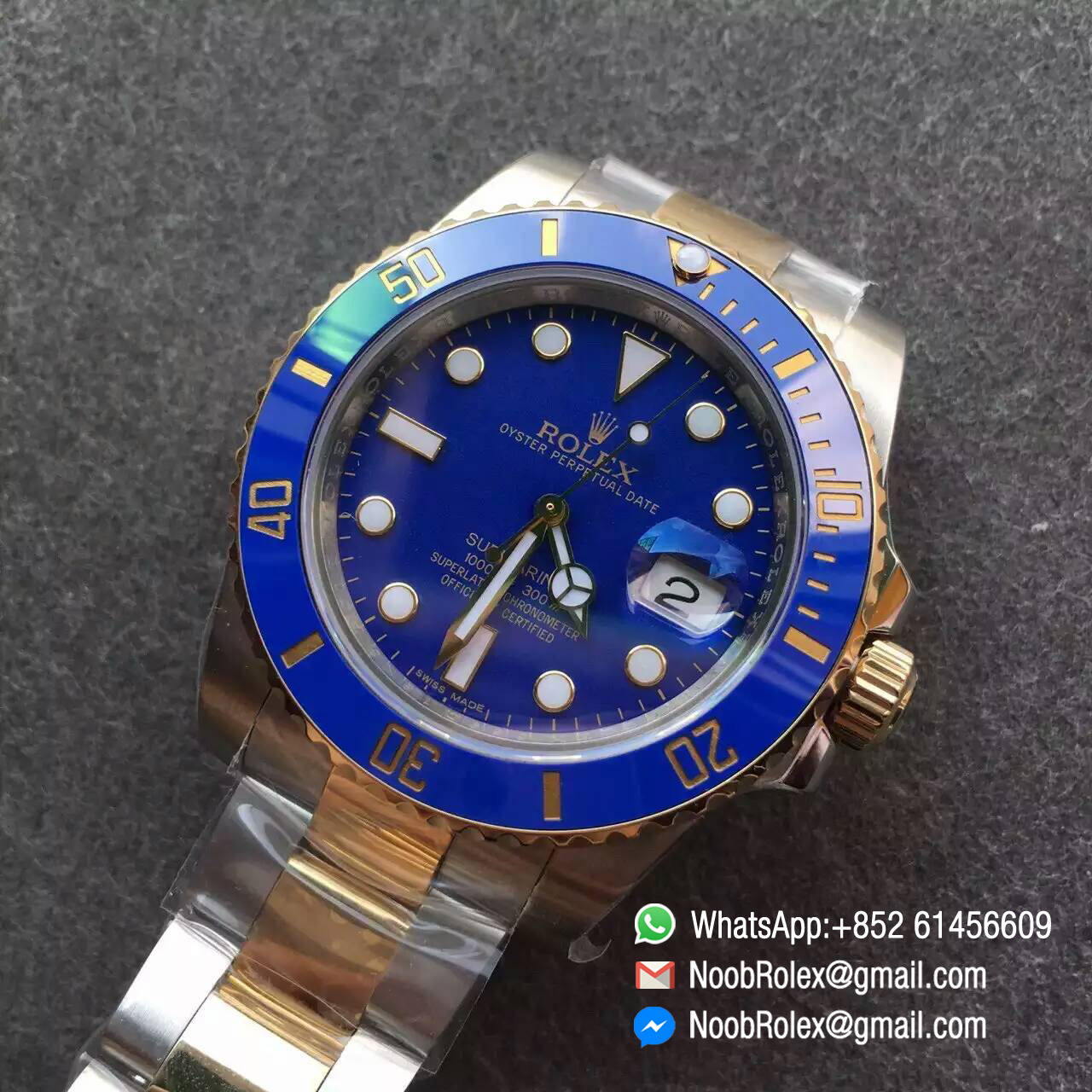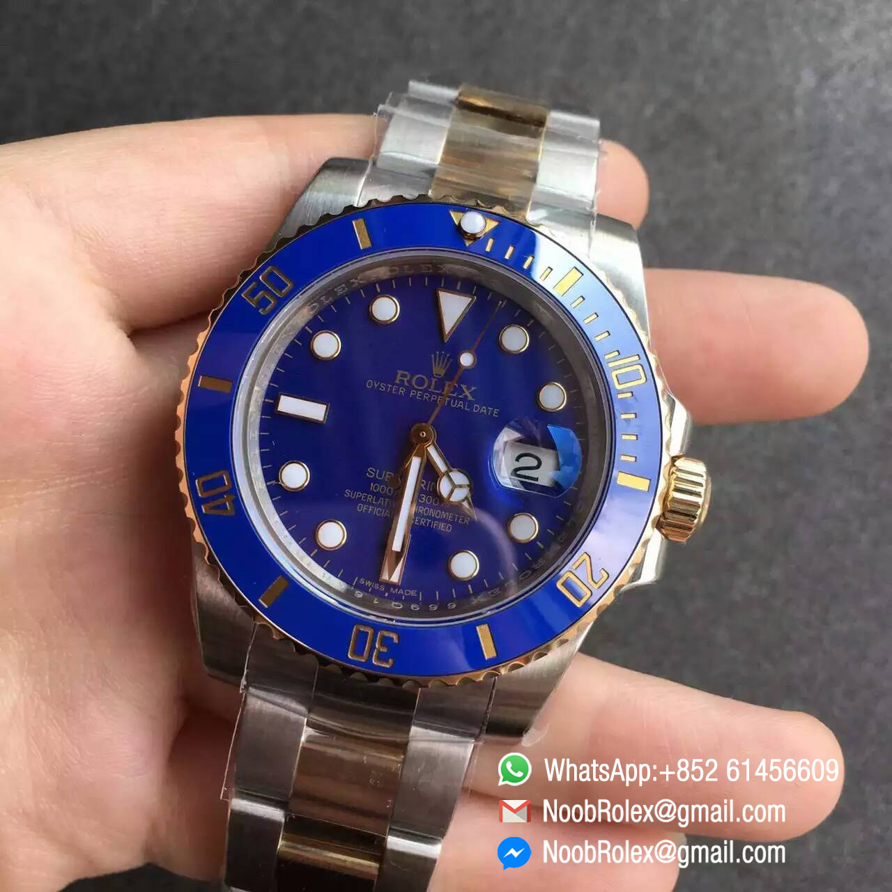 Order Now Submariner Watch 116613LB Noob 1:1 Best Edition, with Yellow Gold Wrapped Blue Dial, on Stainless Steel Yellow Gold Bracelet, Asain 2836 Movement.