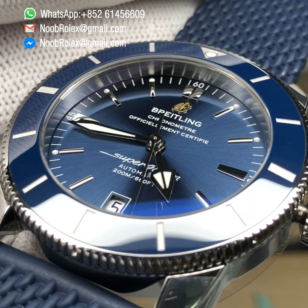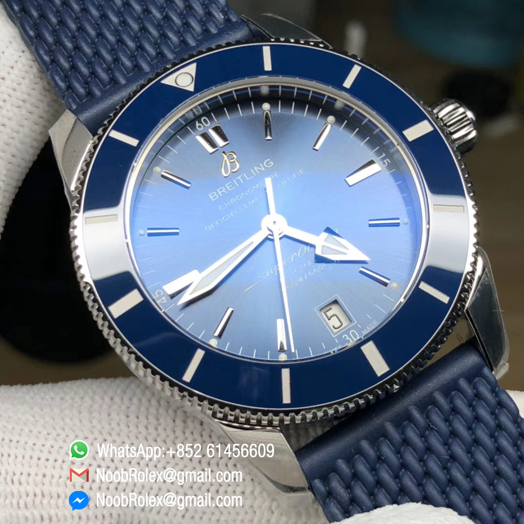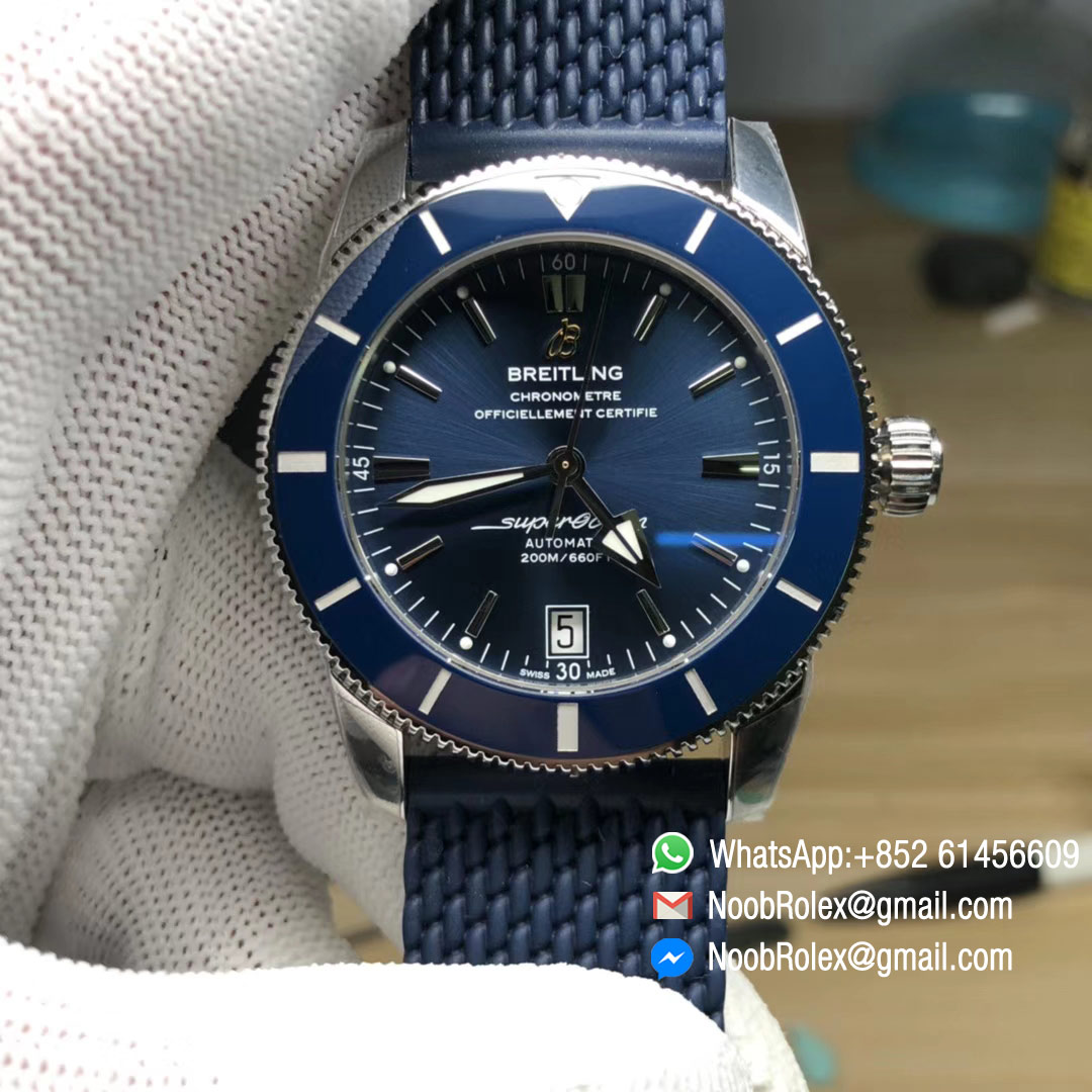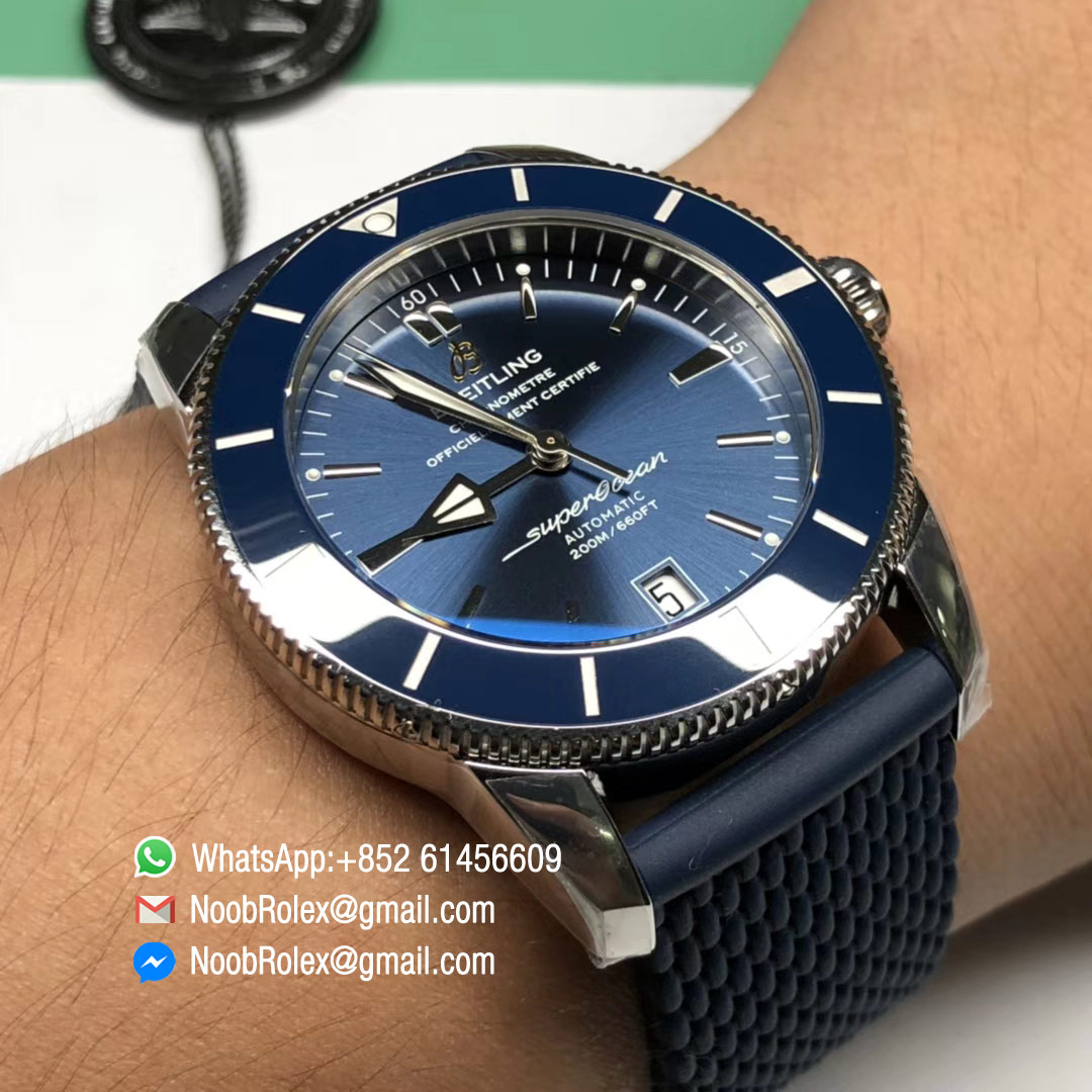 Order Now SuperOcean Heritage II 46mm Steel Case Blue Dial Blue Ceramic Bezel on Blue Rubber Strap A2824.