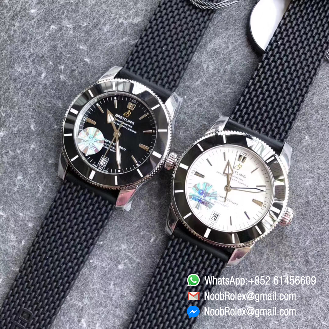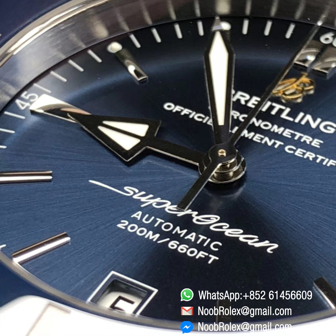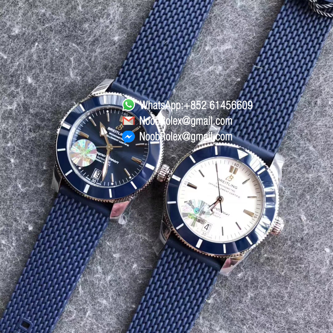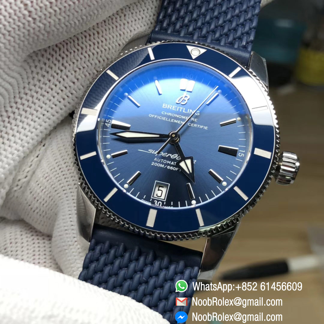 Order Now SuperOcean Heritage II 46mm Steel Case Blue Dial Blue Ceramic Bezel on Blue Rubber Strap A2824.