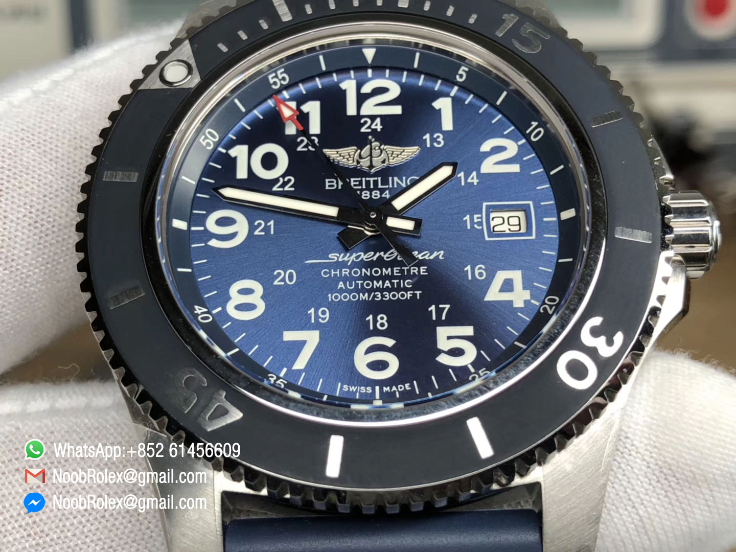 Order Now SuperOcean II 44mm Blue Dial on Blue Rubber Strap A2824 Noob Factory 1:1 Best Edition .
